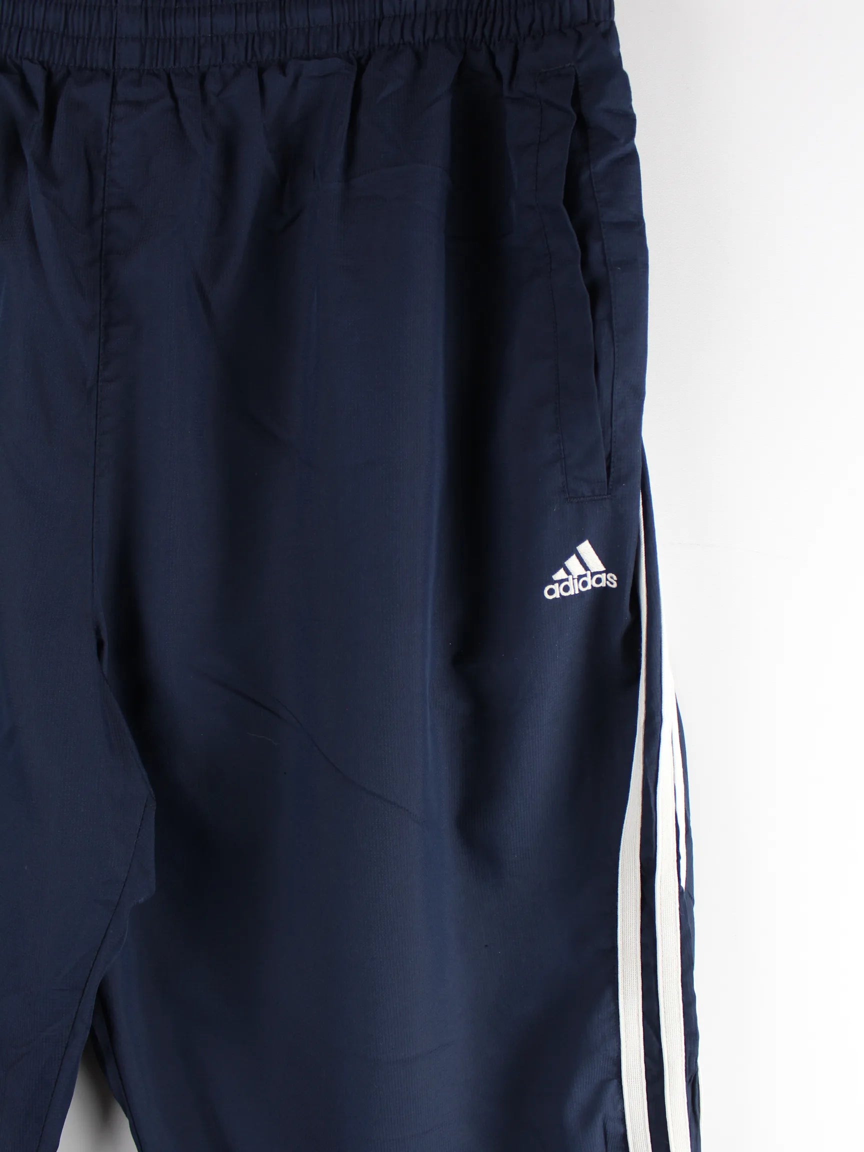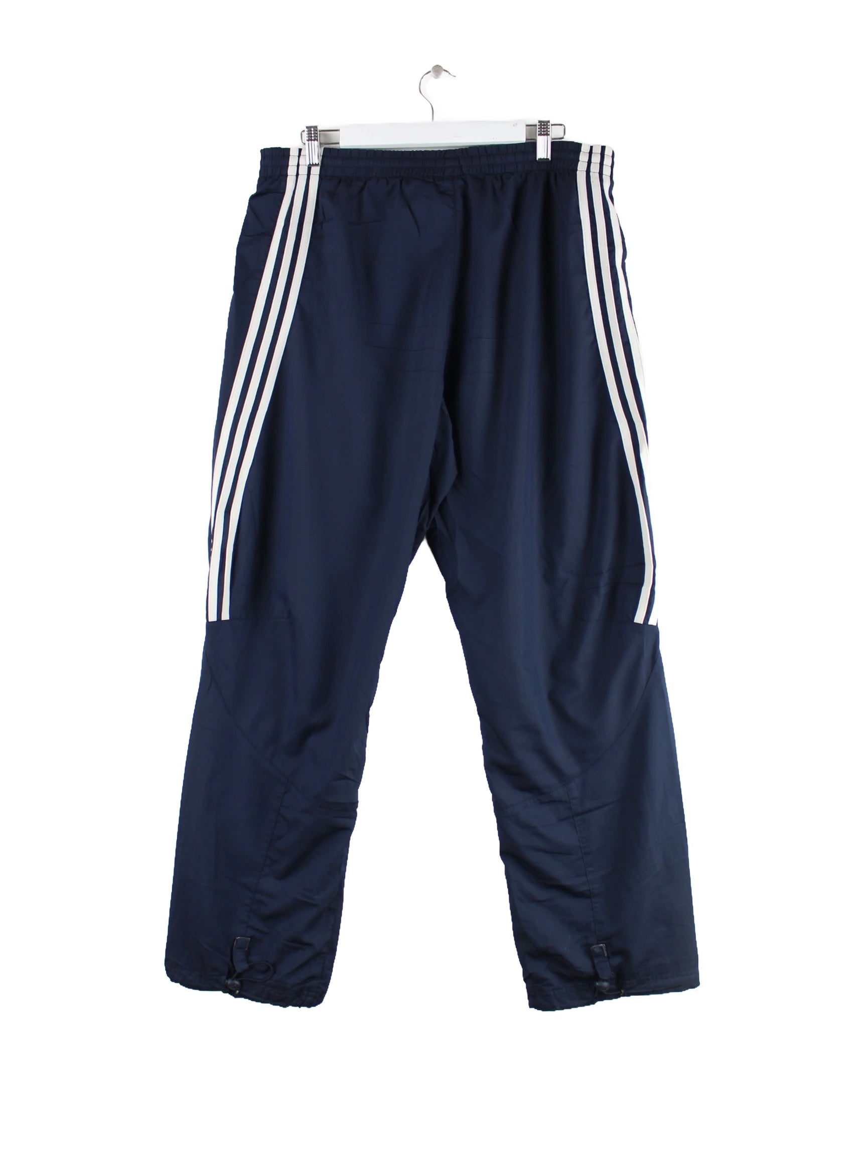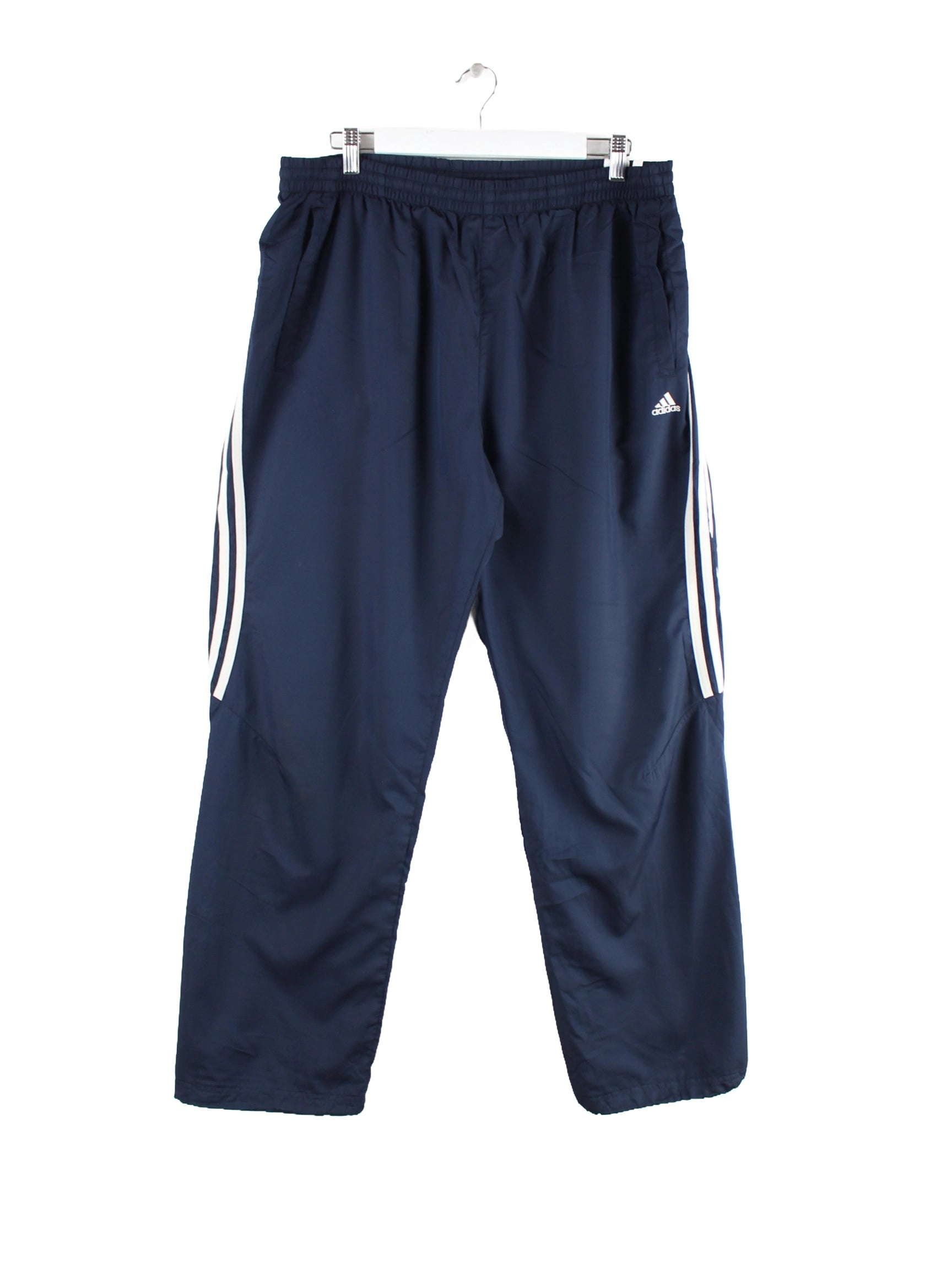 Blaue Track Pants der Marke Adidas in Größe L. Sie sind aus Synthetik und in gutem Zustand bei uns zu bekommen.
