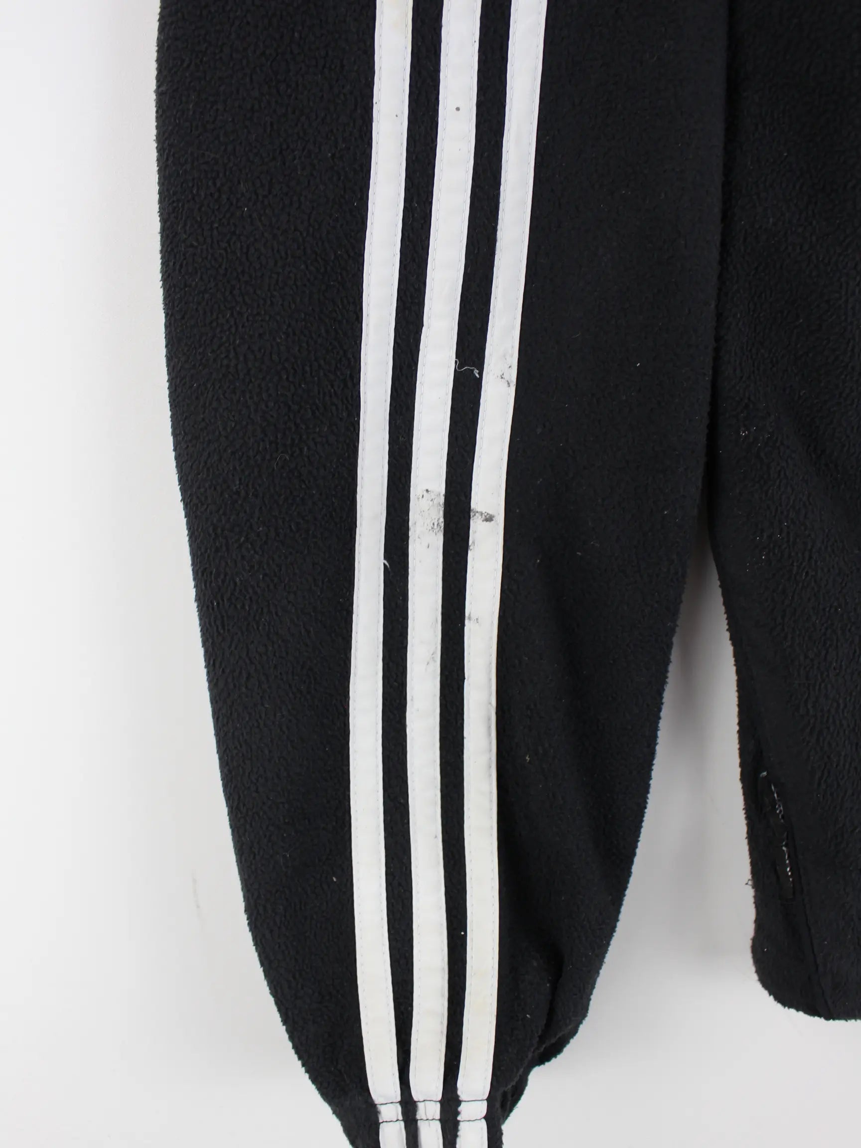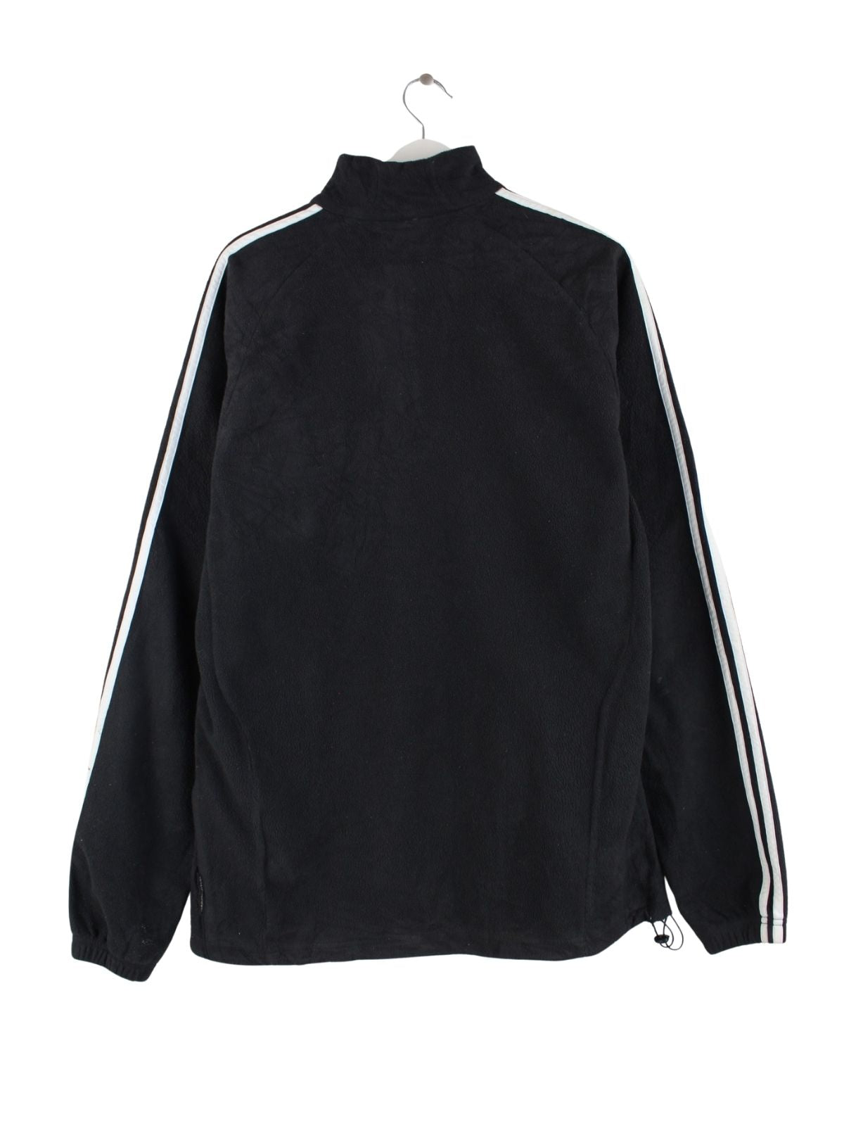 Leichte Jacke des Labels Adidas mit halbem Reißverschluß in Größe XL. Sie ist aus kuscheligem Fleece gefertigt und in Schwarz vorrätig.
