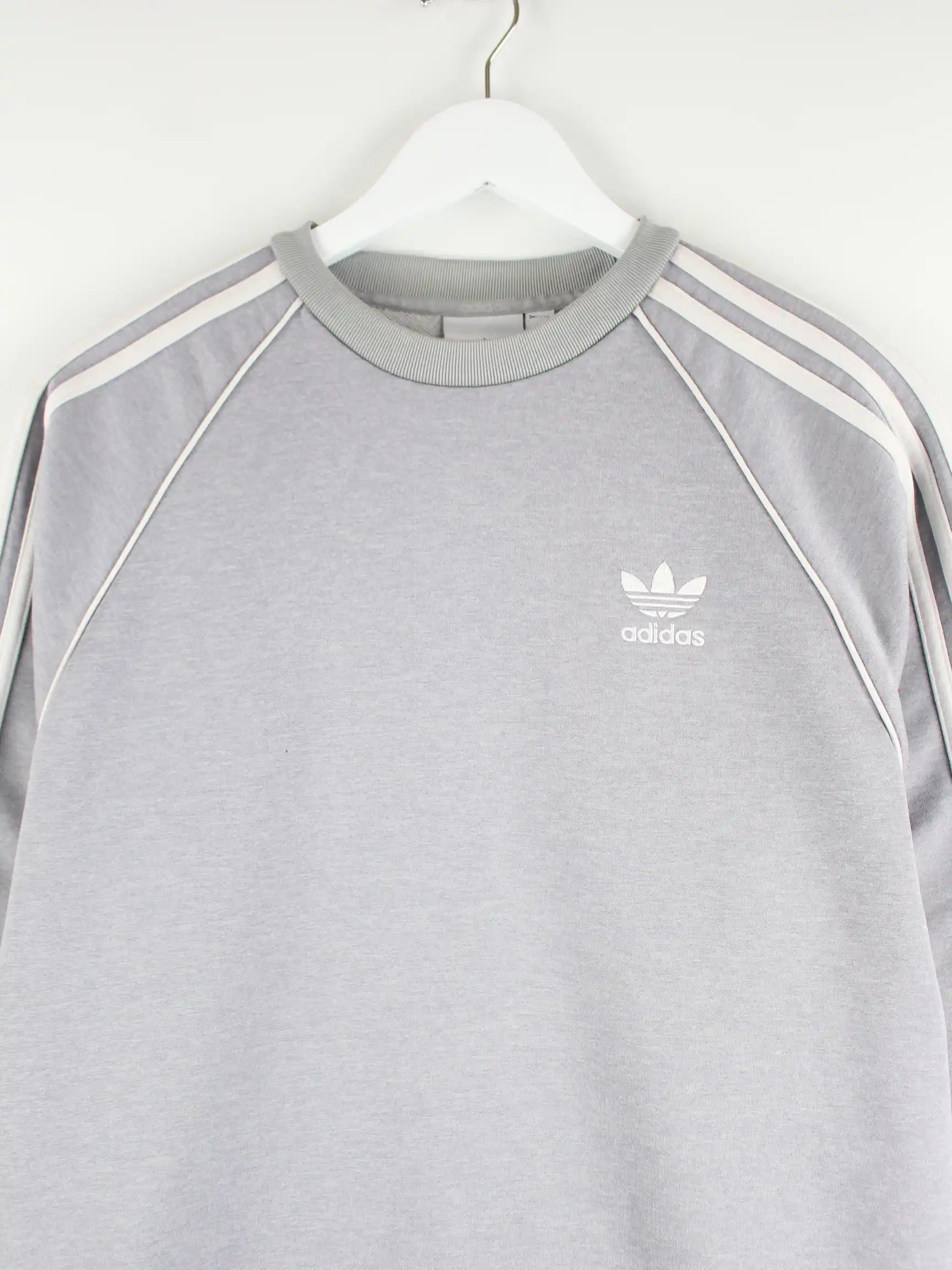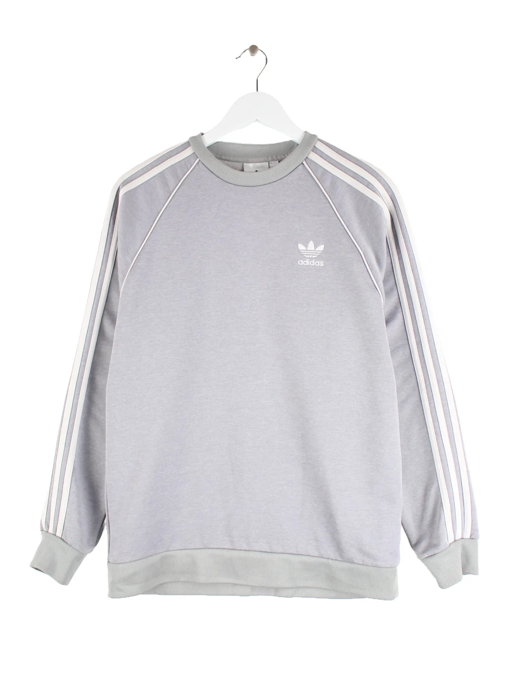 Grauer Sweater des Labels Adidas in Größe S. Er ist aus einer Baumwollmischung hergestellt und in sehr gutem Zustand zu haben.