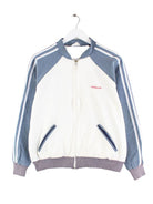 Weiße Trainingsjacke vom Brand Adidas aus den 80'ern in Größe S. Sie ist aus Synthetik produziert und in gutem Zustand auf Lager.