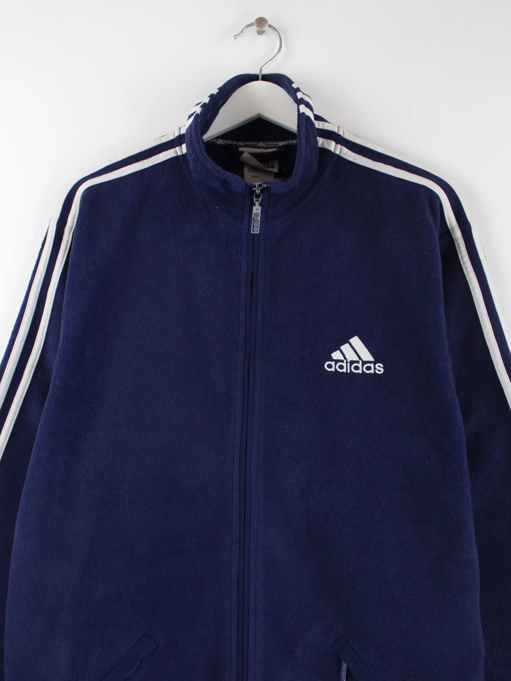 Blaue Leichte Jacke des Labels Adidas aus den 90'ern in Größe M. Sie ist aus gemütlichem Fleece und in gutem Zustand im Bestand.