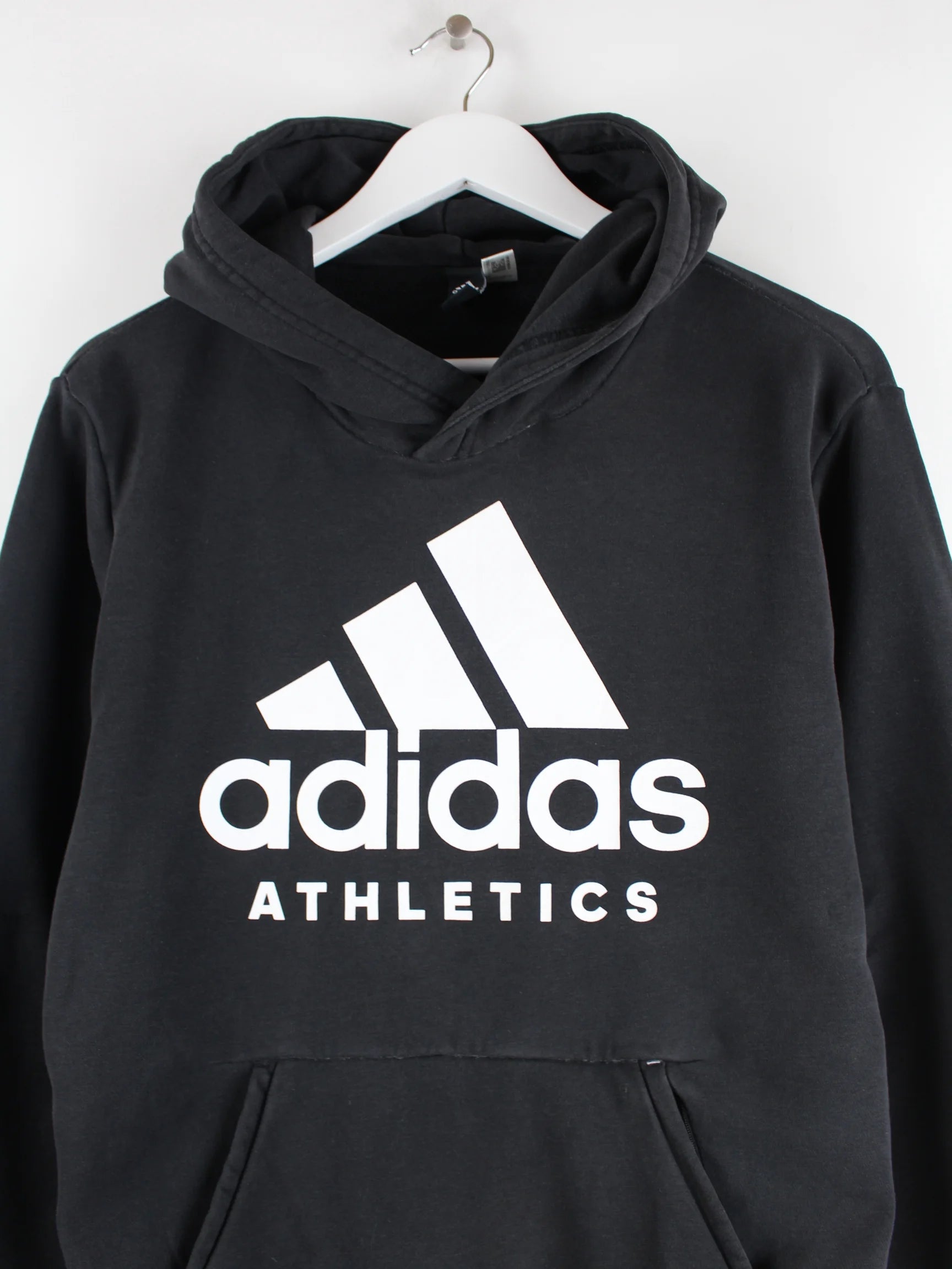 Schwarzer Hoodie aus dem Hause Adidas in Größe L. Er ist aus einer Baumwollmischung und in gutem Zustand im Angebot. Mit tollem Logo Print.