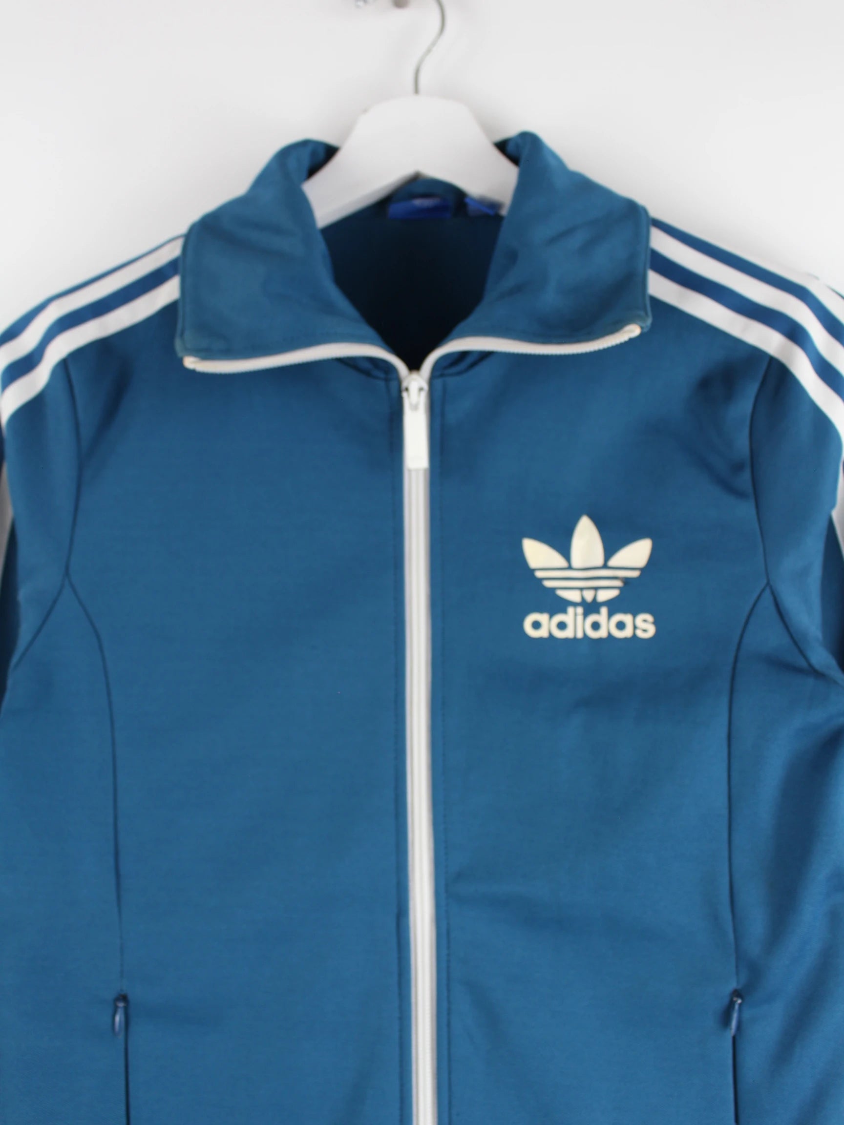 Trainingsjacke vom Brand Adidas in Größe XS. Sie ist aus Synthetik hergestellt und in Blau bei uns vorrätig.