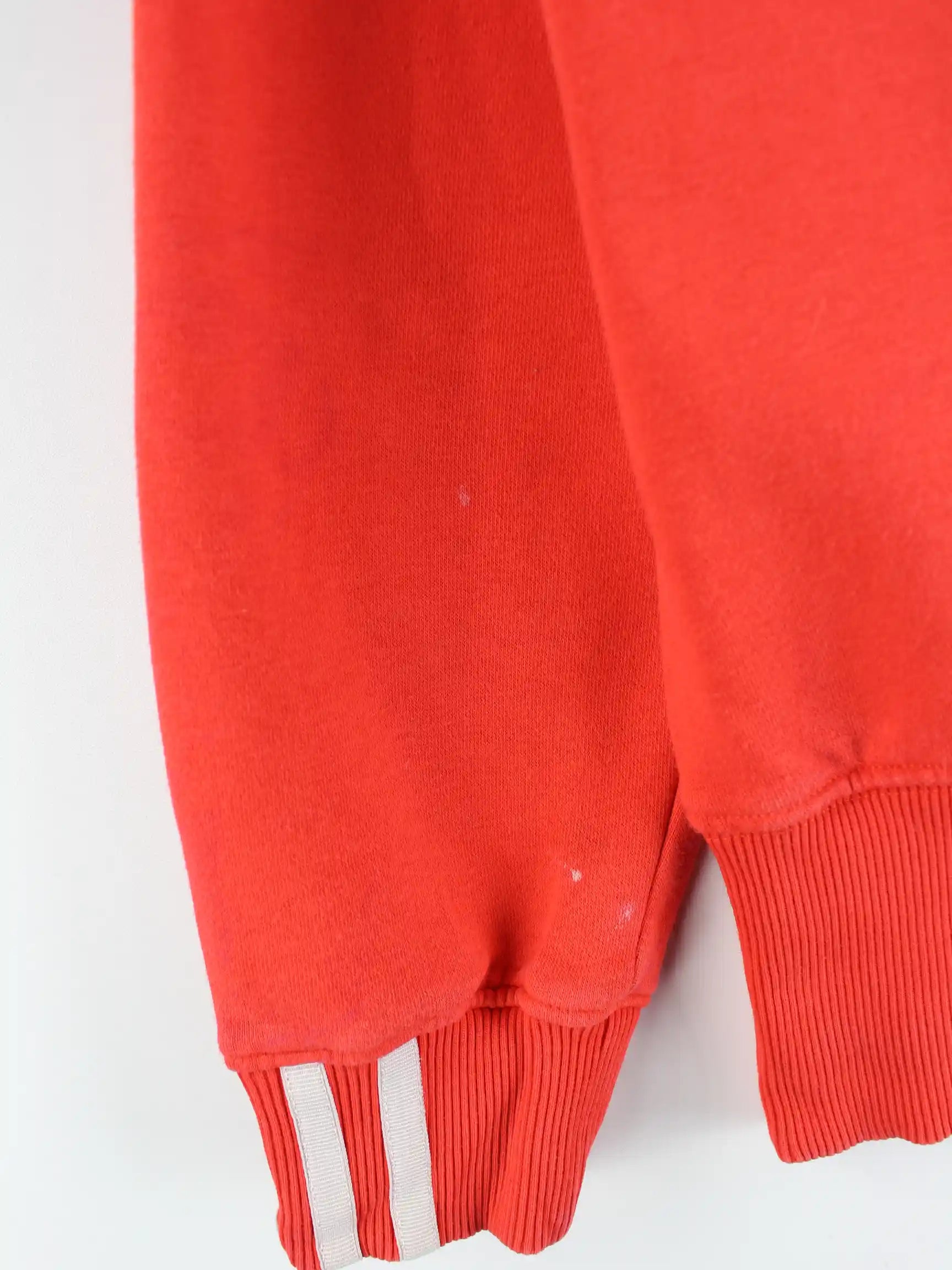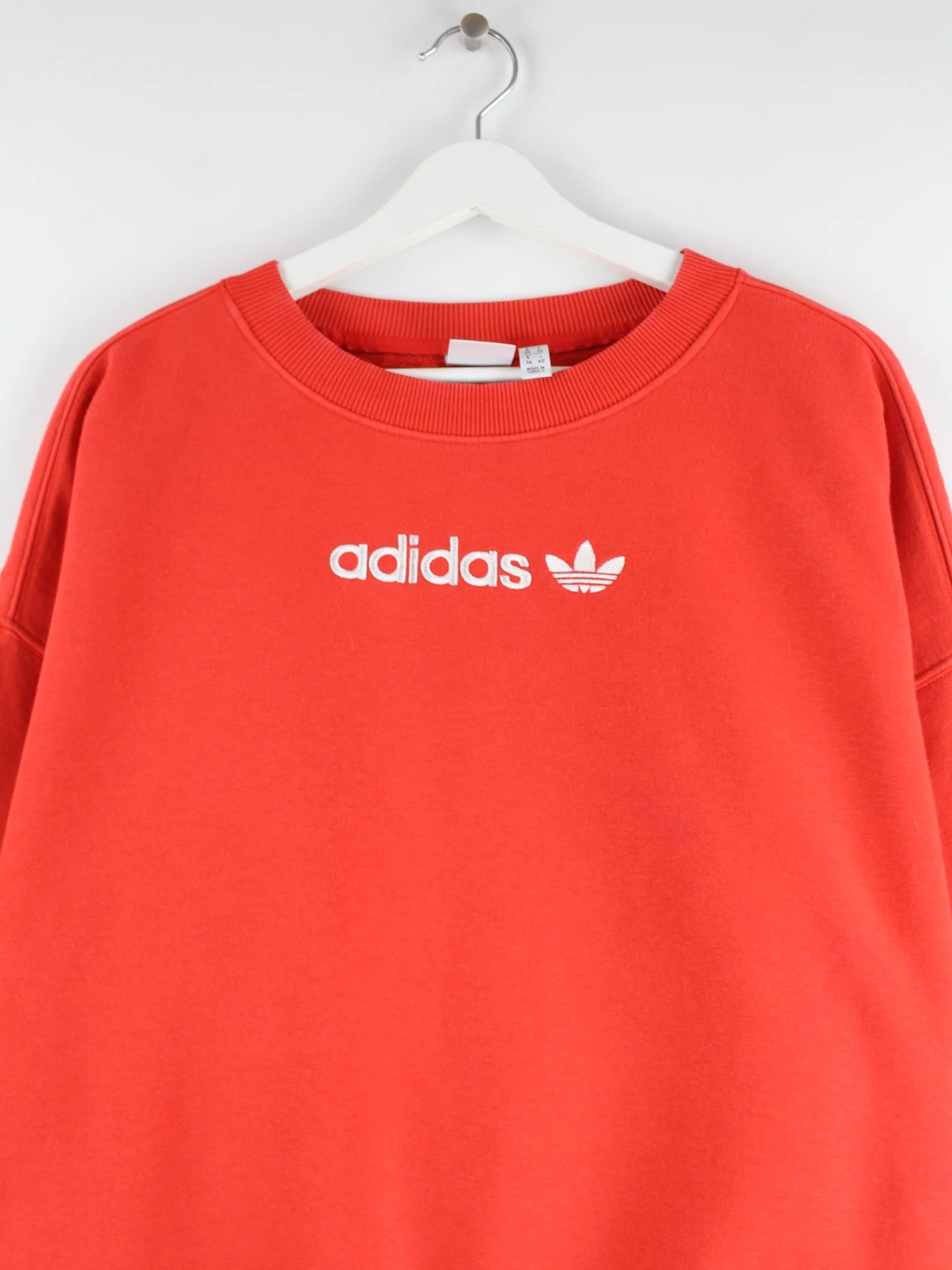 Orangefarbener Sweater aus dem Hause Adidas in Größe L. Er ist aus einer Baumwollmischung produziert. Den Zustand würden wir als 'In Ordnung' bezeichnen (vergl. Bilder).