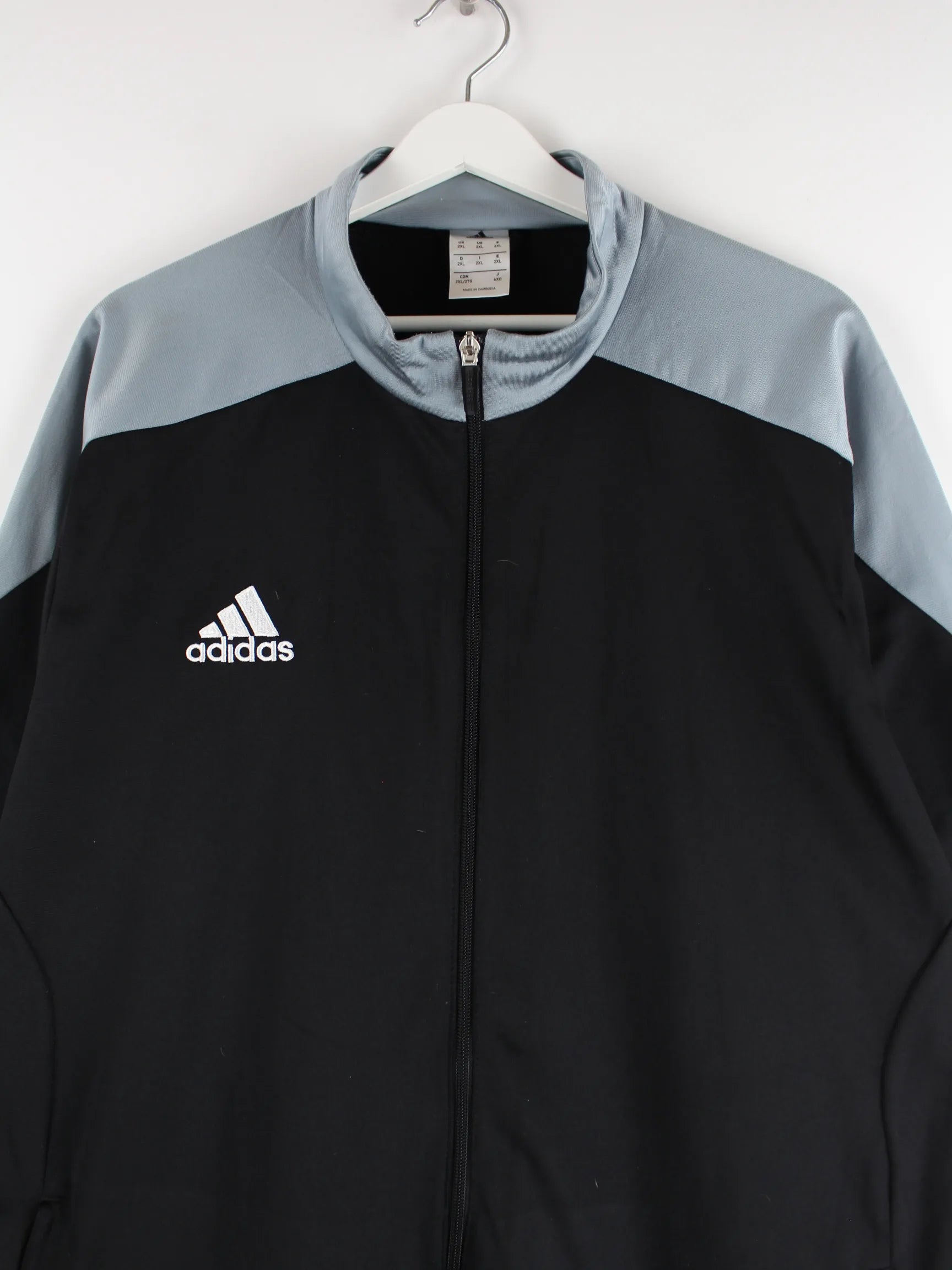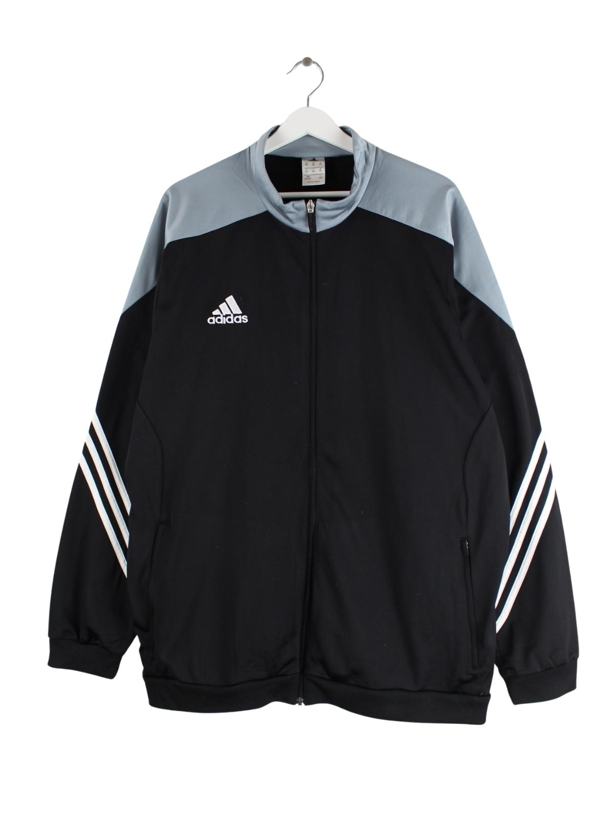 Schwarze Trainingsjacke der Brand Adidas in Größe XXL. Sie ist aus Synthetik produziert und in sehr gutem Zustand im Bestand.