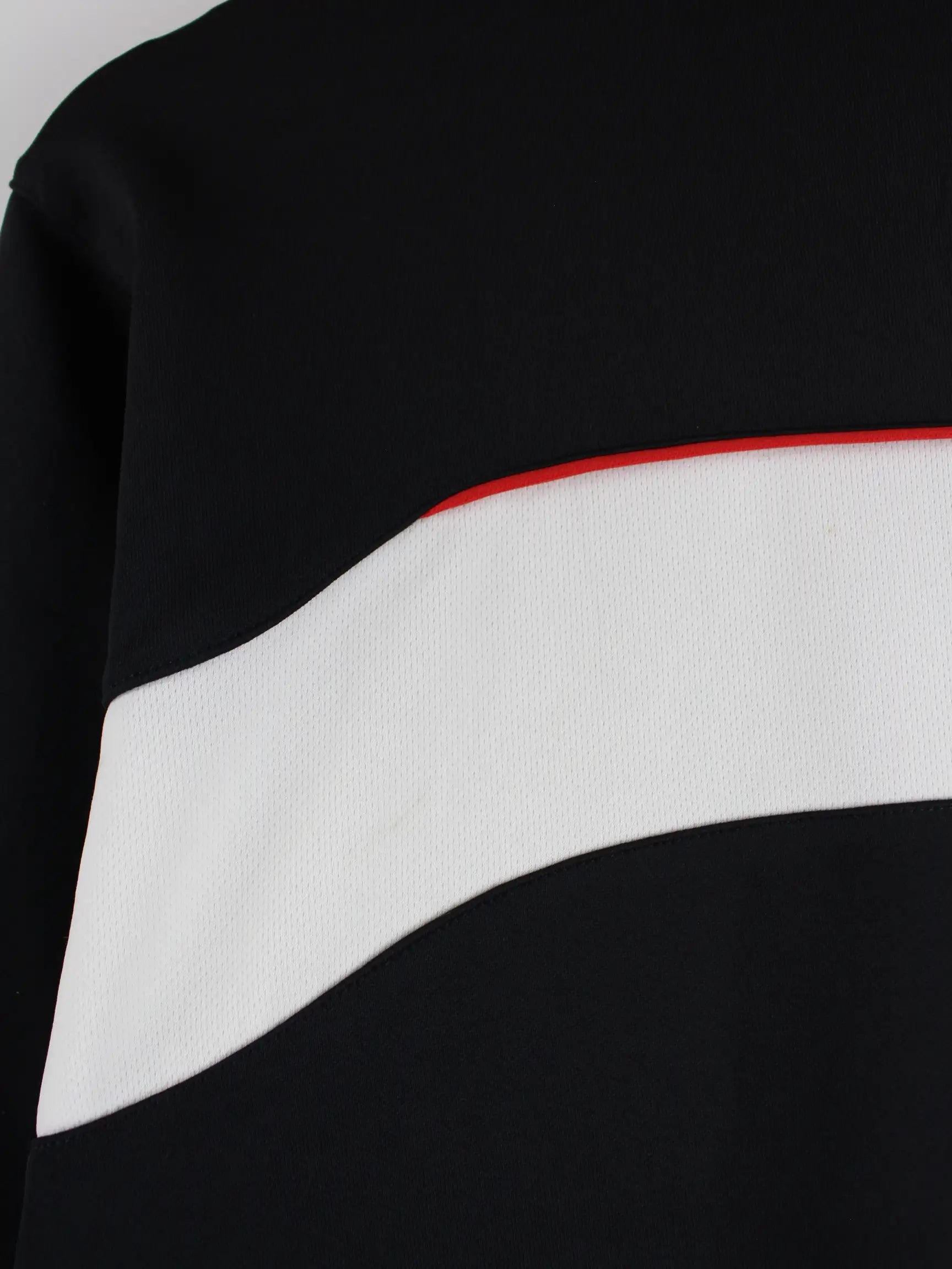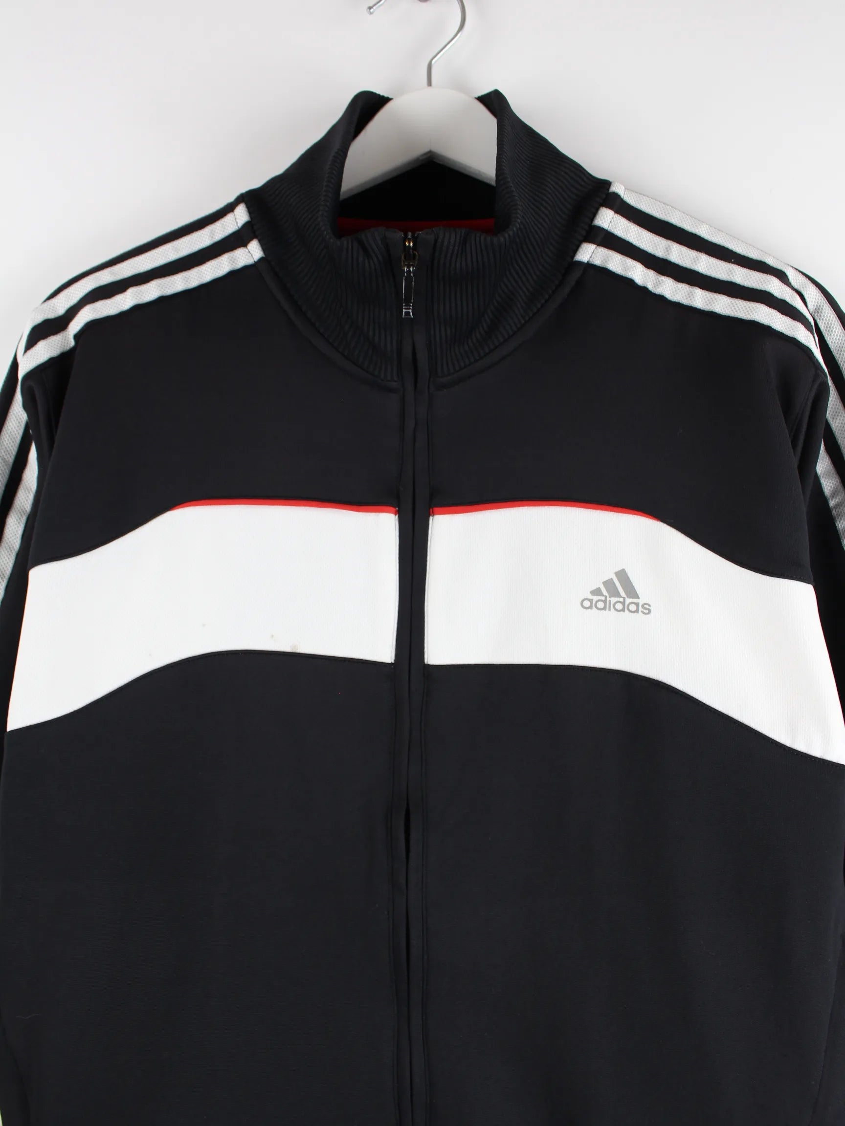 Schwarze Trainingsjacke von Adidas in Größe S. Sie ist aus Synthetik . Den Zustand würden wir als 'In Ordnung' bezeichnen (vergl. Bilder).