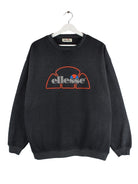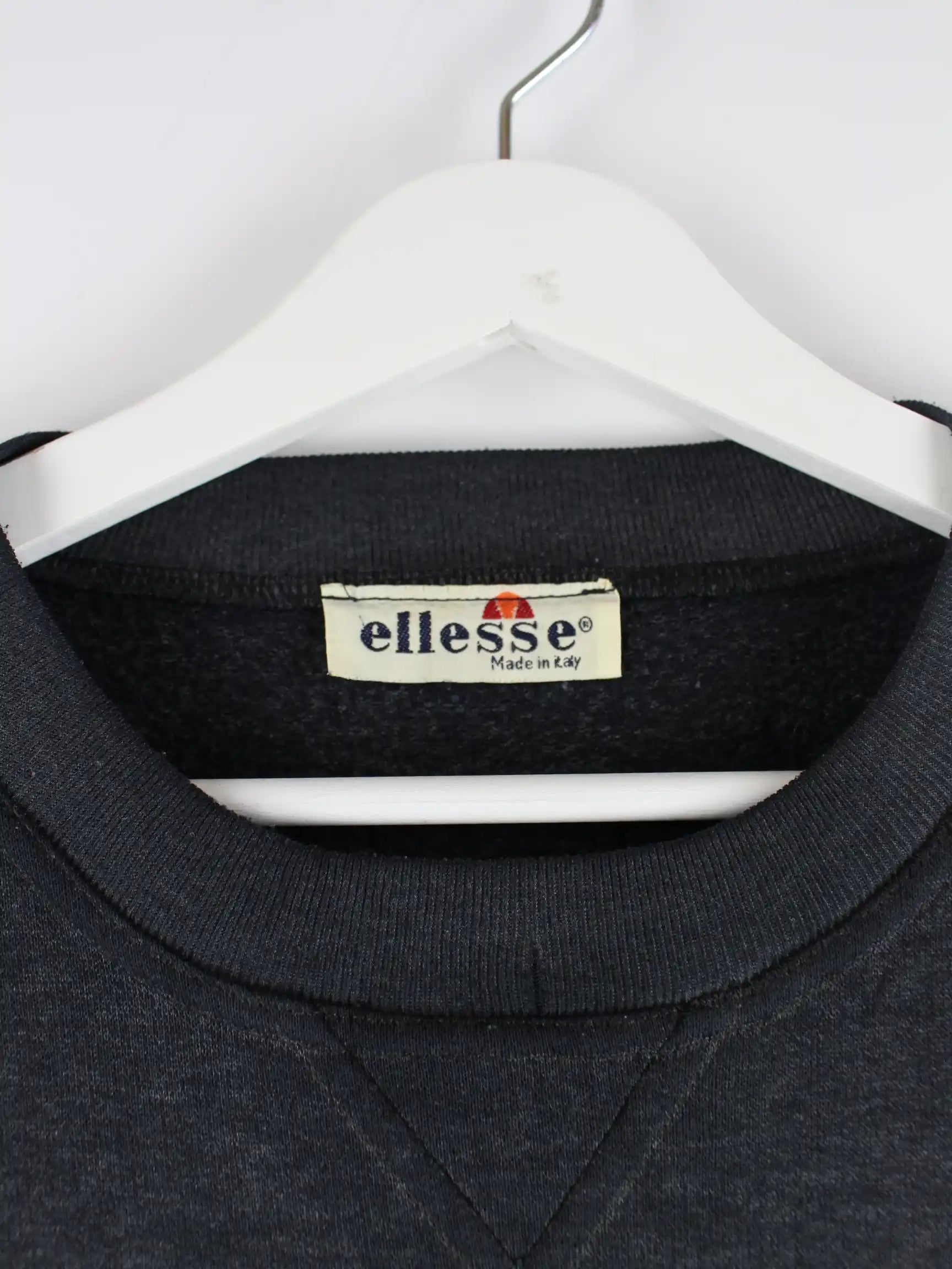Sweater von Ellesse in Größe M aus den 90'ern. Er ist aus einer Baumwollmischung und in Grau bei uns zu bekommen. Mit tollem Vintage Print.