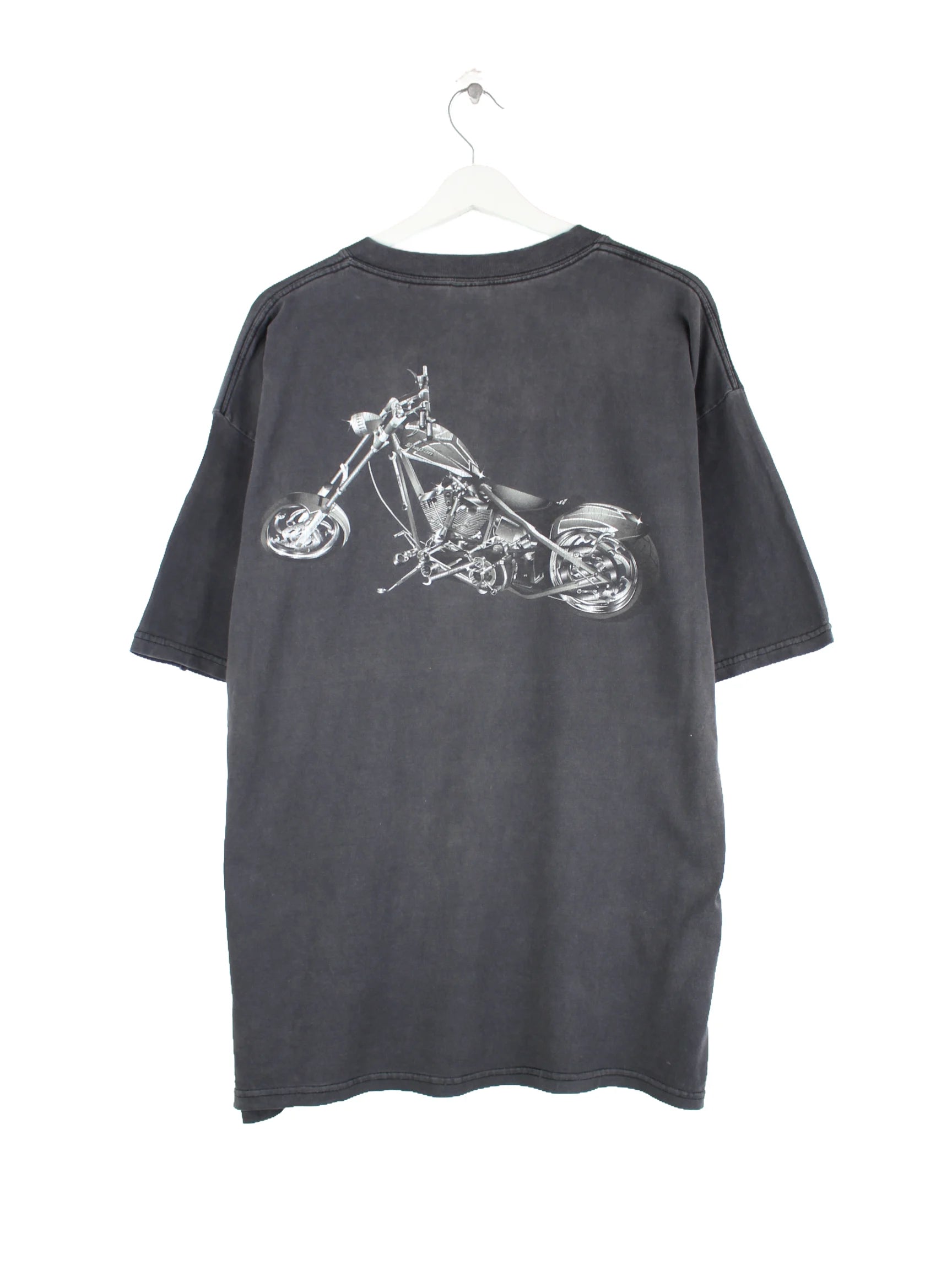 T-Shirt vom Label Gildan in Größe XL. Es ist aus Baumwolle gemacht und in Schwarz auf Lager. Mit tollem Chopper Print.