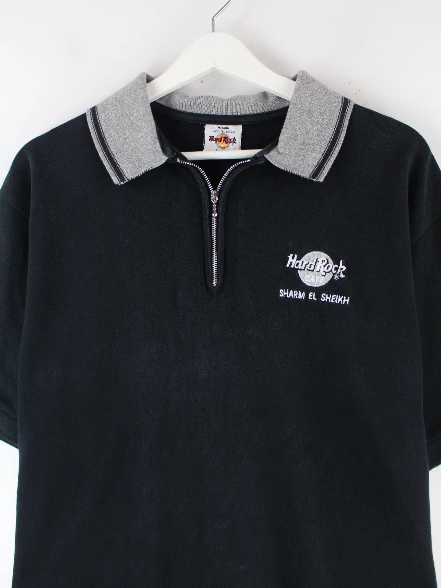 Hard Rock Cafe 90s Vintage Half Zip Polo Schwarz M