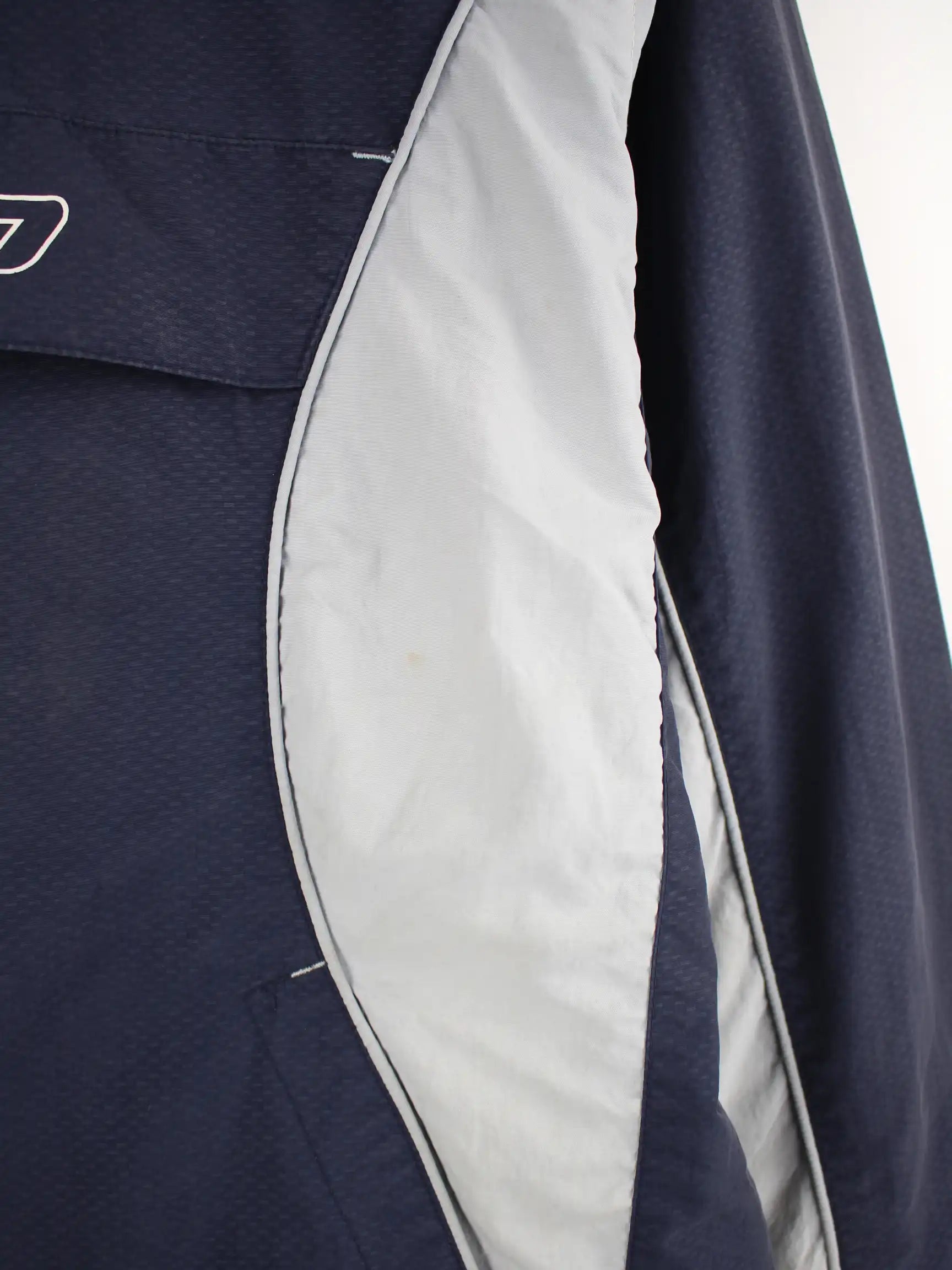 Windbreaker des Labels Lotto in Größe S. Er ist aus Synthetik gemacht und in Blau bei uns zu bekommen. Mit chiquem 00s Print.
