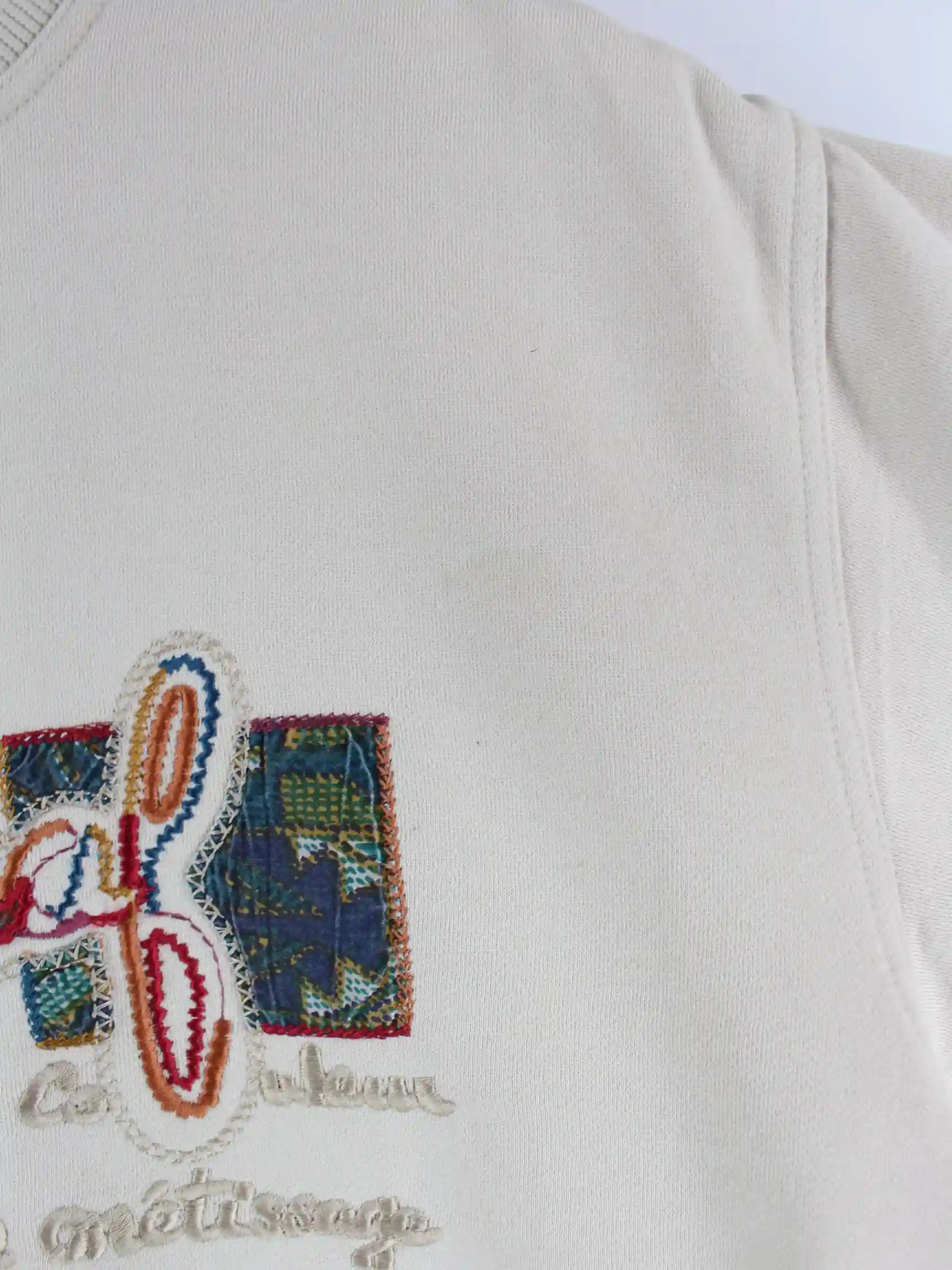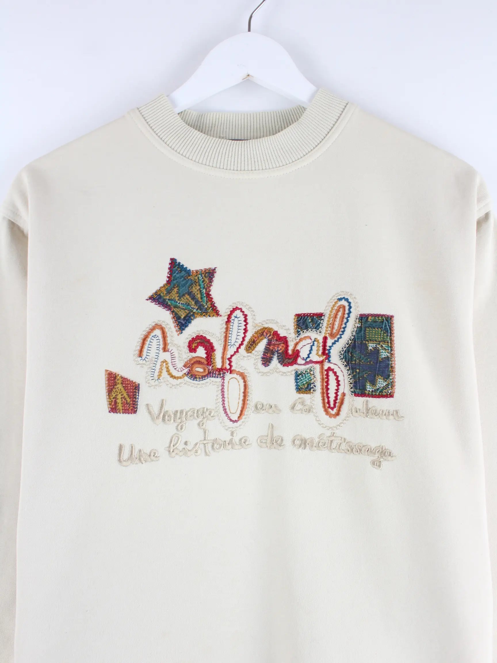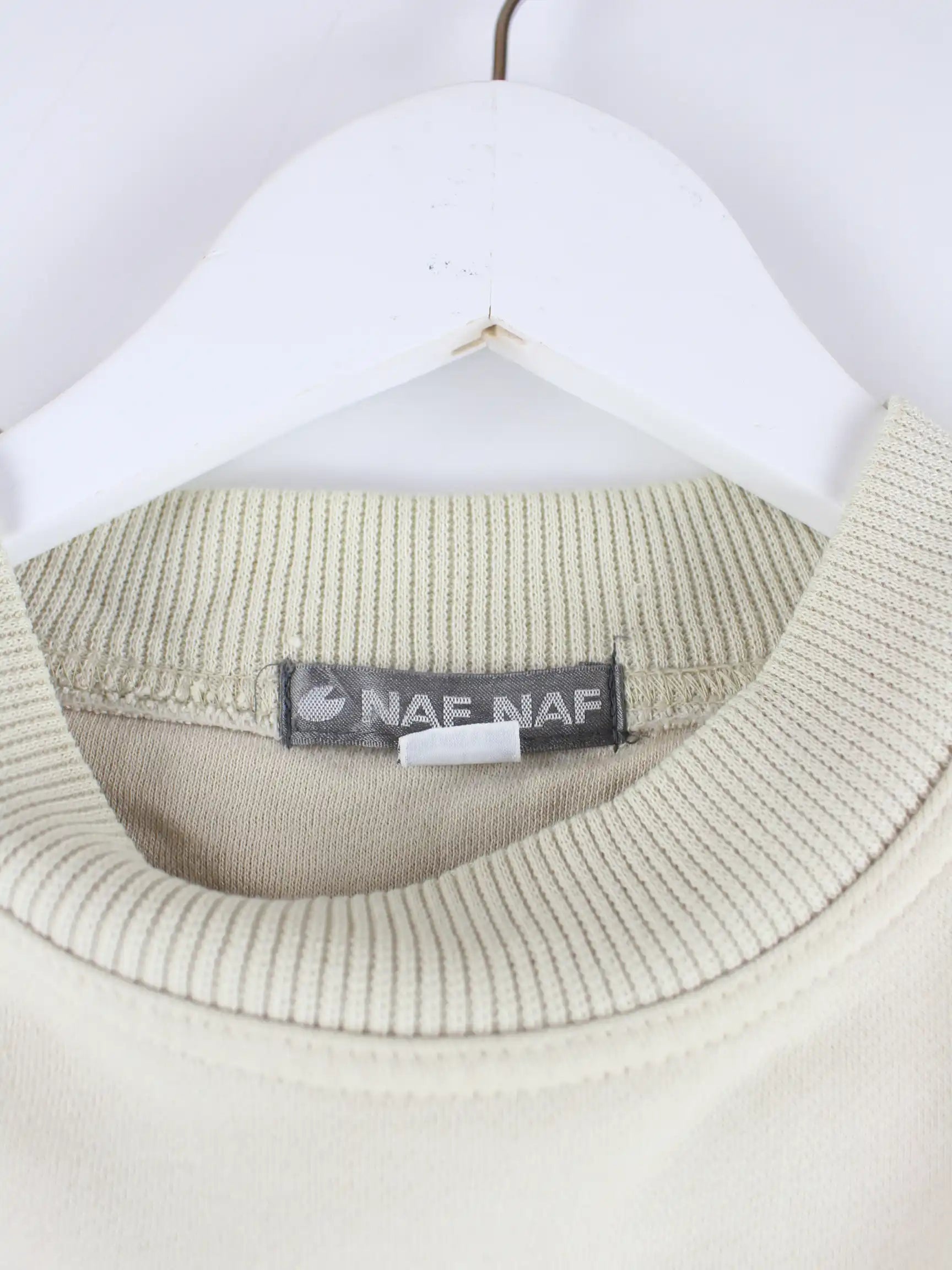 Beigefarbener Sweater vom Label Naf Naf aus den 90'ern in Größe S. Er ist aus einer Baumwollmischung angefertigt. Den Zustand würden wir als 'In Ordnung' bezeichnen (vergl. Bilder).