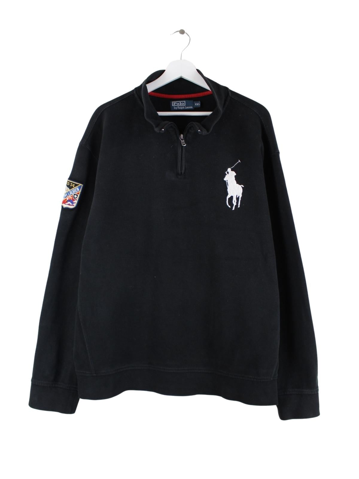 Ralph Lauren 90s Vintage Big Logo Half Zip Sweater Schwarz XXL