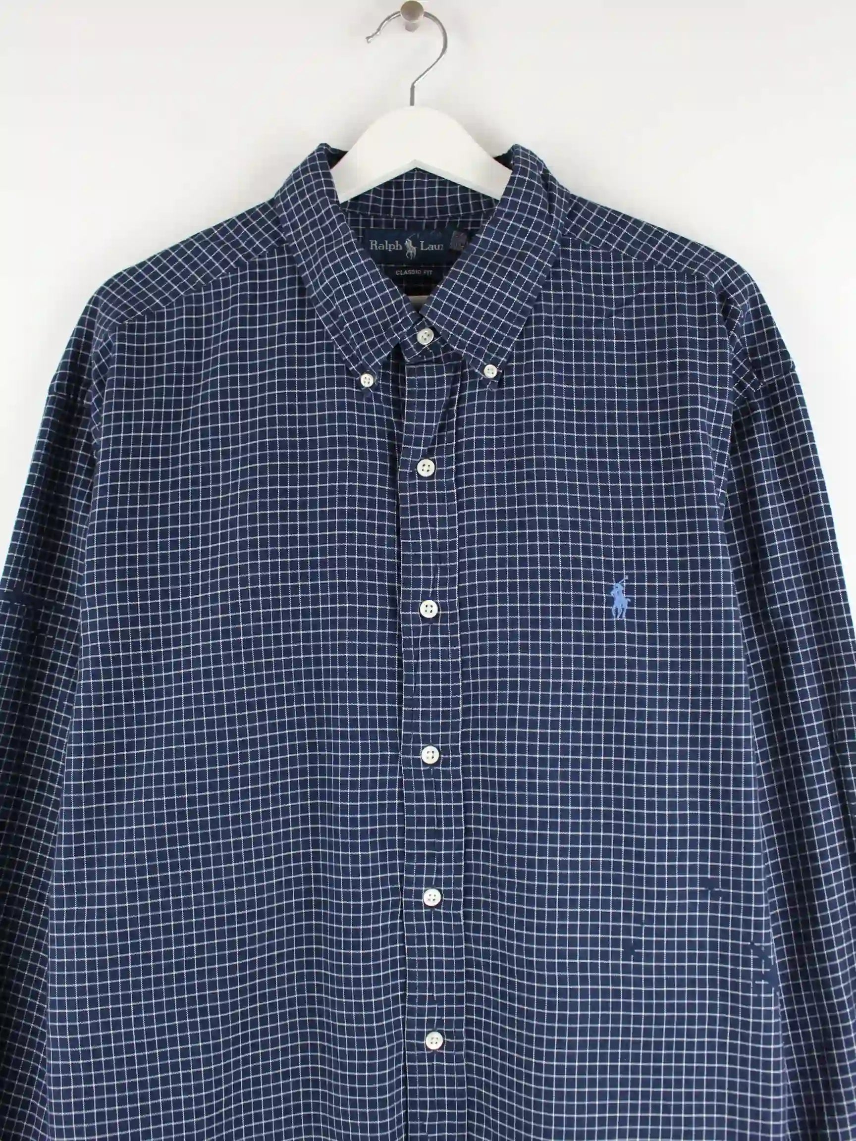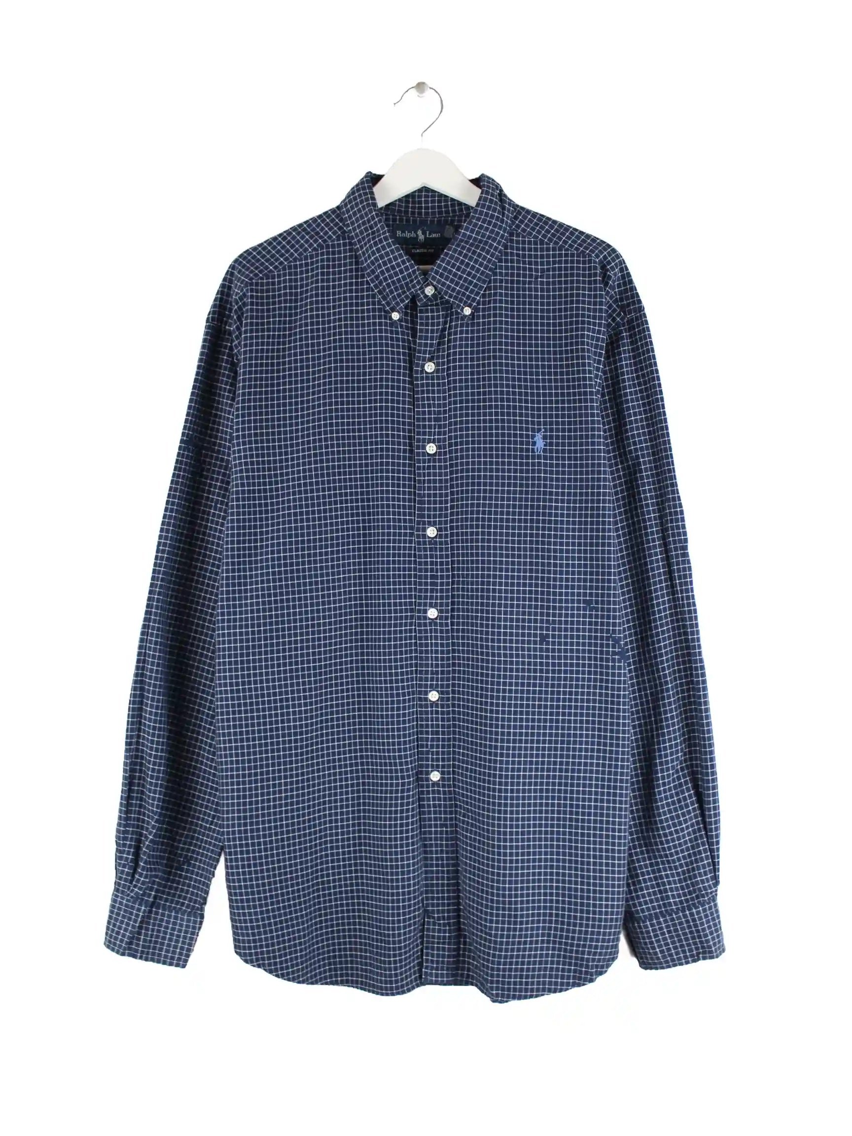 Blaues Hemd vom Label Ralph Lauren aus den 90'ern in Größe XXL. Es ist aus Baumwolle gemacht. Den Zustand würden wir als 'In Ordnung' bezeichnen (vergl. Bilder).