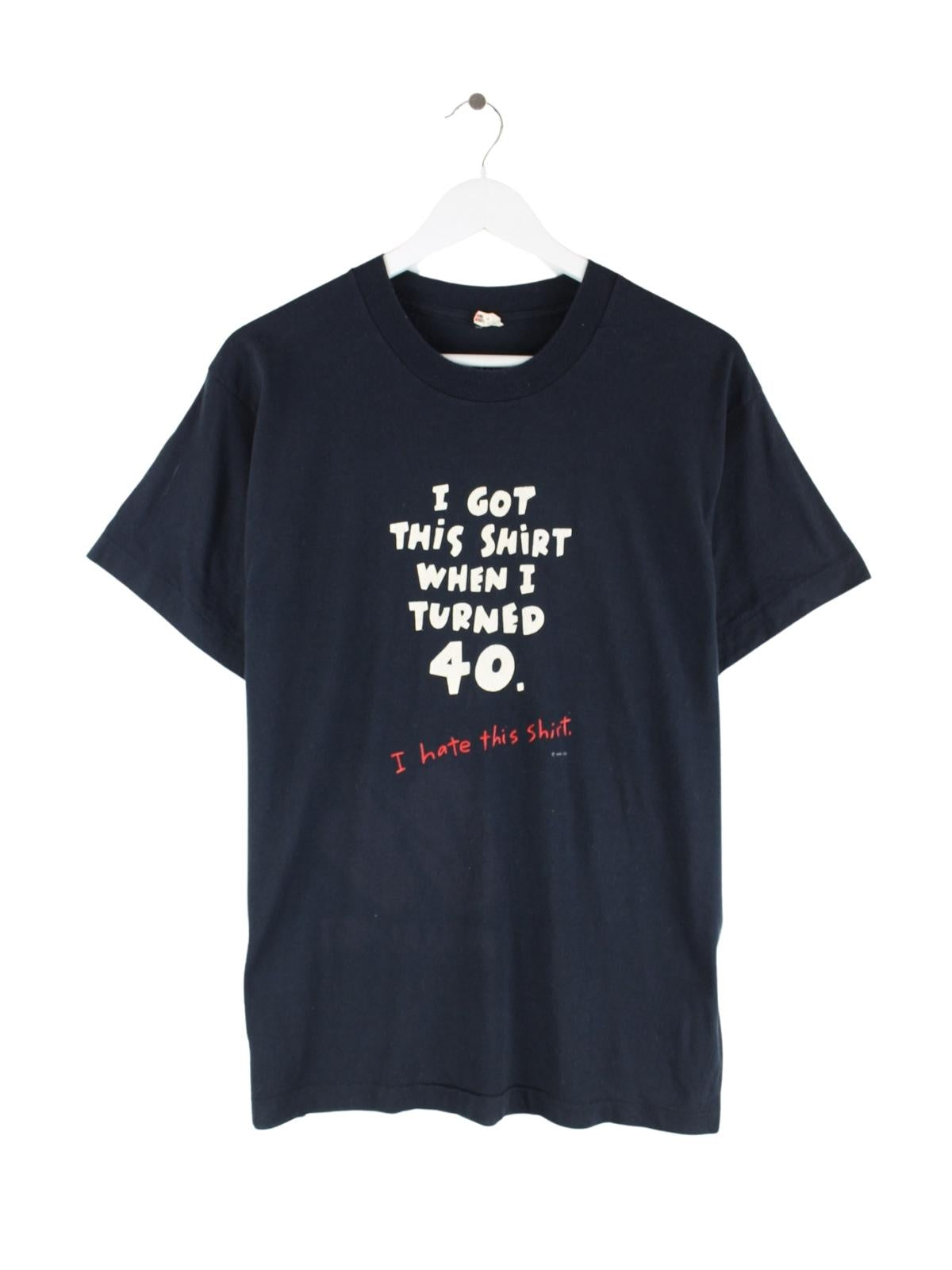 T-Shirt aus dem Hause Screen Stars in Größe XL aus den 80'ern. Es ist aus Baumwolle und in Schwarz bei uns vorrätig. Mit seltenem Funny Print.