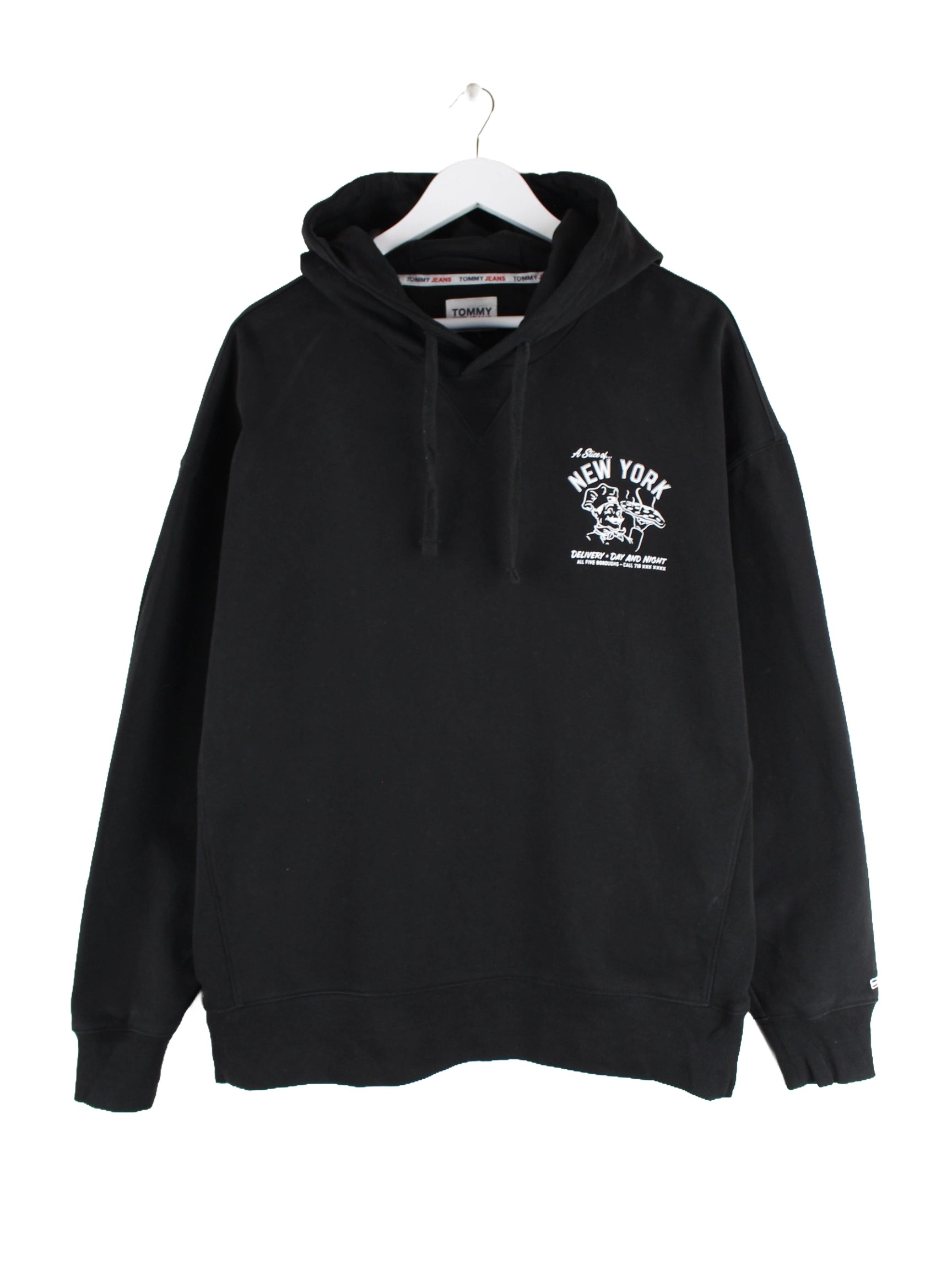 Hoodie des Labels Tommy Hilfiger in Größe XL. Er ist aus einer Baumwollmischung gefertigt und in Schwarz vorrätig. Mit schönem York Print.