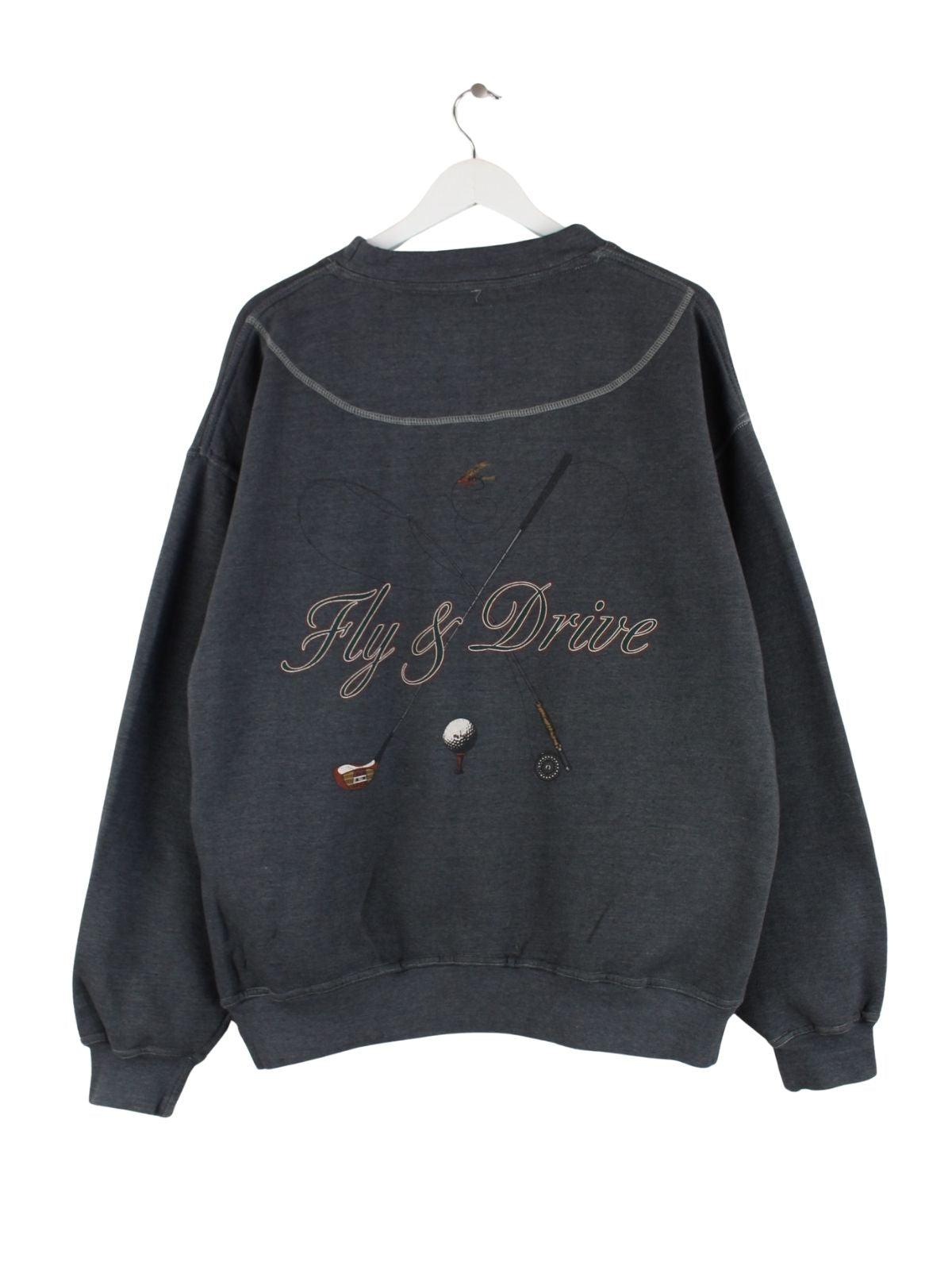 Vintage Sweater in Größe L. Er ist aus einer Baumwollmischung und in Grau lieferbar. Mit seltenem Golf Print.