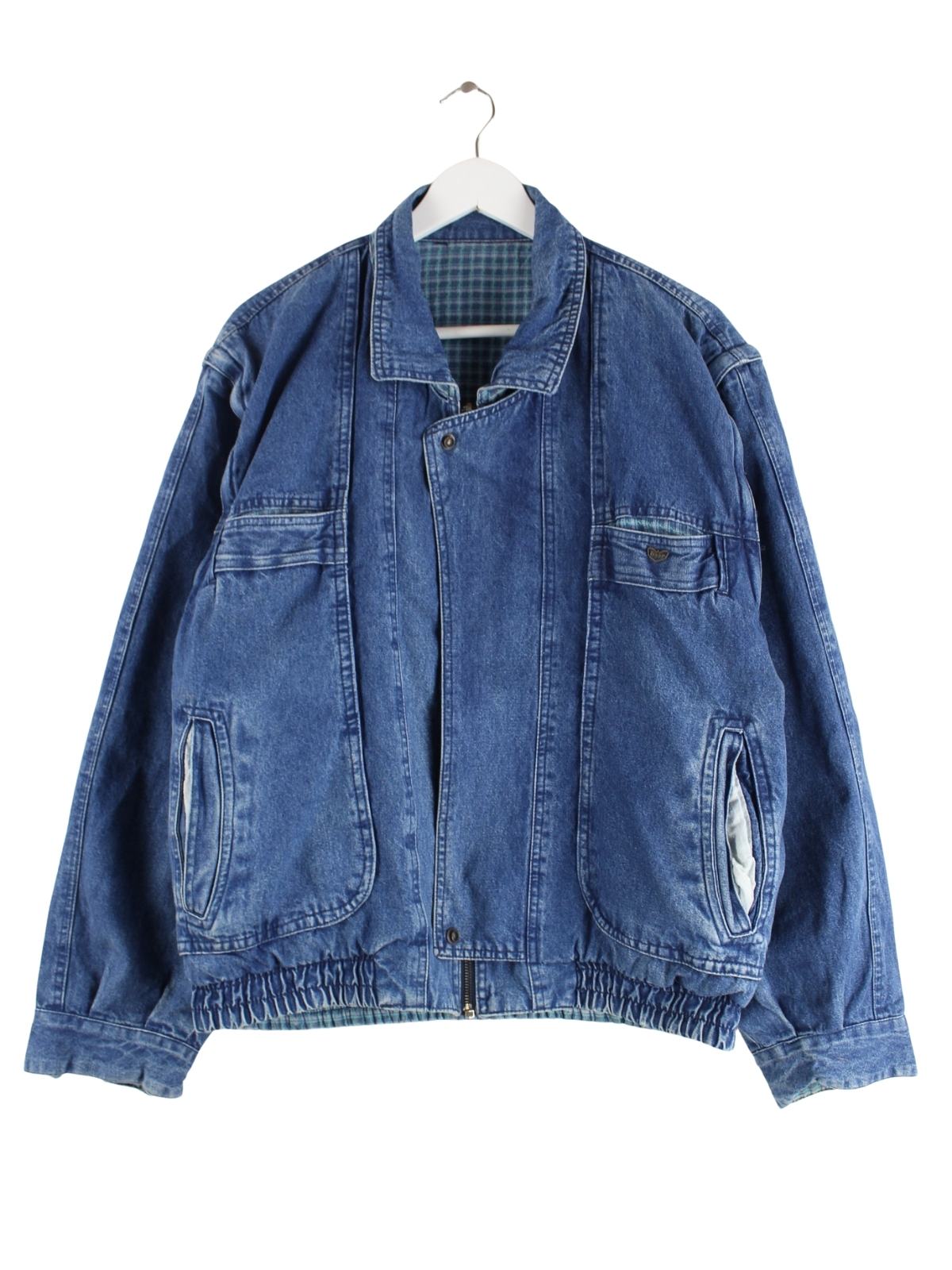 Blaue Vintage Jacke in Größe XL. Sie ist aus Baumwolle gefertigt und in gutem Zustand auf Lager.