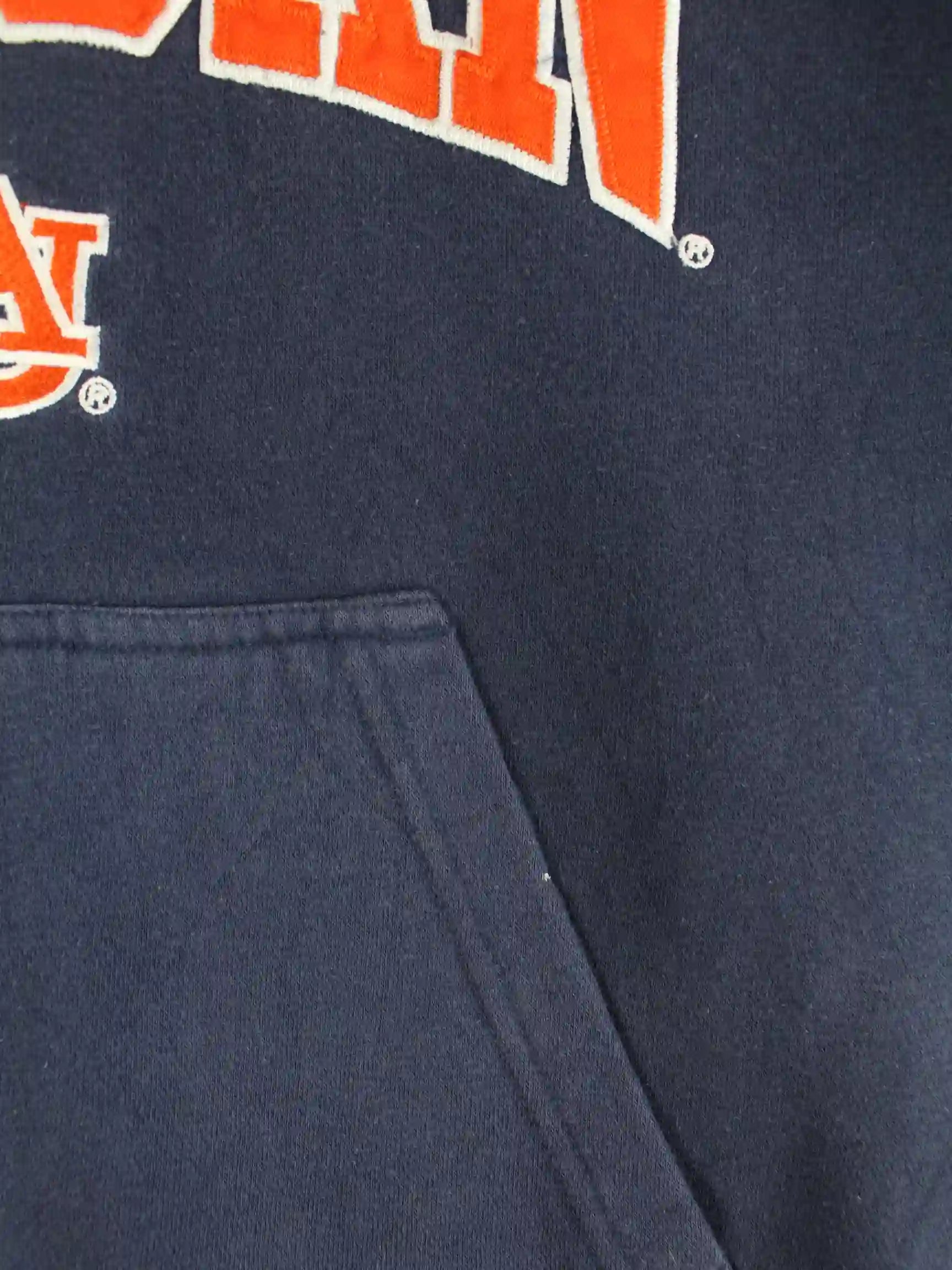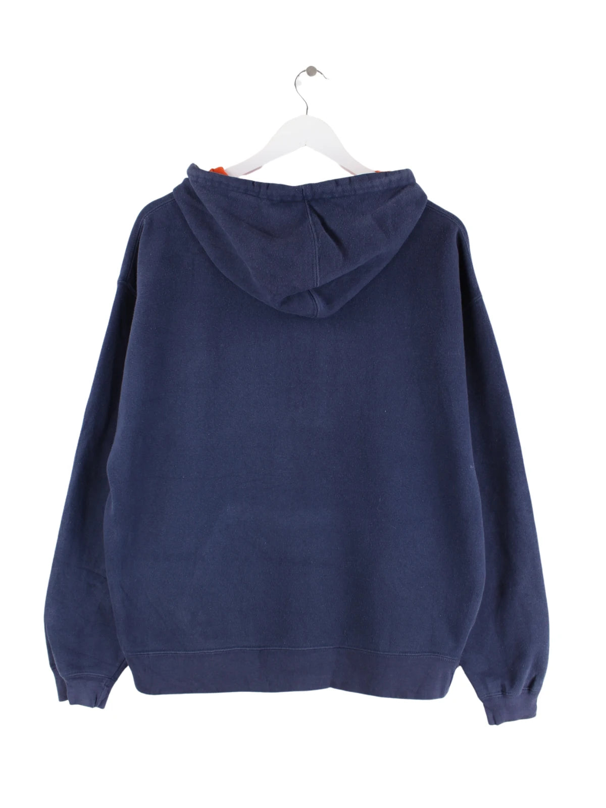 Blauer Vintage Hoodie aus den 90'ern in Größe M. Er ist aus einer Baumwollmischung produziert und in gutem Zustand auf Lager.