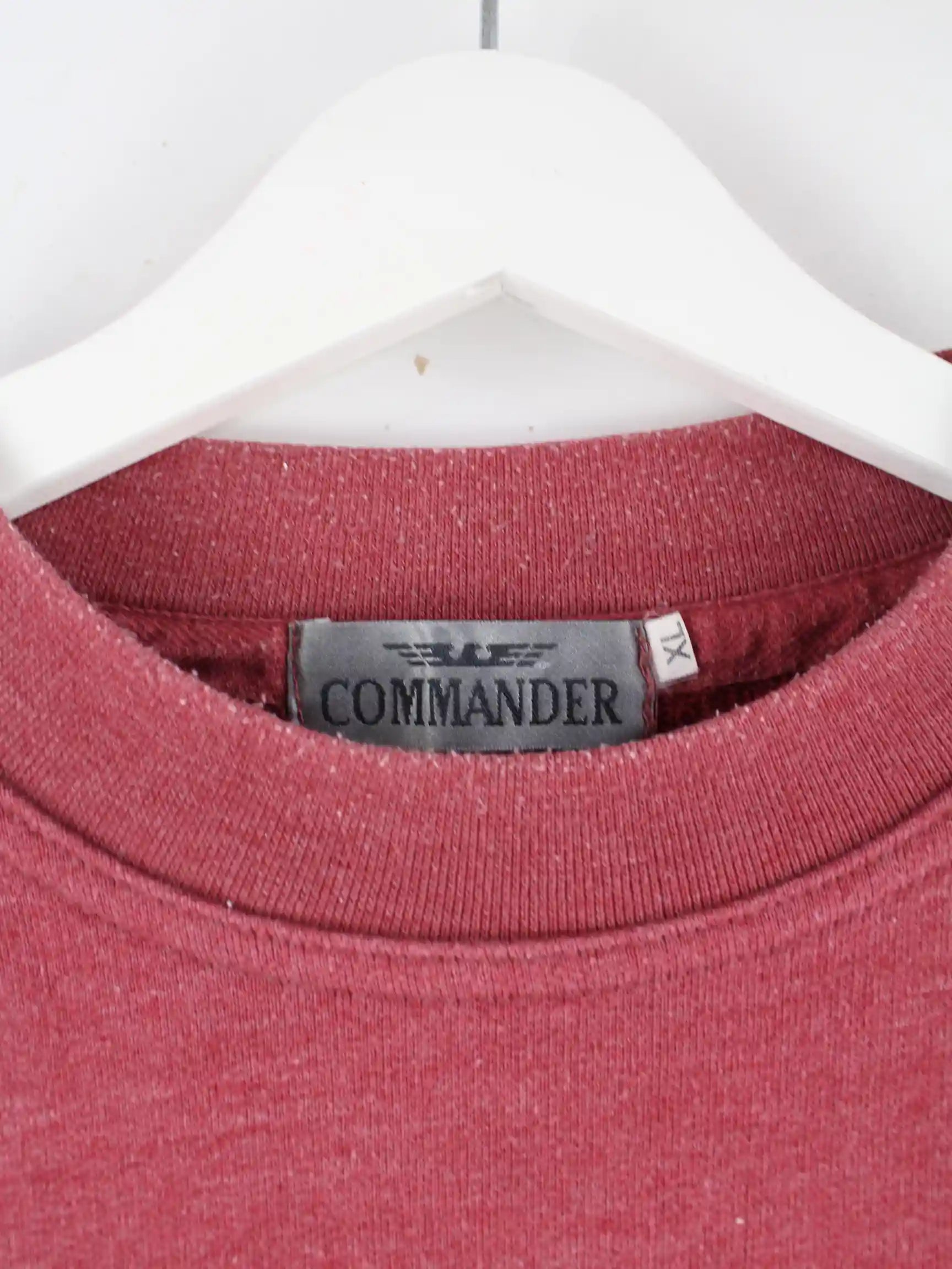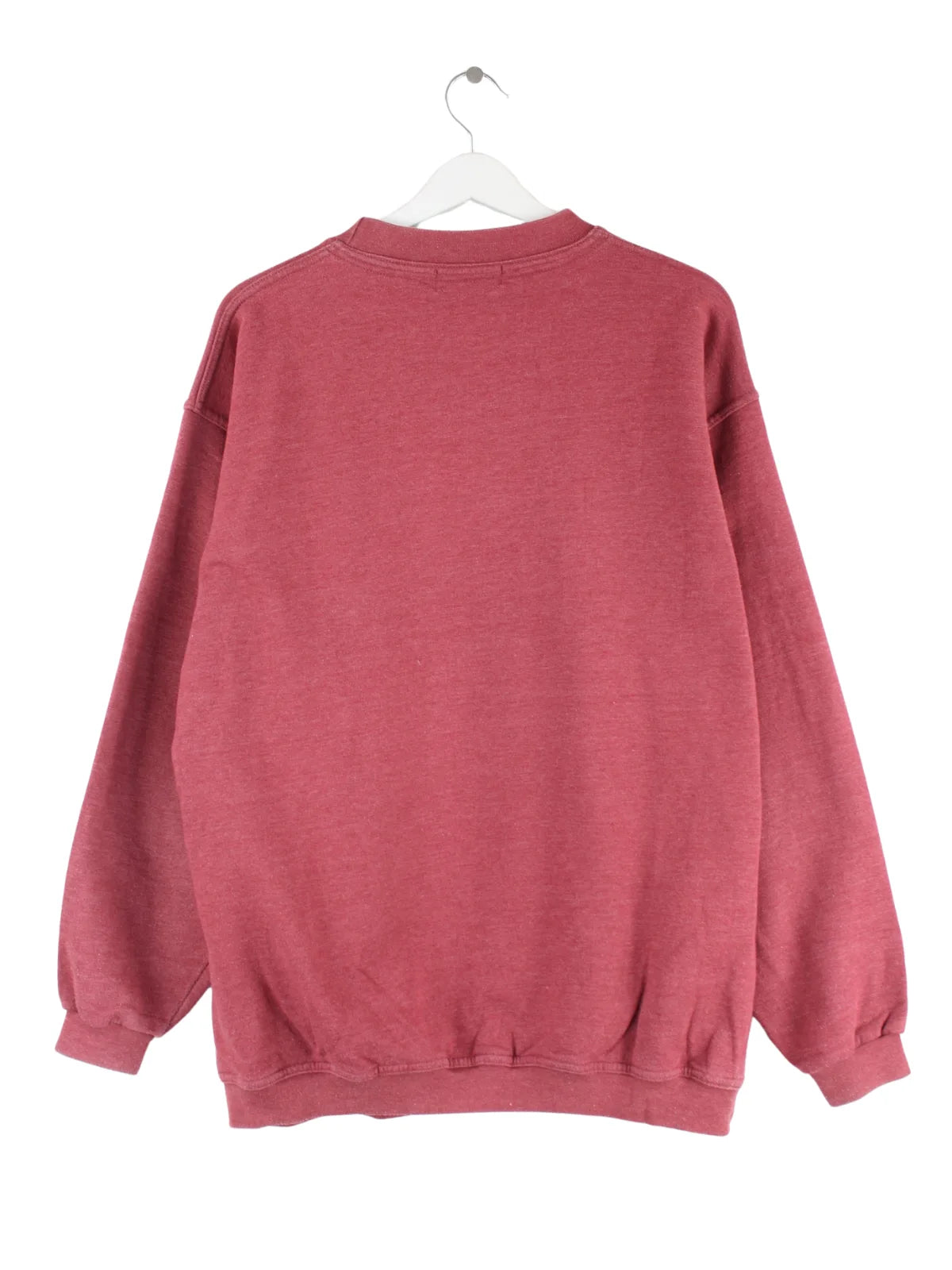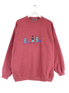 Vintage Sweater mit Stickereien in Größe XL aus den 90'ern. Er ist aus einer Baumwollmischung produziert und in Rot zu haben.