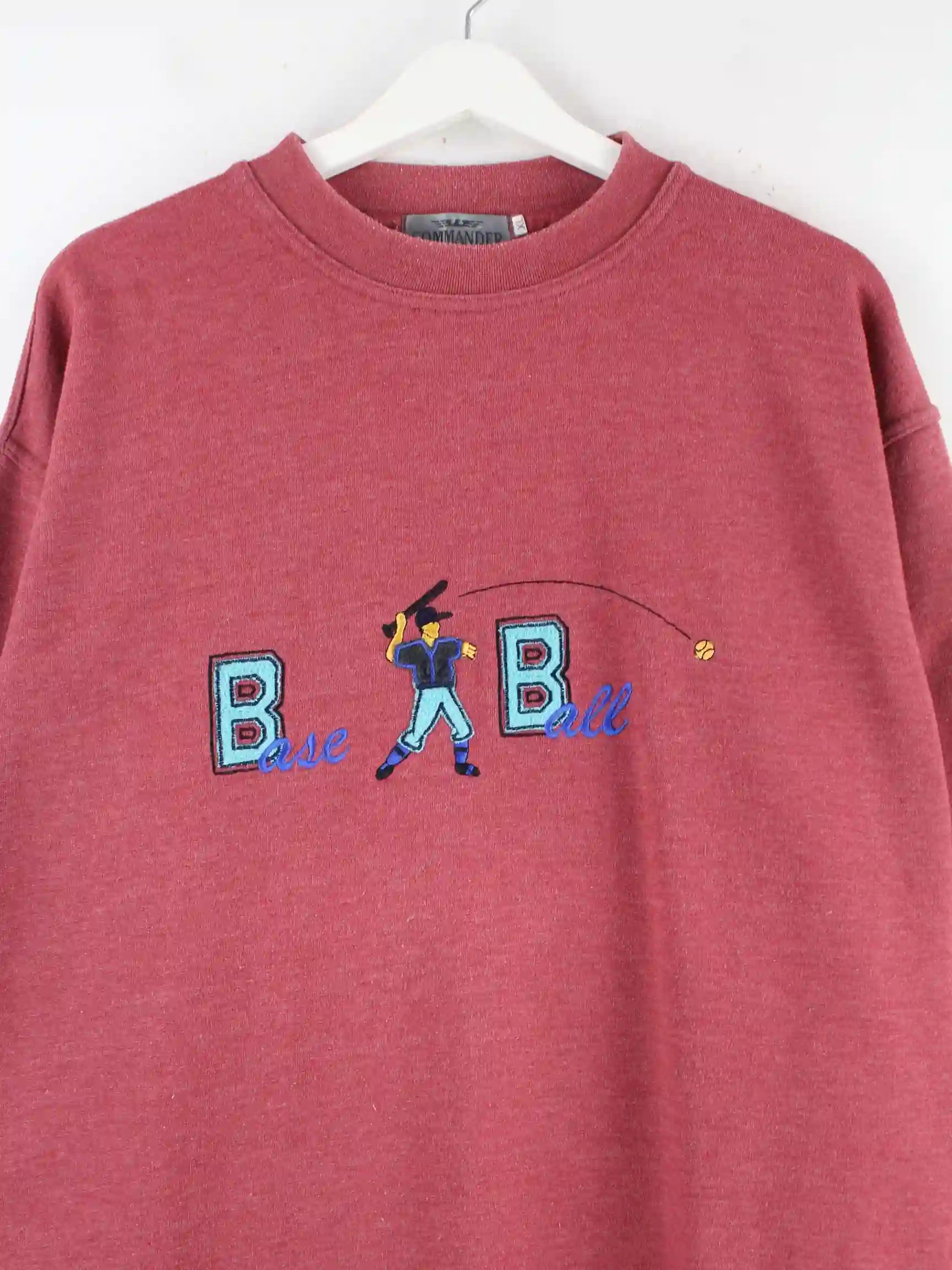 Vintage 90s Baseball Embroidered Sweater Rot XL