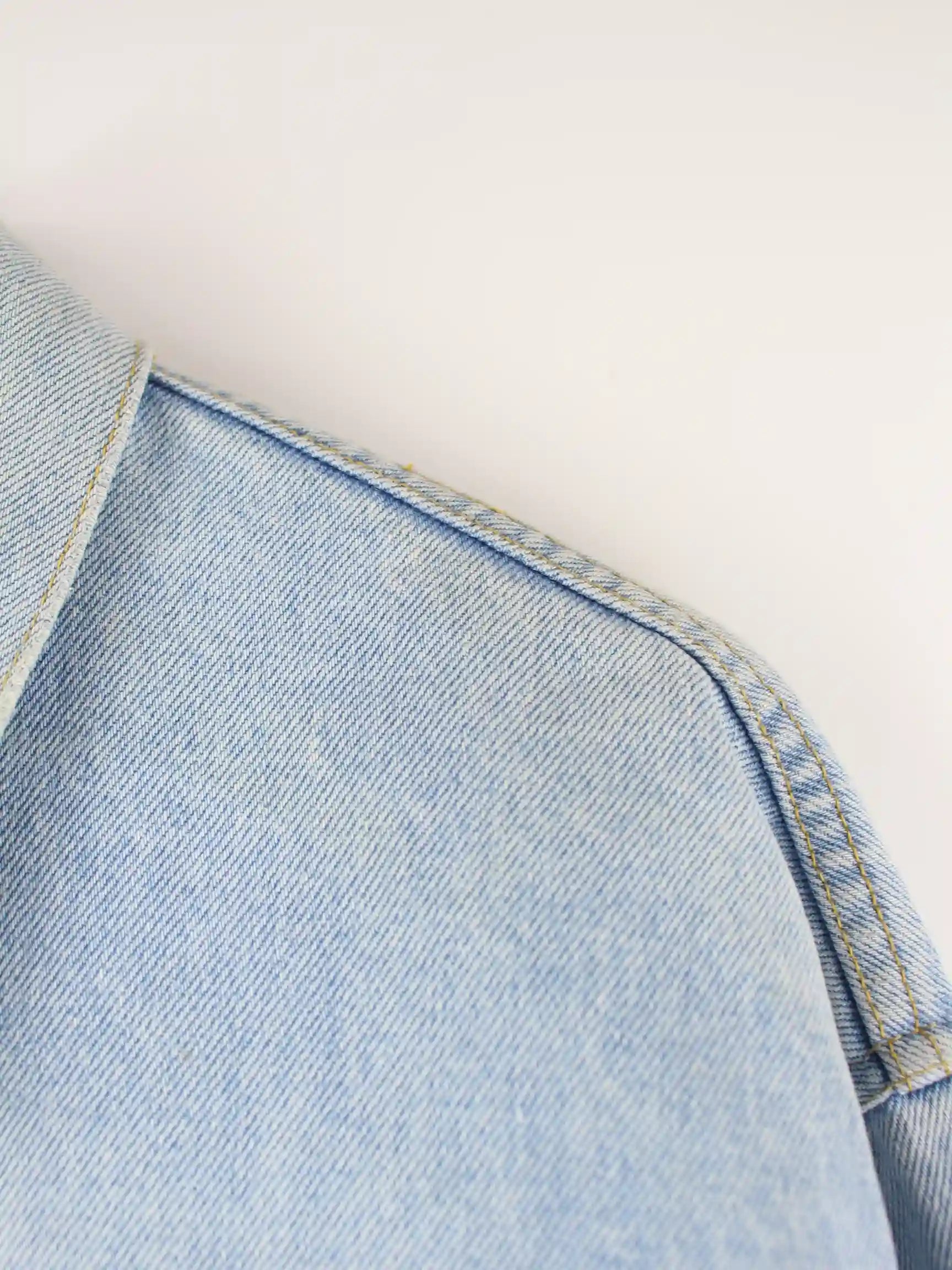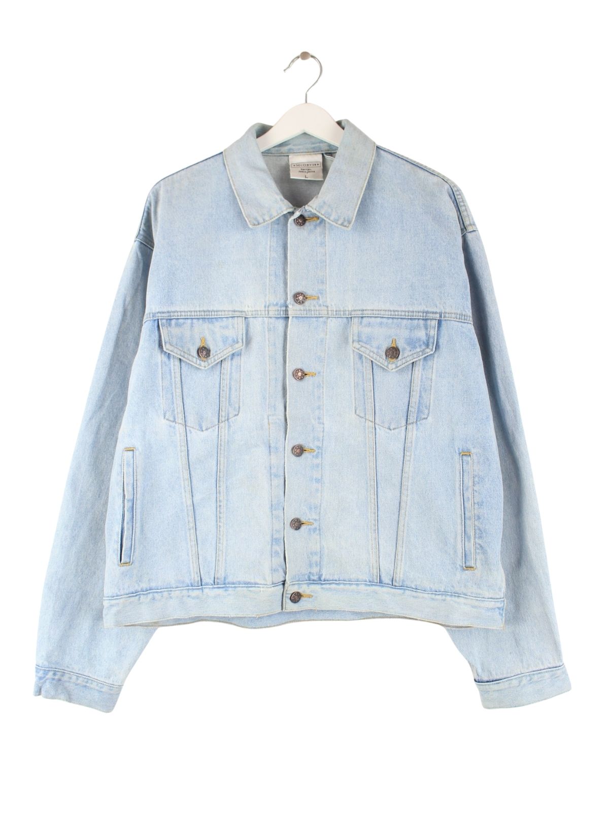 Blaue Vintage Leichte Jacke aus den 90'ern in Größe L. Sie ist aus Baumwolle produziert. Den Zustand würden wir als 'In Ordnung' bezeichnen (vergl. Bilder).