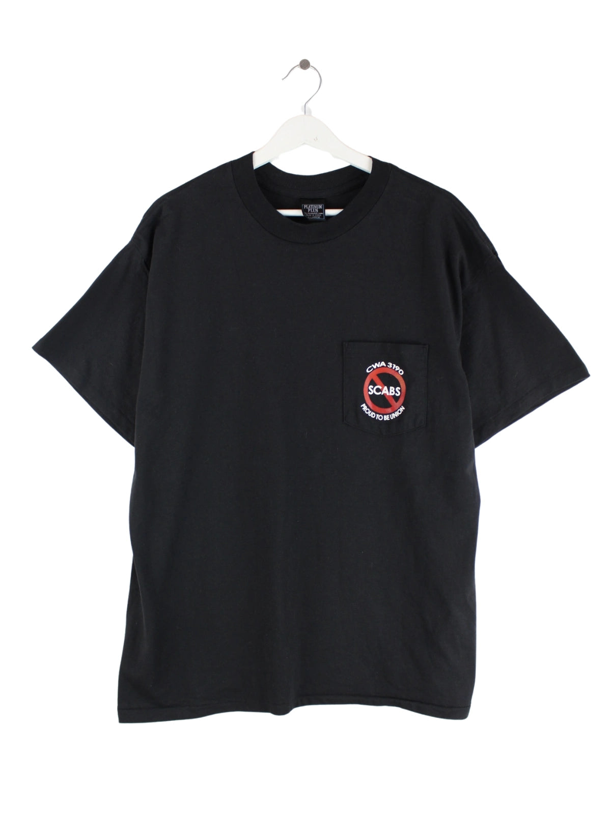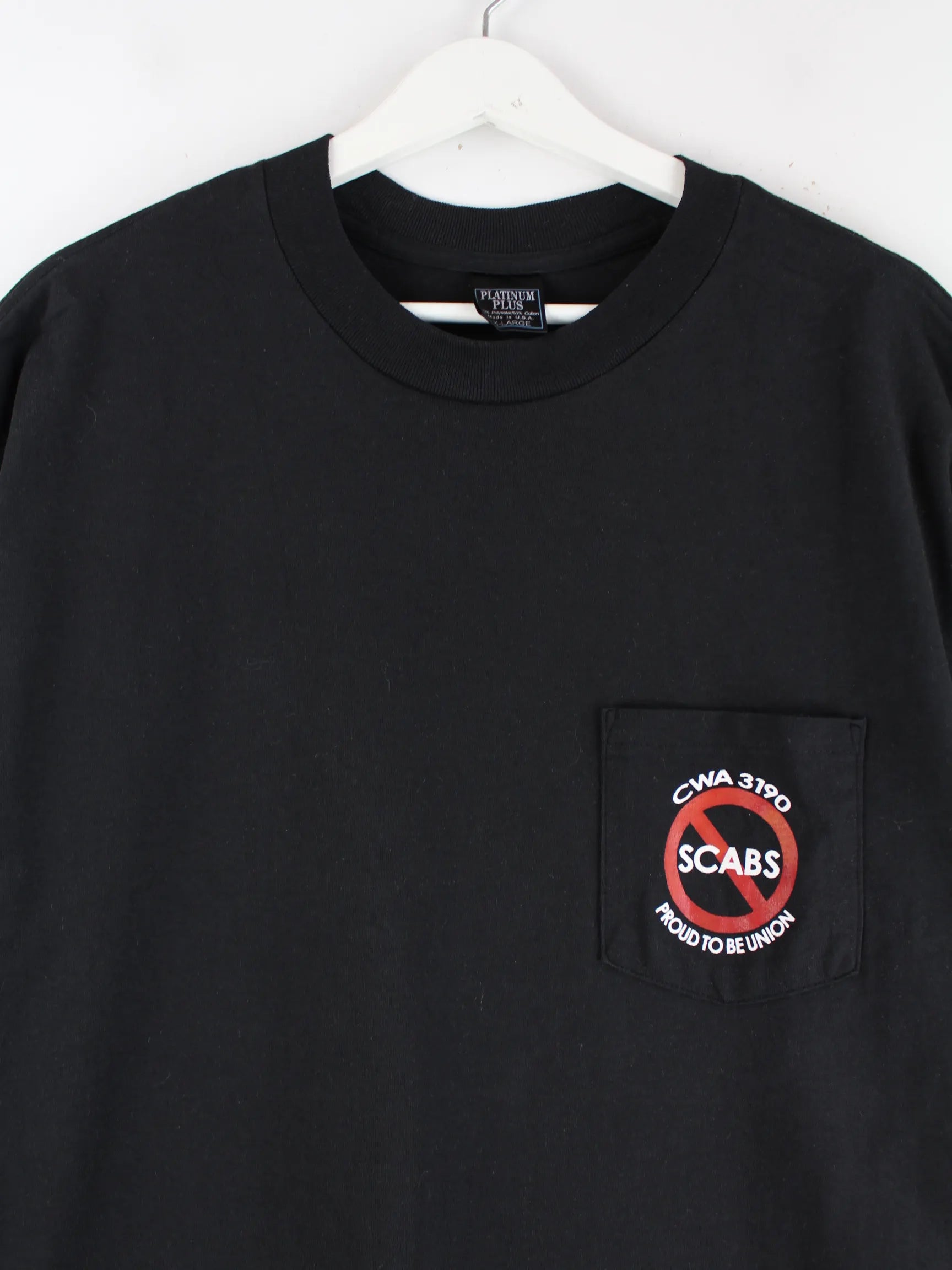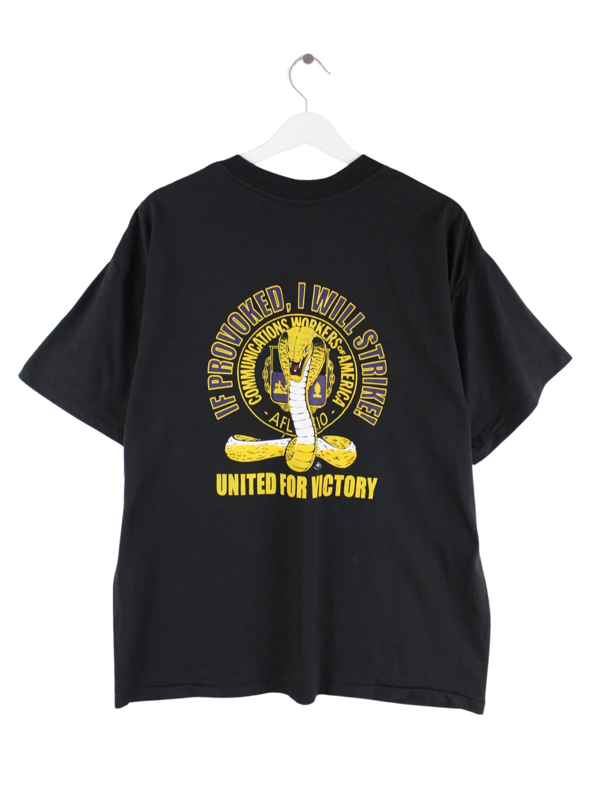 Vintage T-Shirt in Größe XL aus den 90'ern. Es ist aus Baumwolle und in Schwarz vorrätig. Mit chiquem Stitch Print.