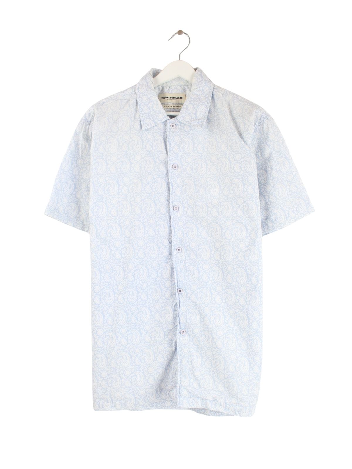 Vintage Crazy Pattern Kurzarm Hemd Blau L