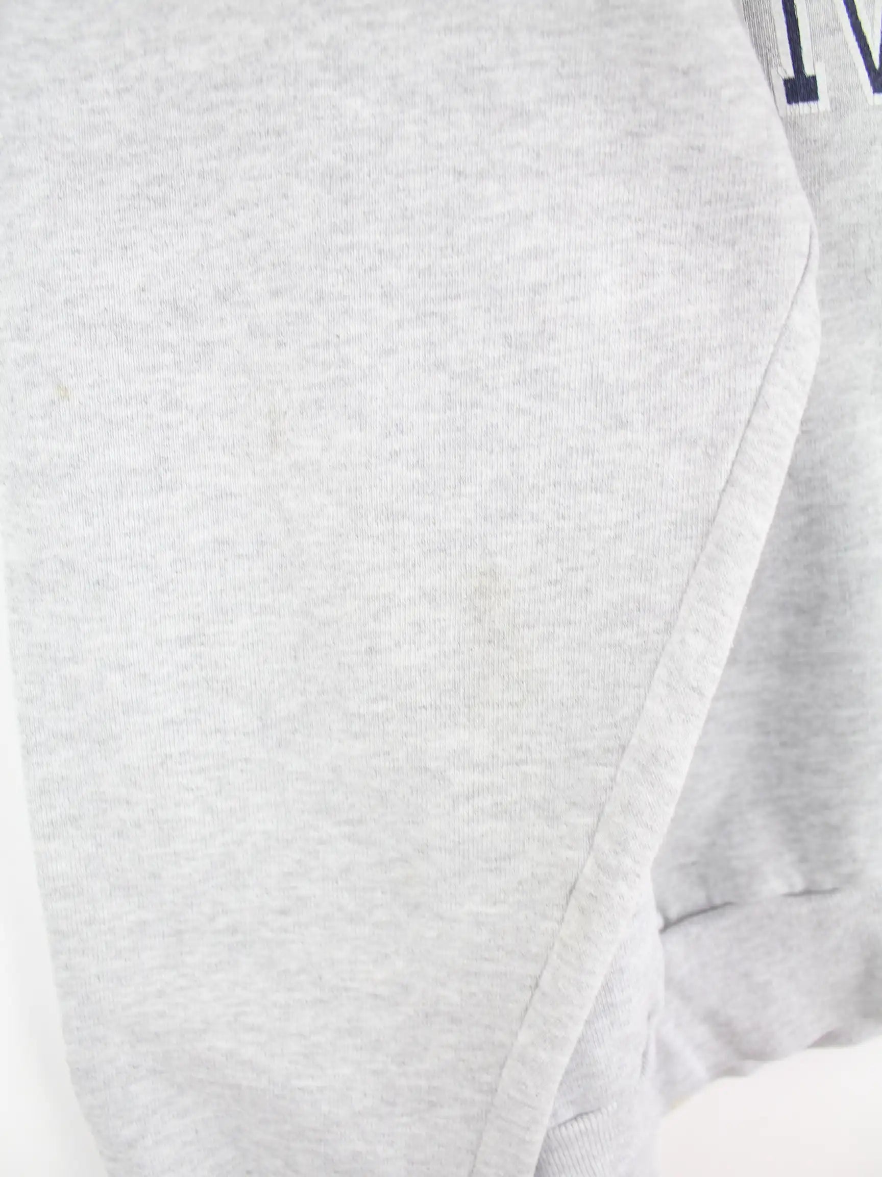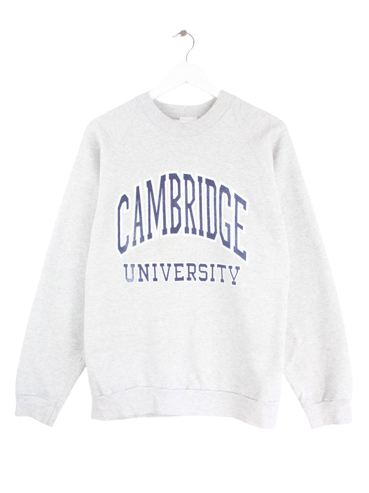 Vintage Sweater in Größe L aus den 90'ern. Er ist aus einer Baumwollmischung angefertigt und in Grau bei uns zu bekommen. Mit seltenem Cambridge Print.