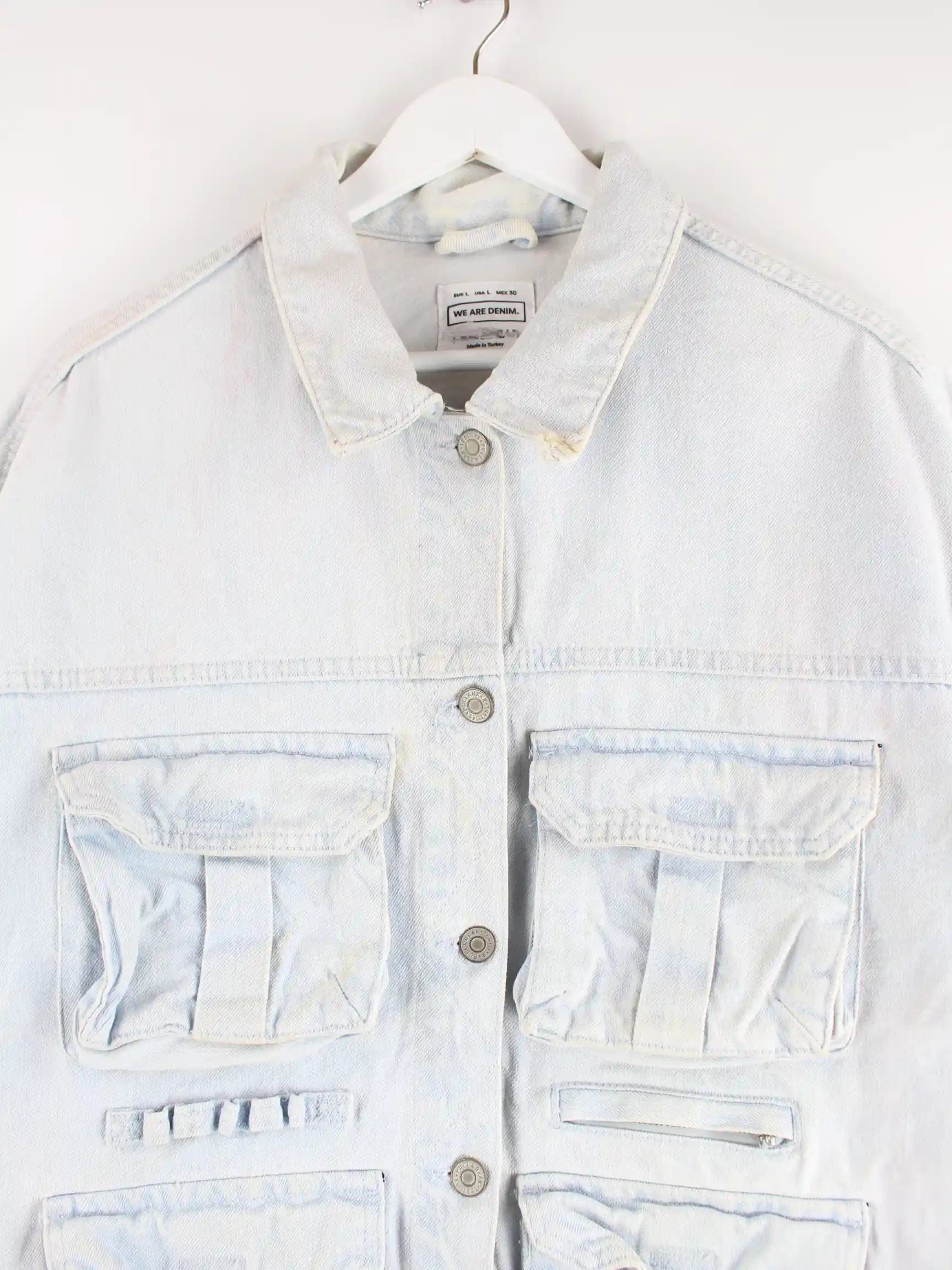 Blaue Vintage Jacke in Größe L. Sie ist aus Baumwolle gemacht. Den Zustand würden wir als 'In Ordnung' bezeichnen (vergl. Bilder).