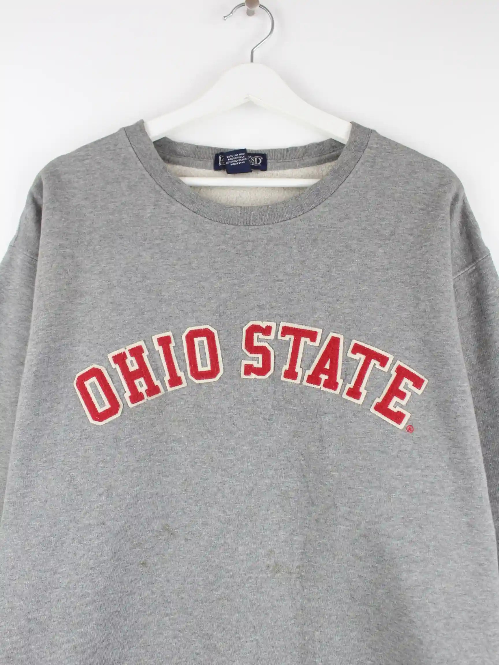 Vintage Sweater in Größe L. Er ist aus einer Baumwollmischung gefertigt und in Grau lieferbar.