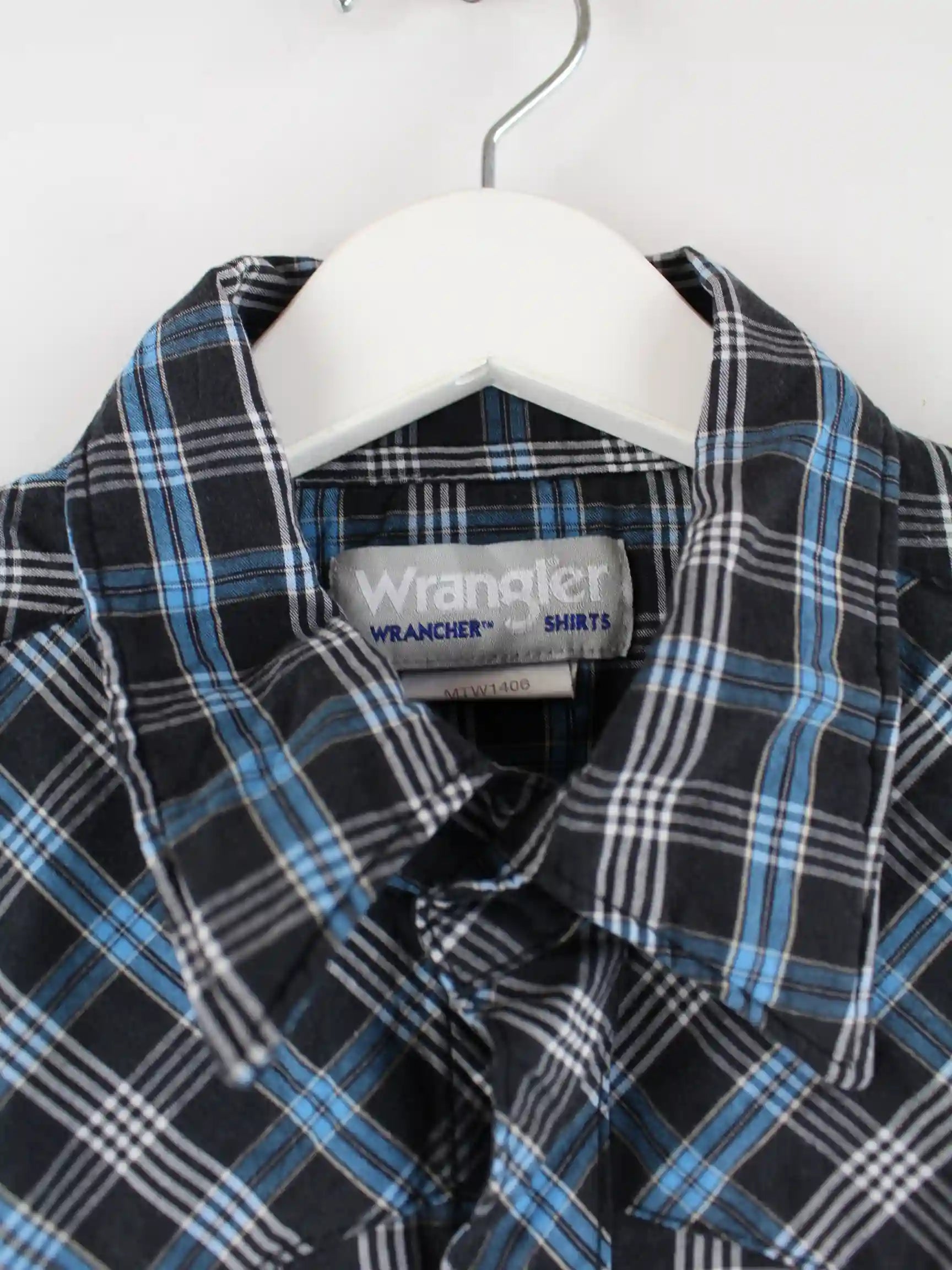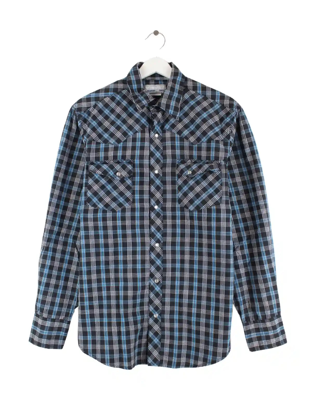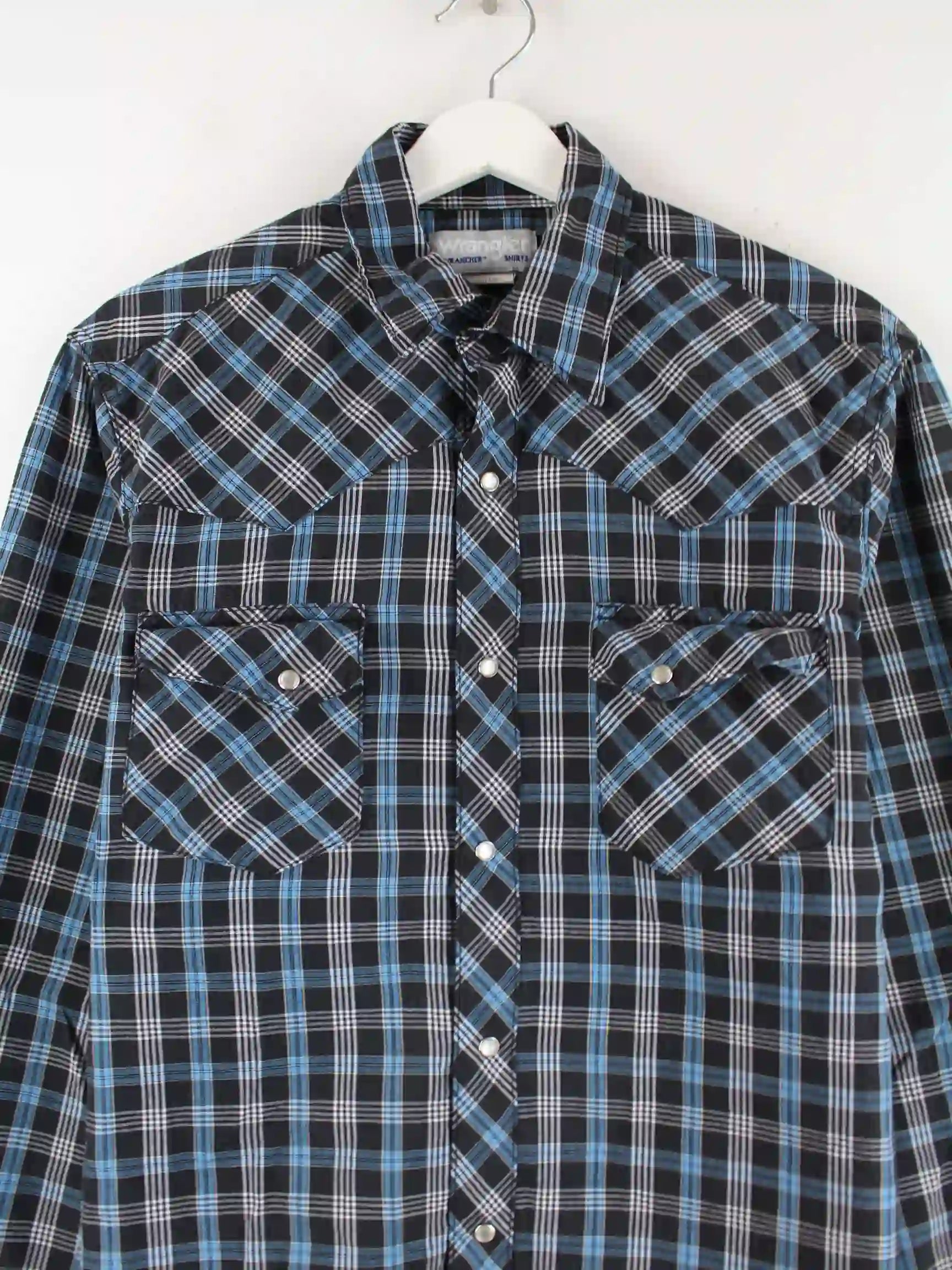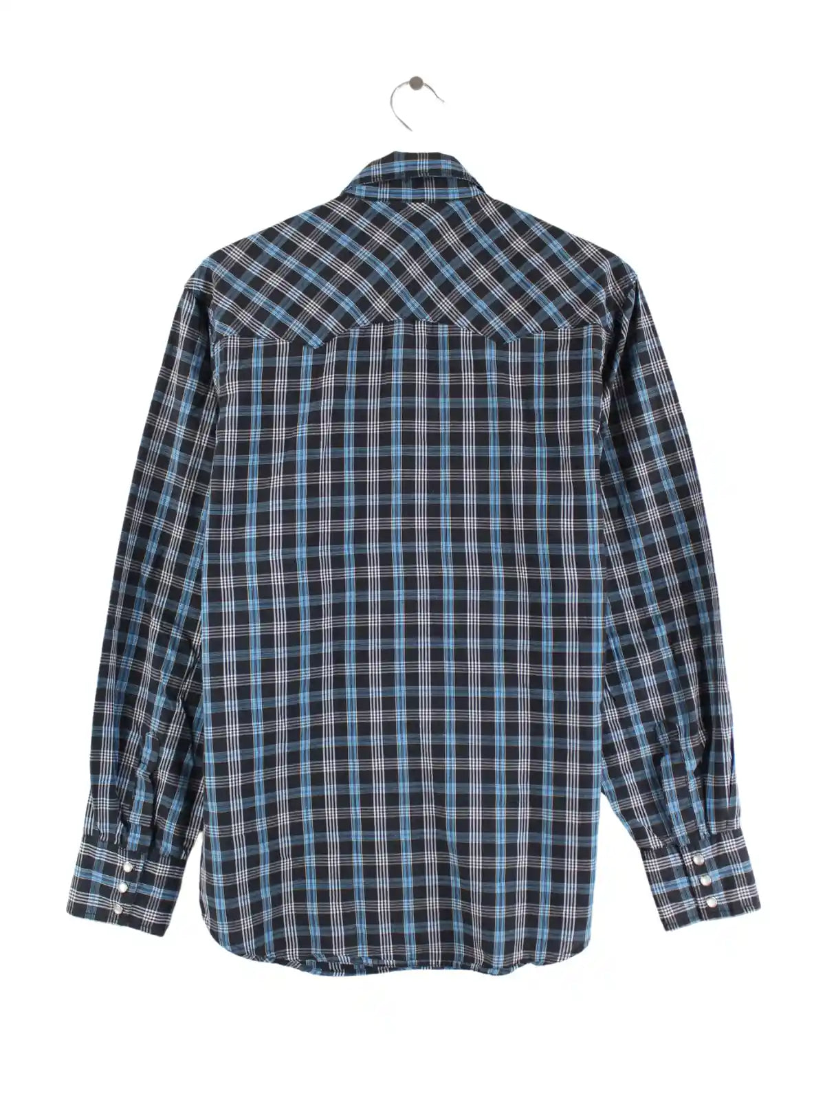 Blaues Freizeit Hemd aus dem Hause Wrangler aus den 90'ern in Größe M. Es ist aus Baumwolle produziert und in sehr gutem Zustand lieferbar.