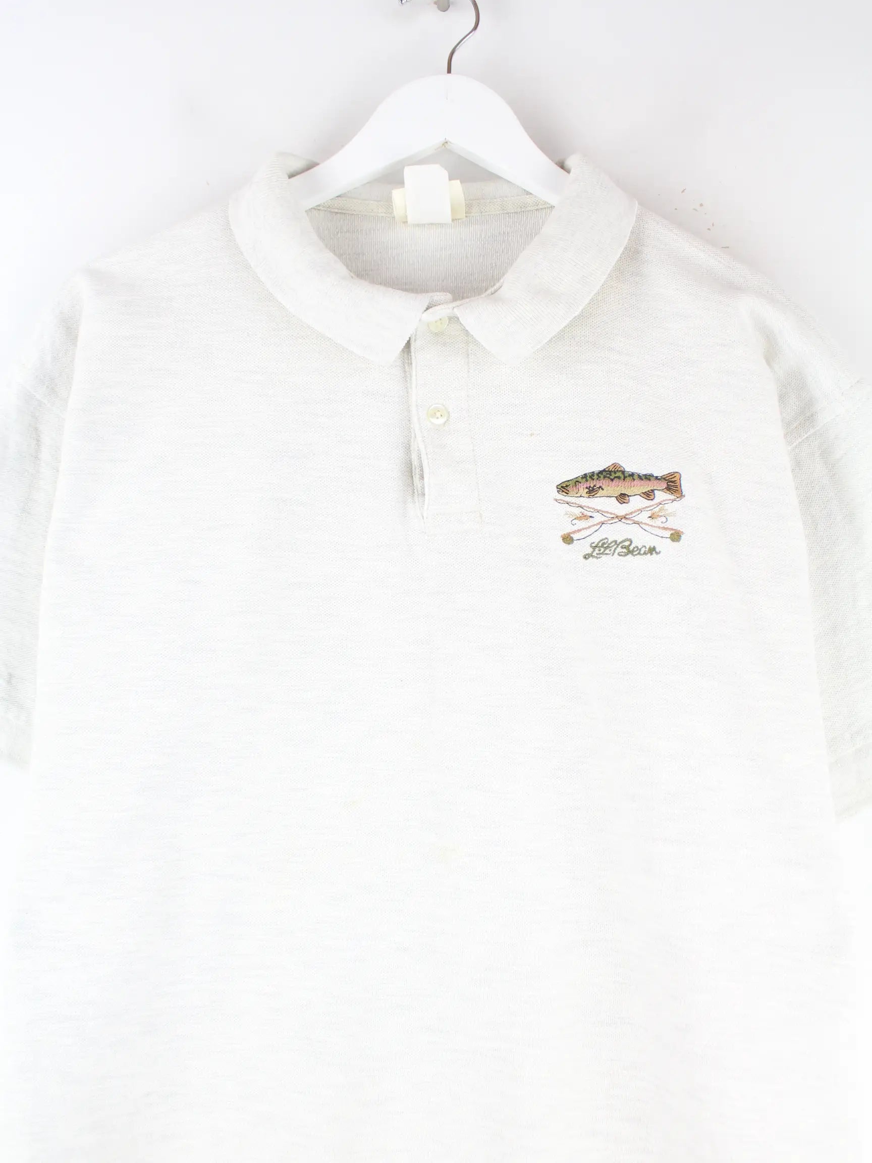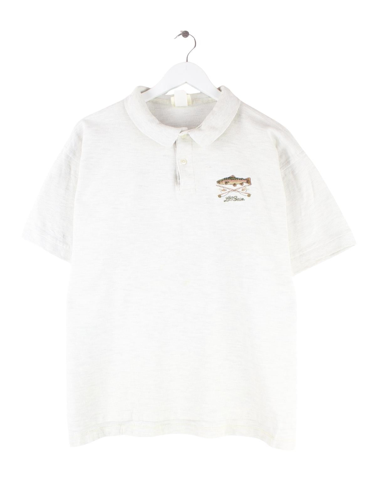 LL Bean 90s Vintage Fish Embroidered Polo Grau L
