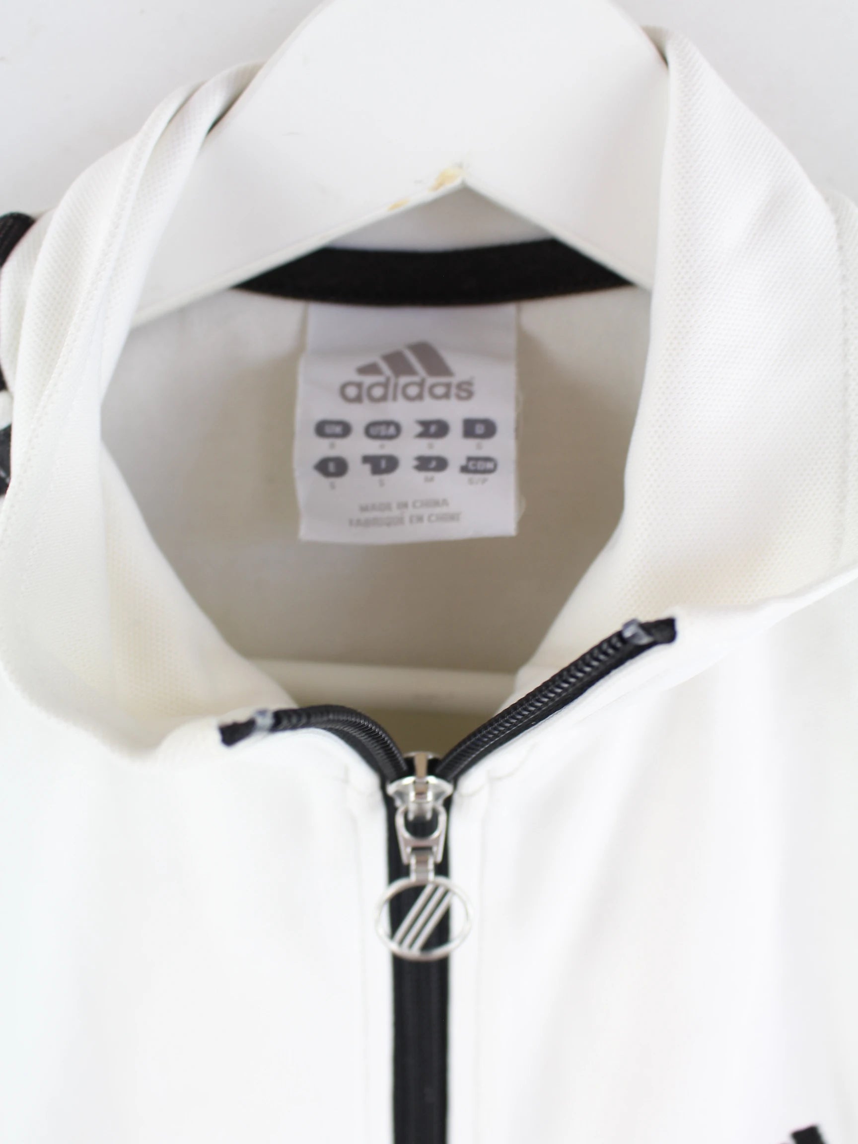 Trainingsjacke aus dem Hause Adidas in Größe S. Sie ist aus Synthetik gemacht und in Weiß auf Lager.
