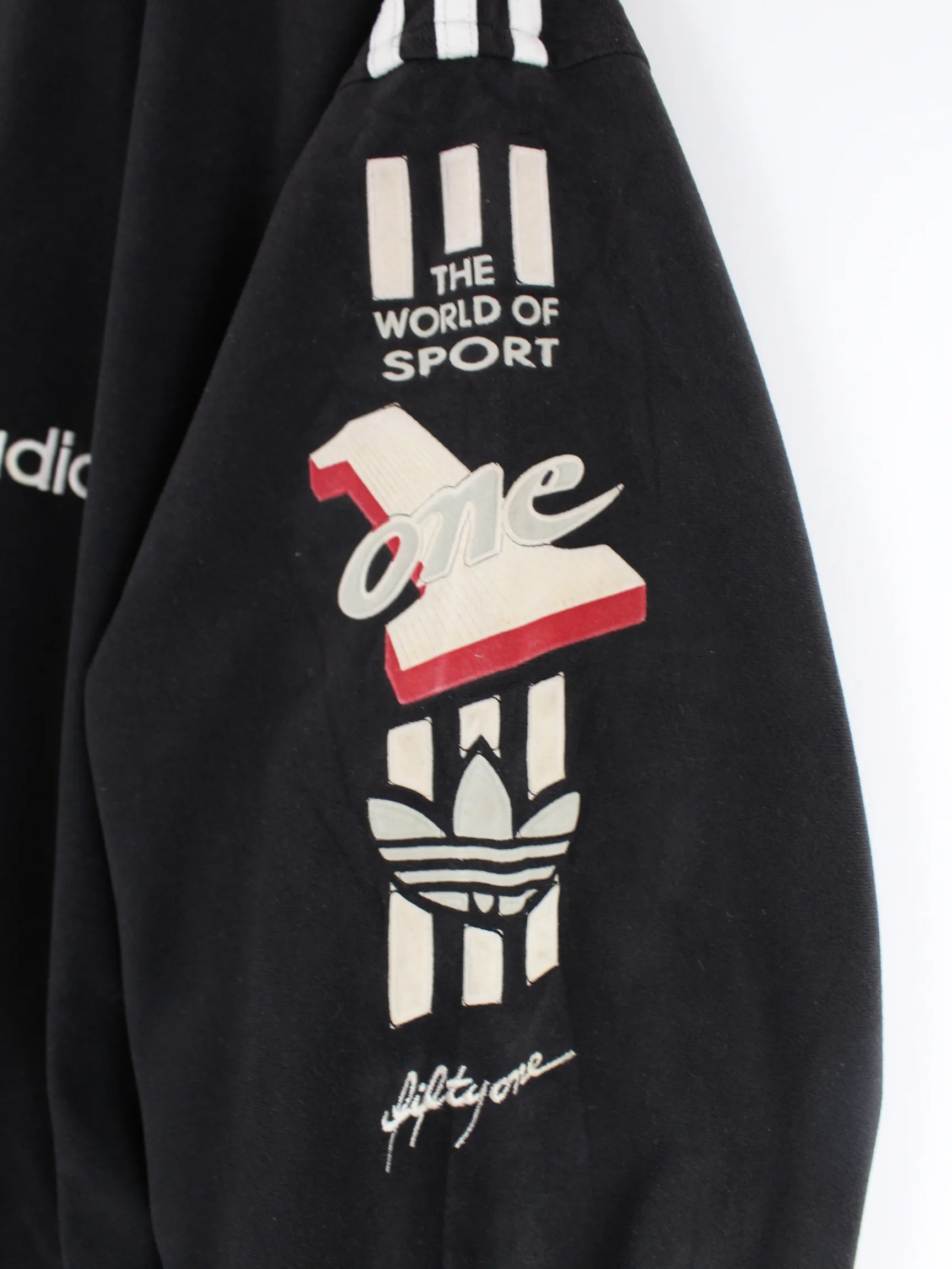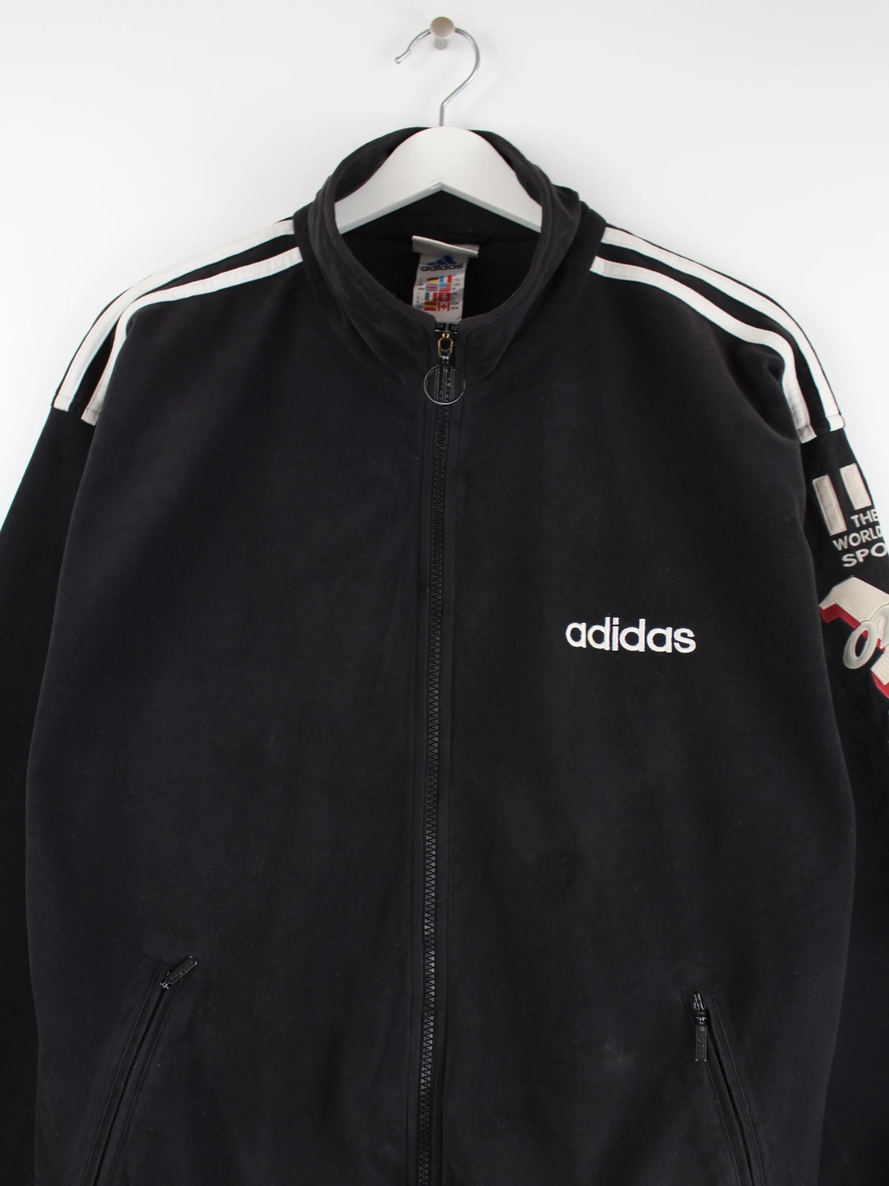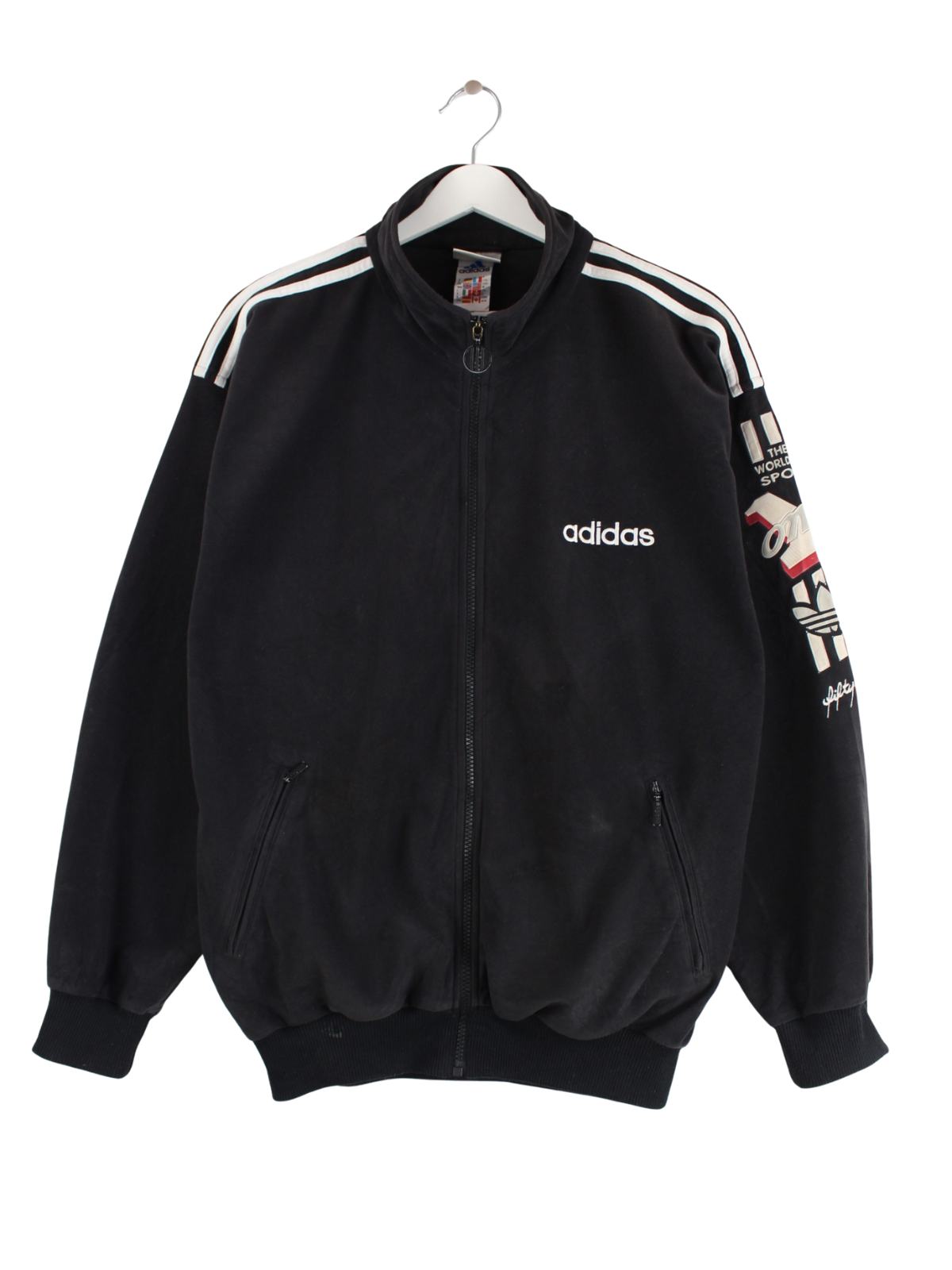 Trainingsjacke vom Label Adidas in Größe M aus den 90'ern. Sie ist aus Synthetik angefertigt und in Schwarz auf Lager.