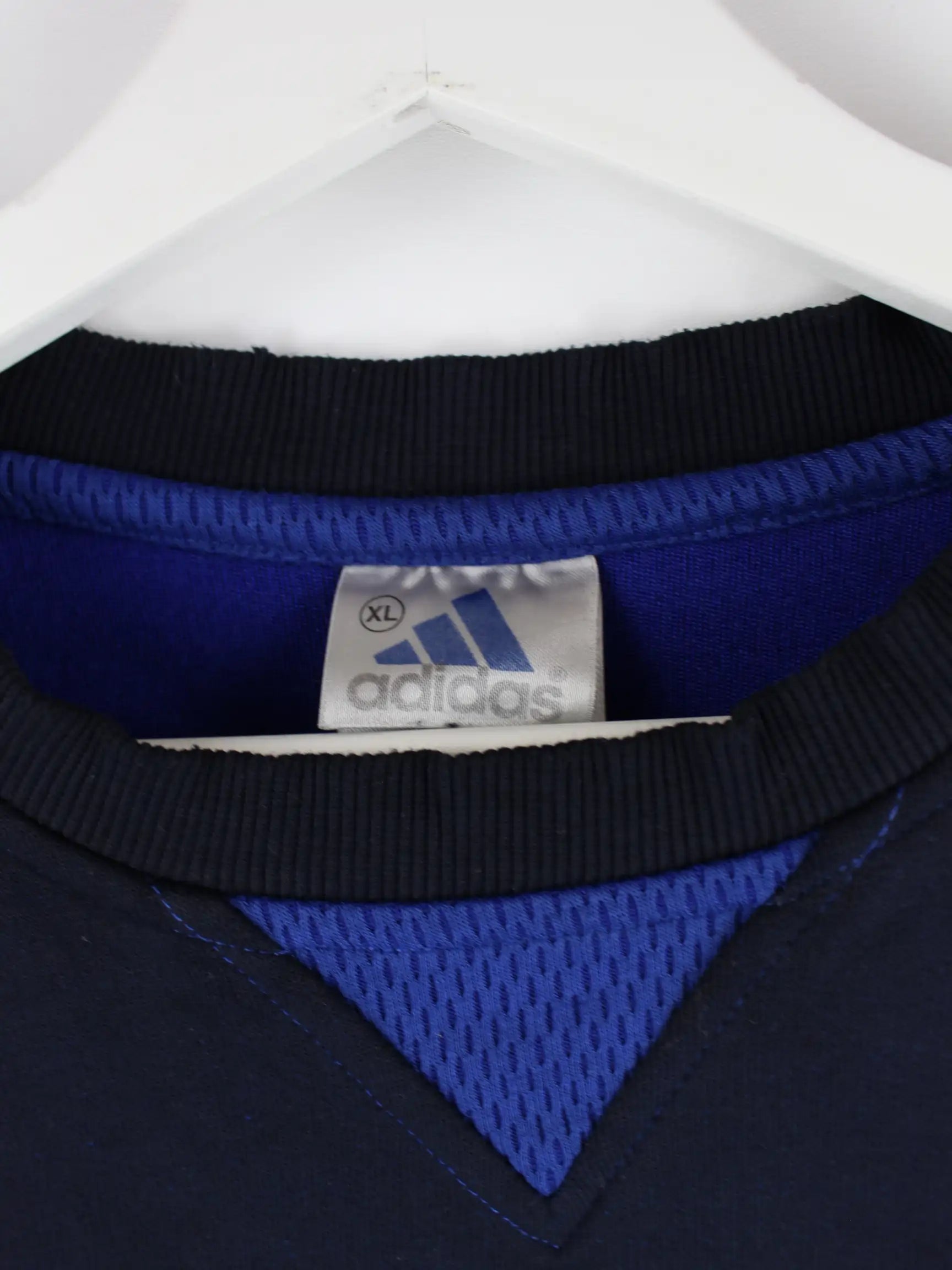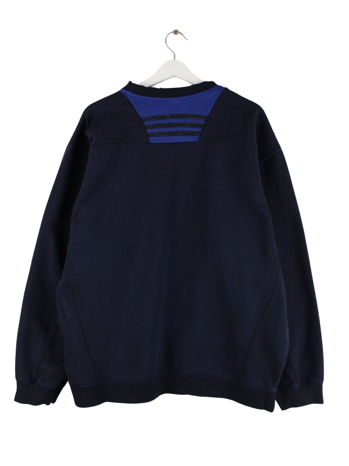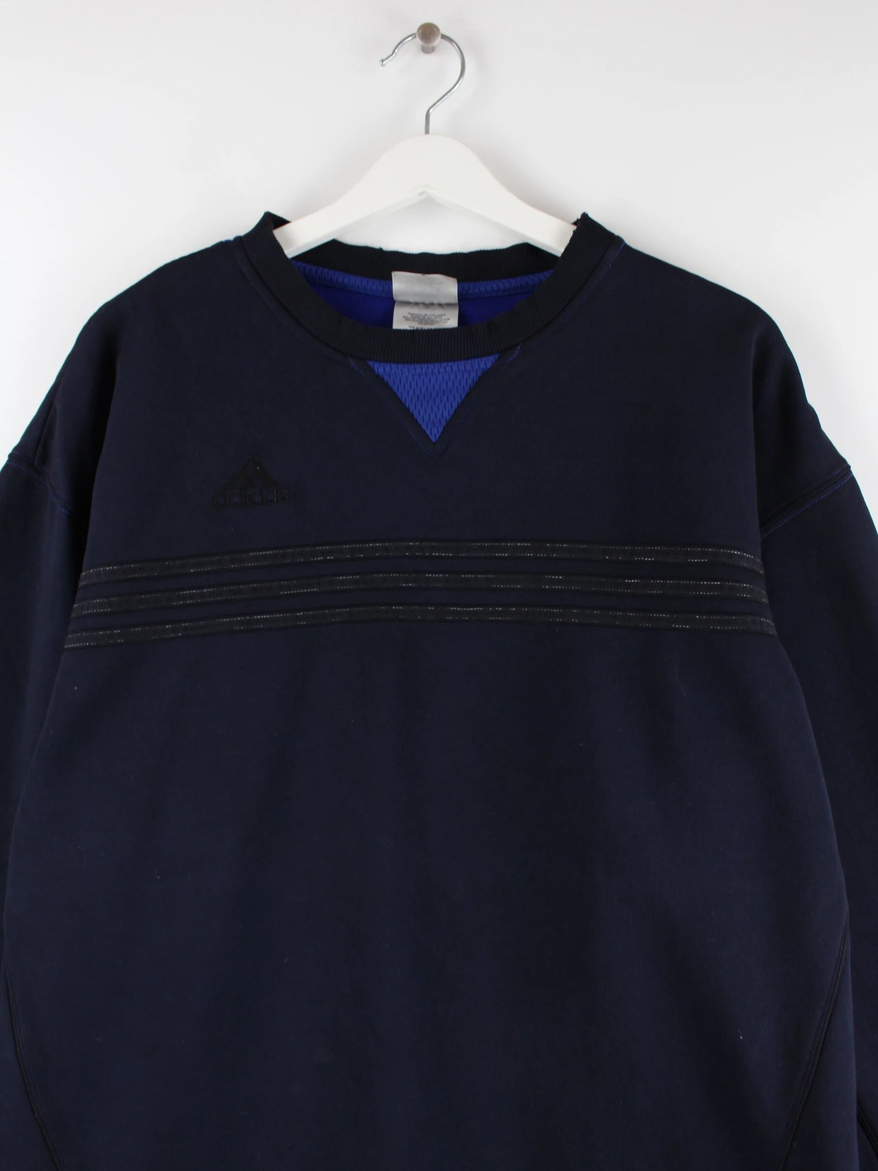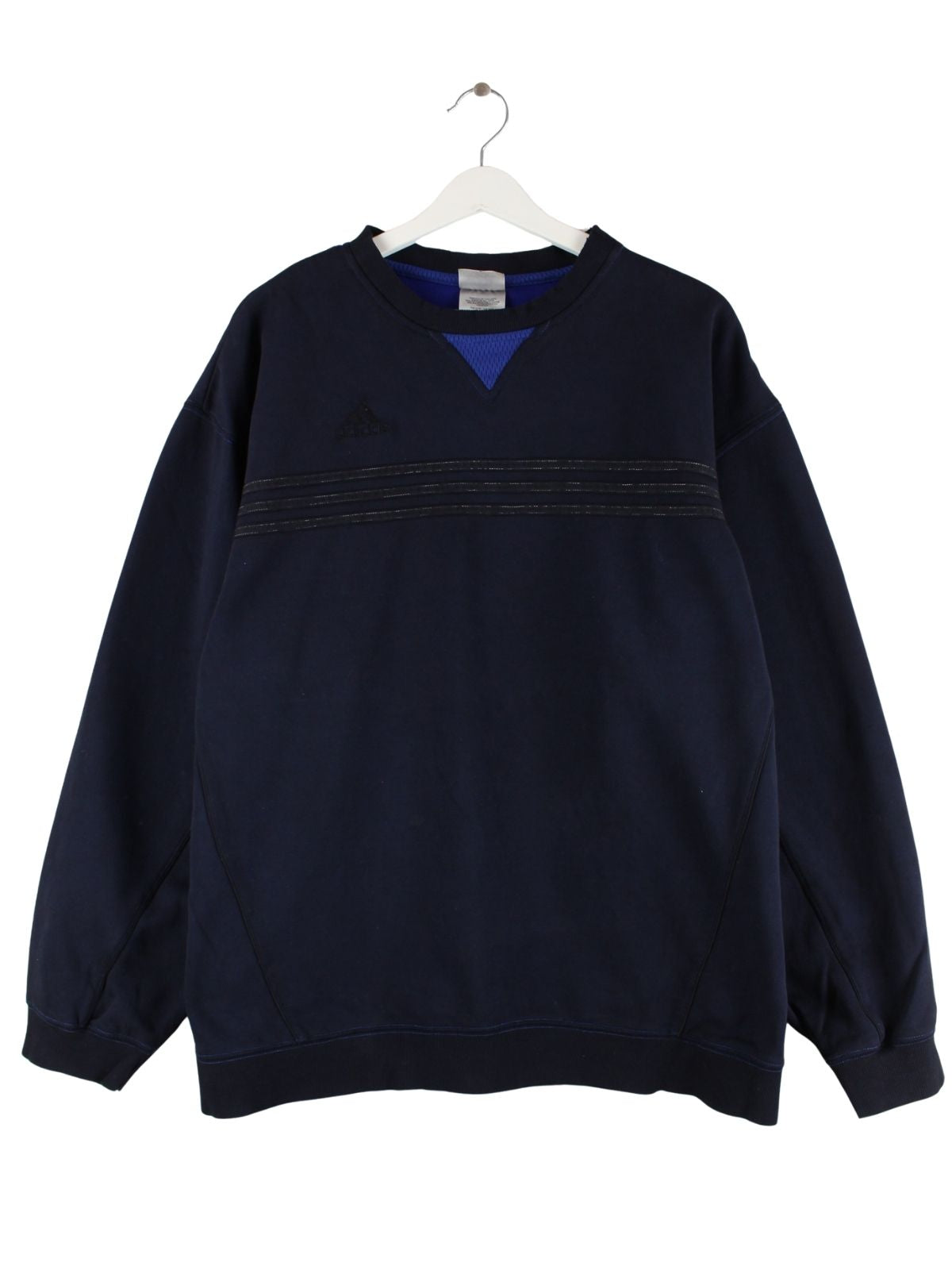 Blauer Sweater von Adidas aus den 90'ern in Größe XL. Er ist aus einer Baumwollmischung gemacht und in gutem Zustand zu haben.