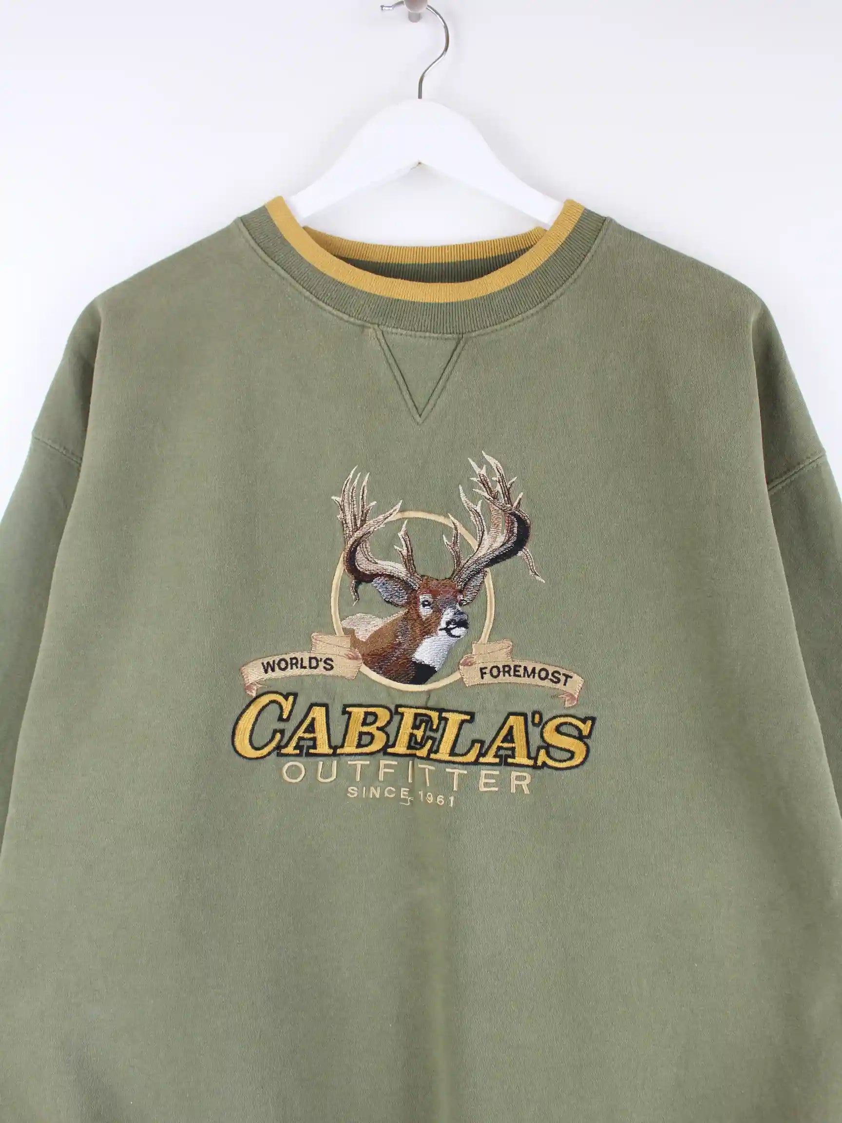 Sweater aus dem Hause Cabela's in Größe XL. Er ist aus einer Baumwollmischung gemacht und in Grün lieferbar.