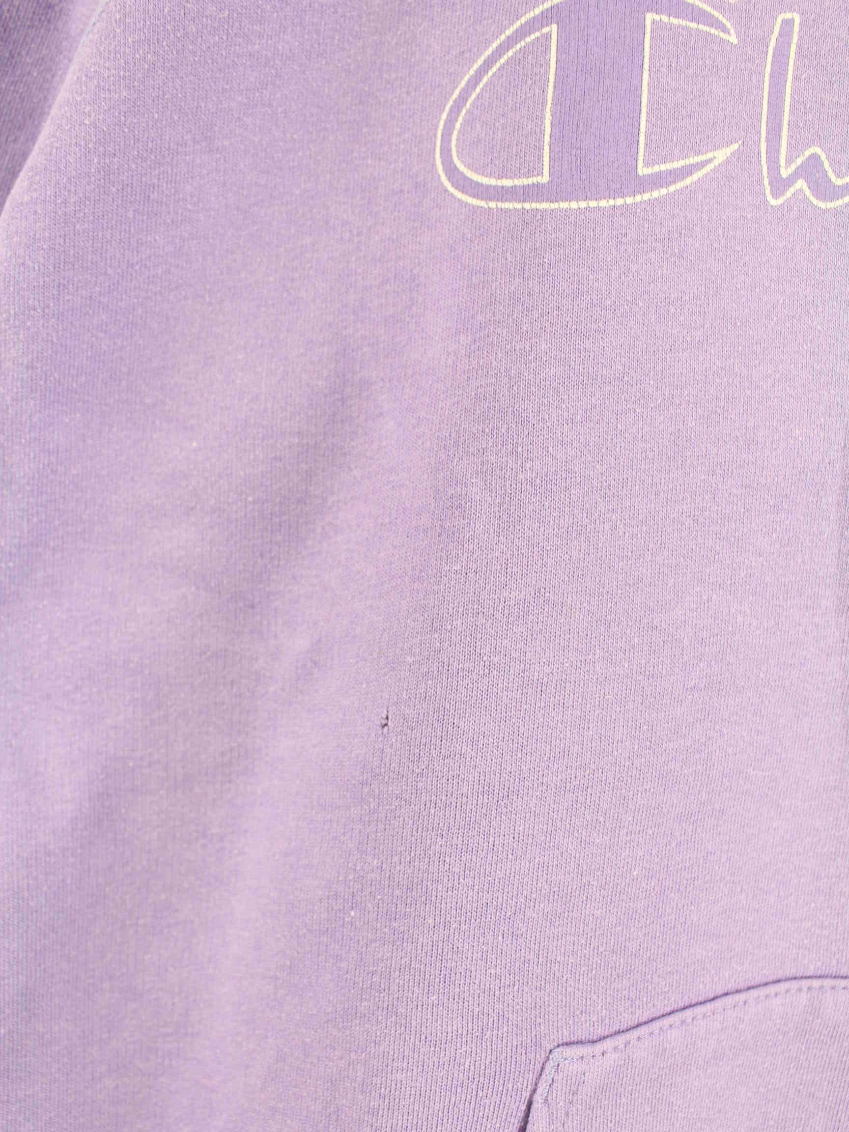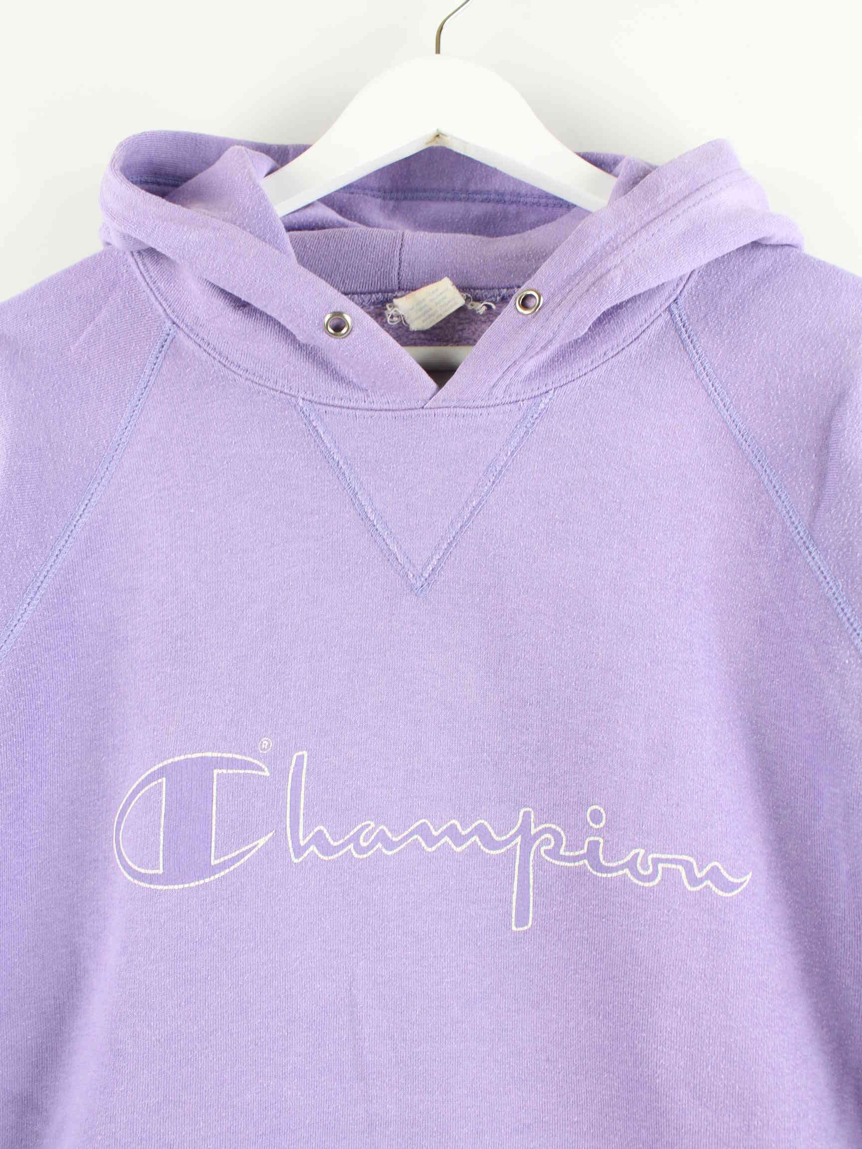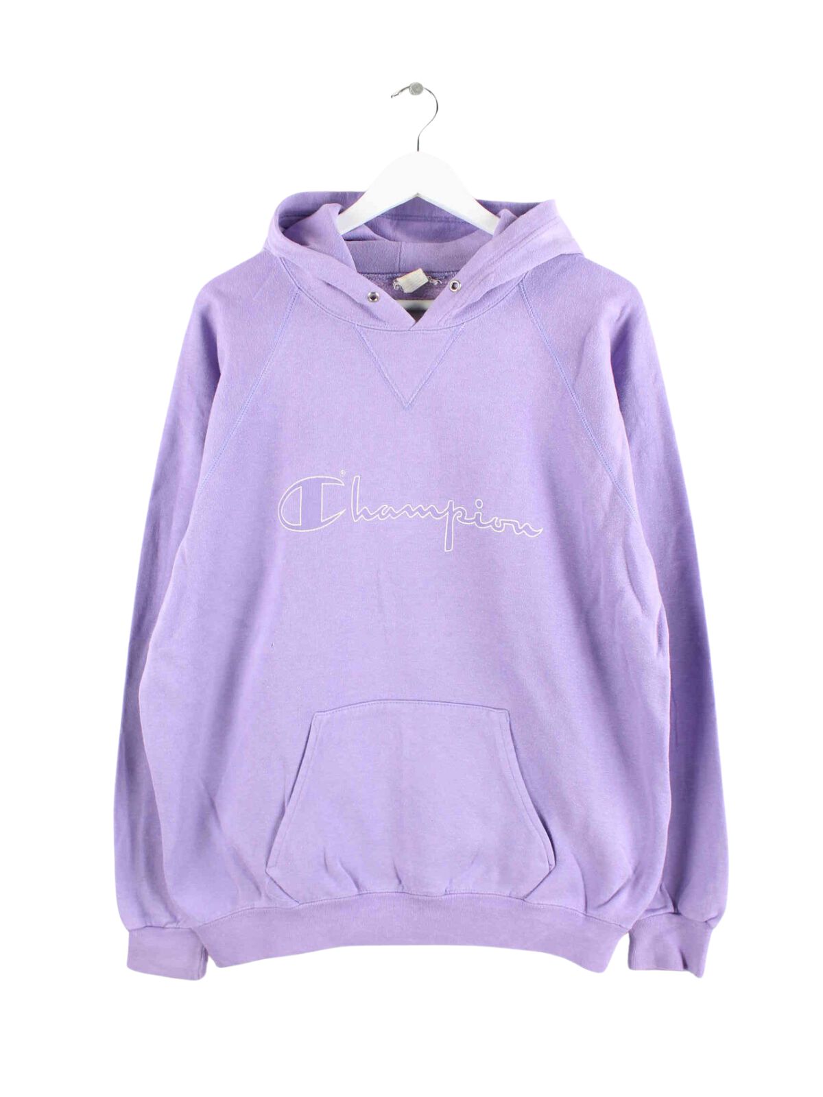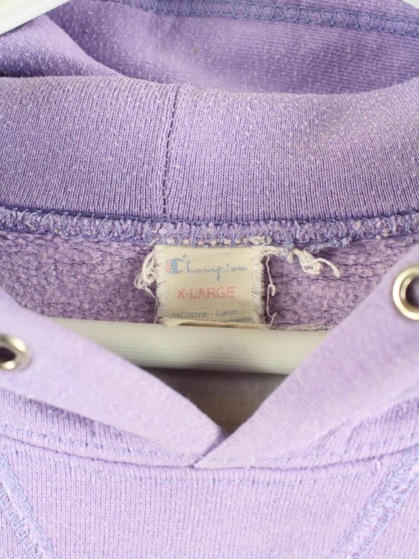 Hoodie aus dem Hause Champion in Größe XL aus den 90'ern. Er ist aus einer Baumwollmischung produziert und in Lila bei uns zu bekommen. Mit chiquem Vintage Print.