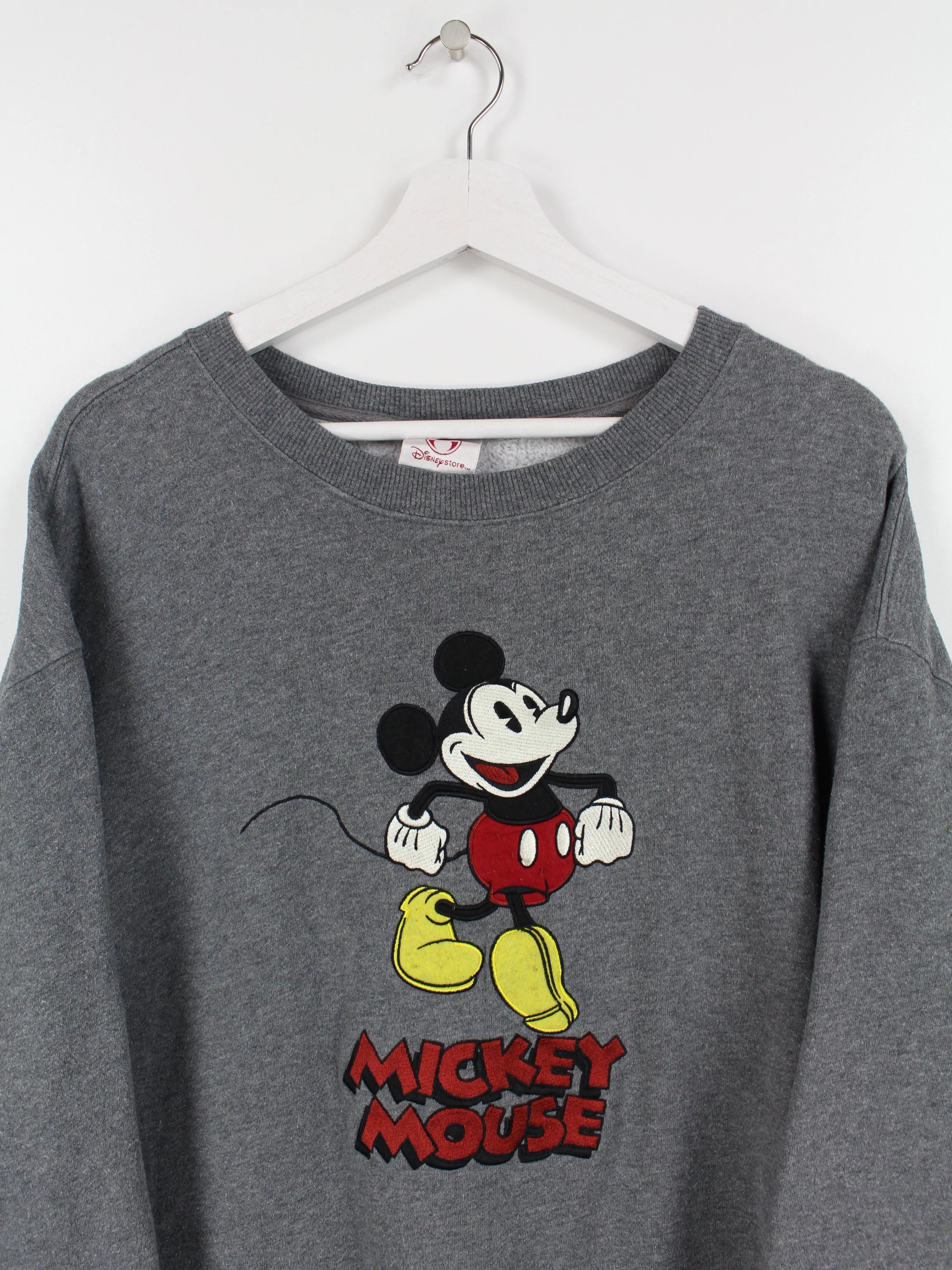 Grauer Disney Sweater mit gestickter Mickey Mouse auf der Front.