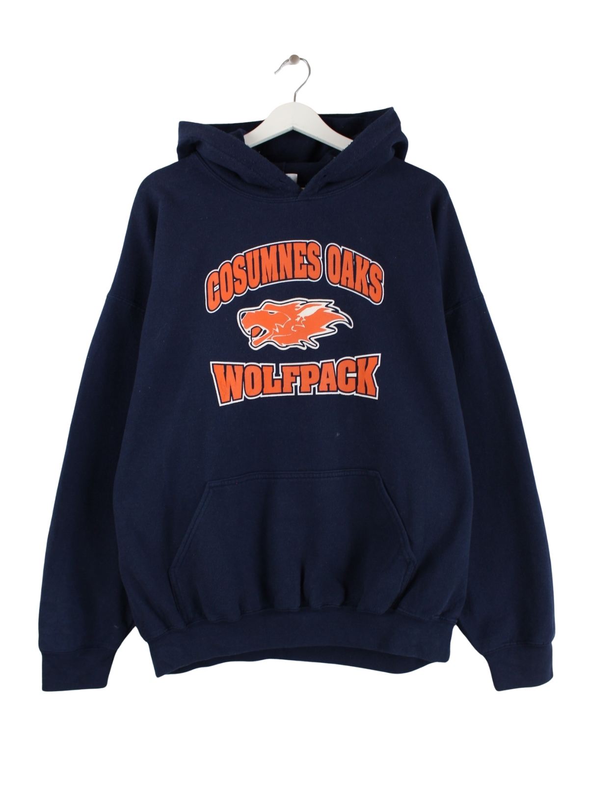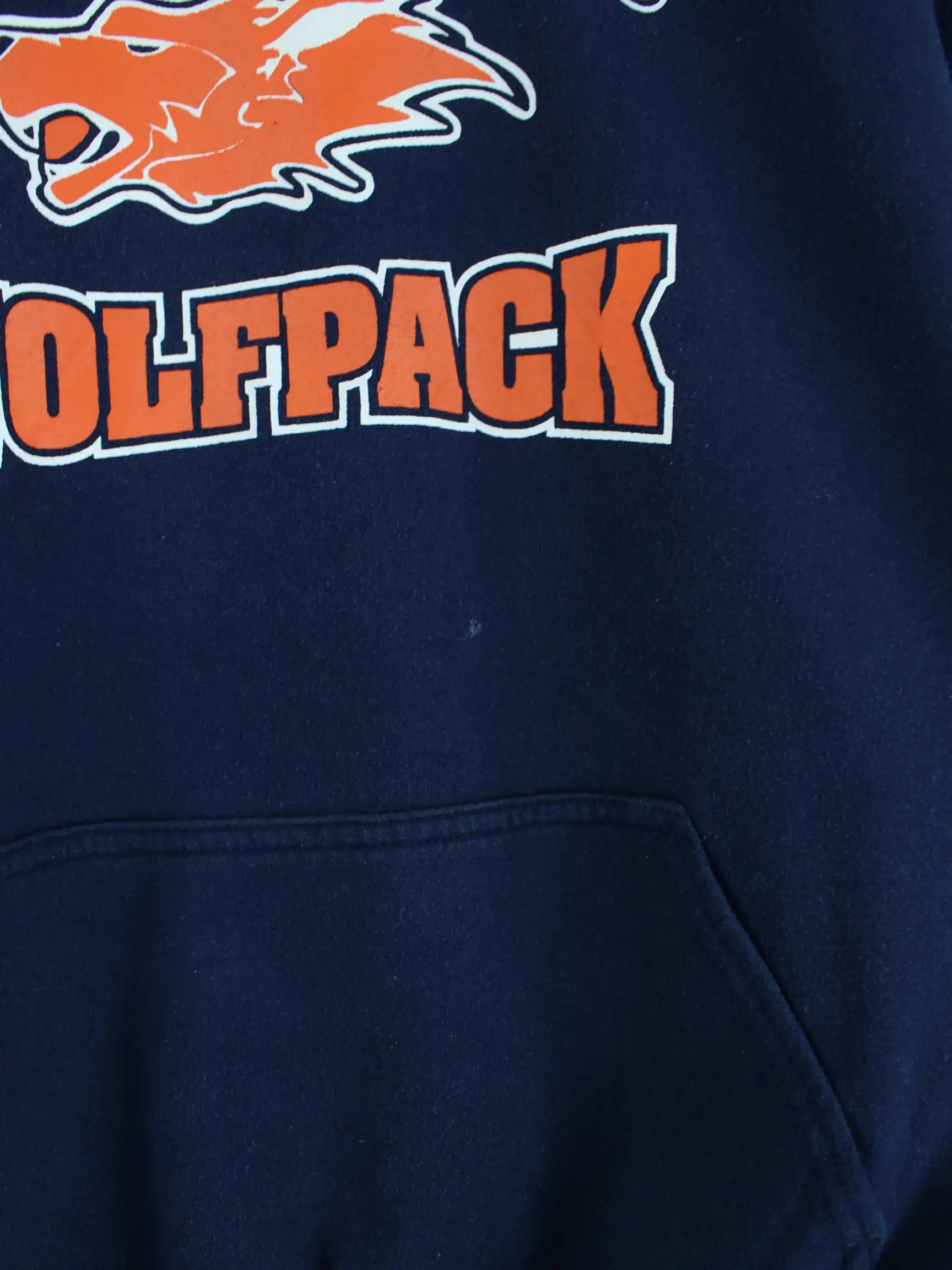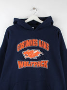 Blauer Hoodie vom Brand Gildan in Größe XL. Er ist aus einer Baumwollmischung gefertigt. Den Zustand würden wir als 'In Ordnung' bezeichnen (vergl. Bilder).Mit schickem Wolfpack Print.