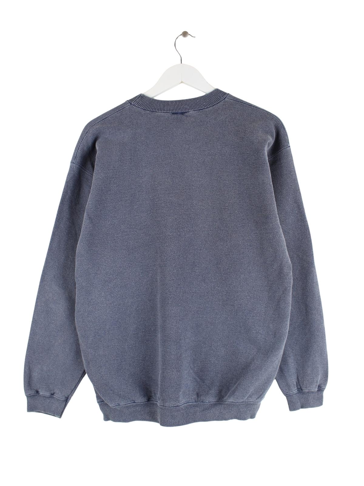 Grauer Sweater aus dem Hause Gildan aus den 90'ern in Größe L. Er ist aus einer Baumwollmischung gemacht und in gutem Zustand vorrätig.