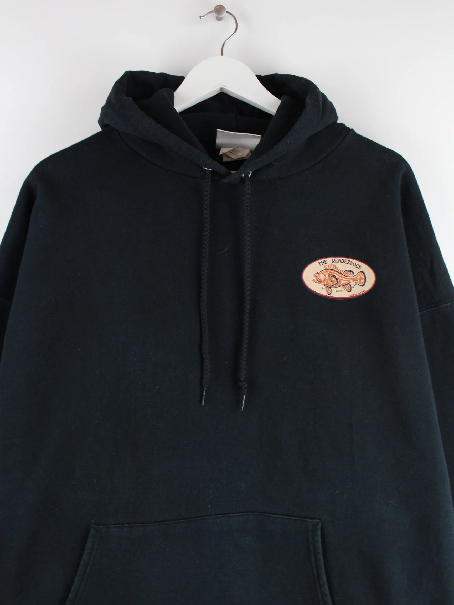 Hanes 90s Vintage Fish Print Hoodie Schwarz XL