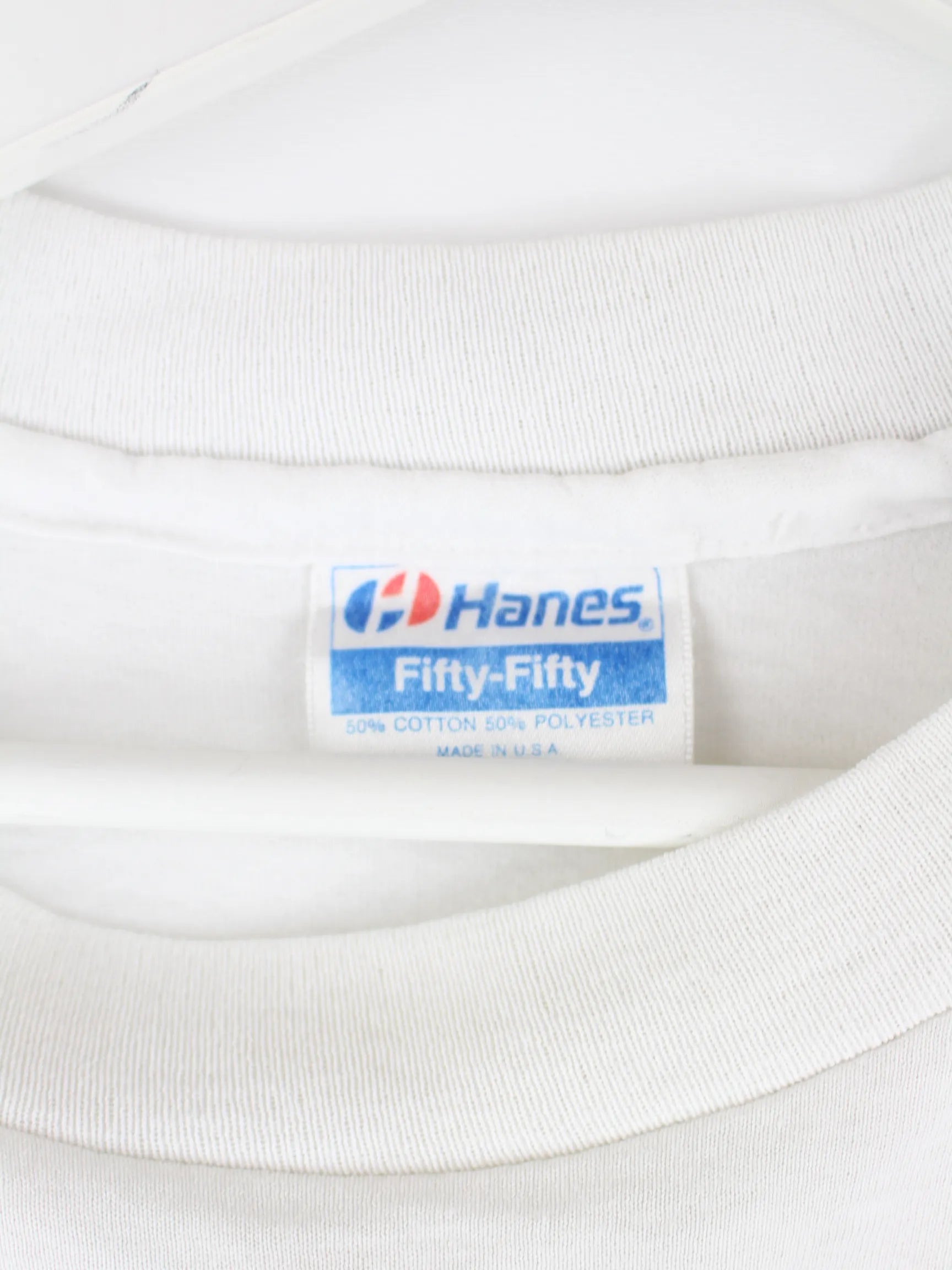 T-Shirt von Hanes in Größe XXL aus den 90'ern. Es ist aus Baumwolle produziert und in Weiß im Bestand.