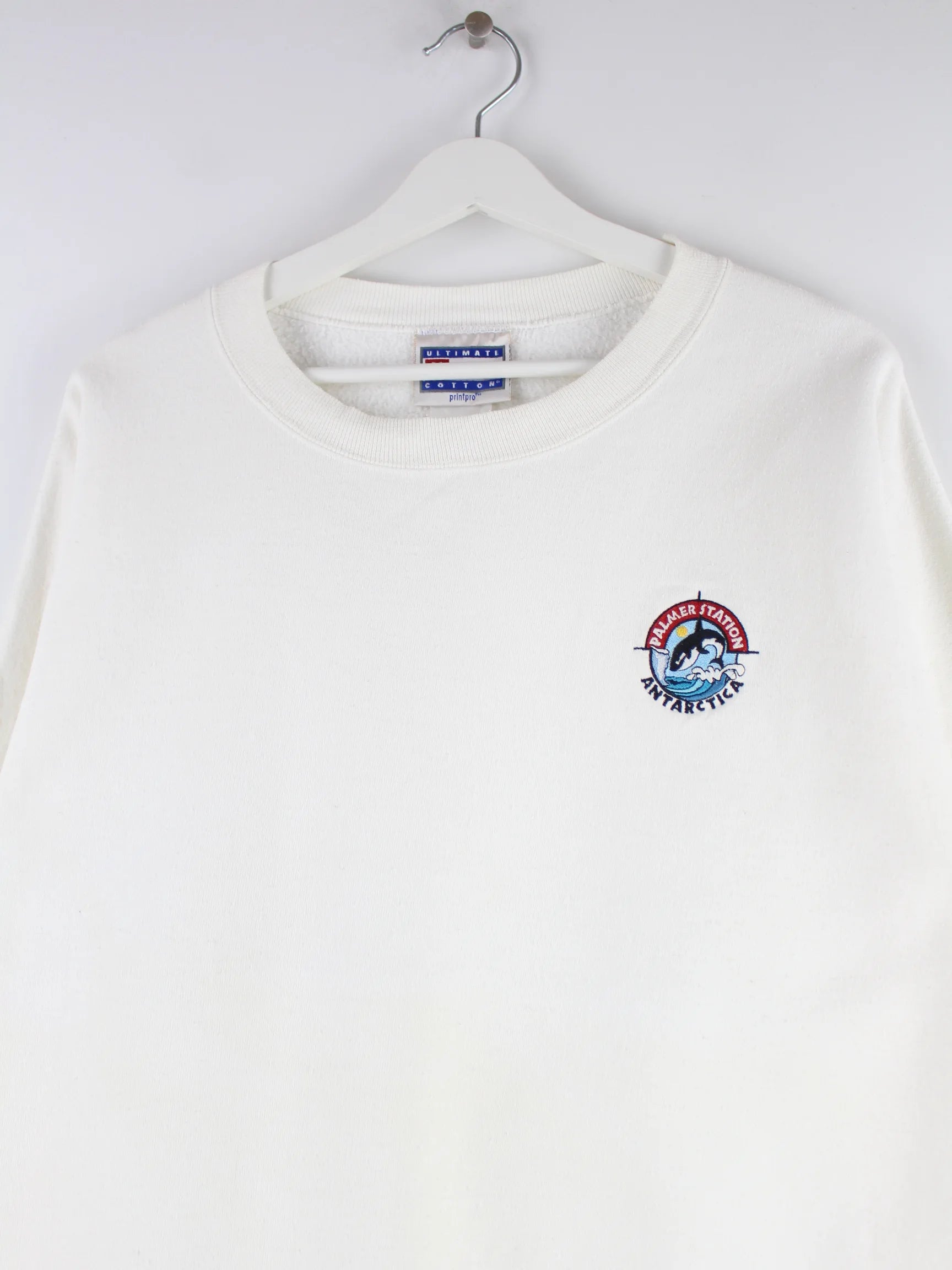 Hanes Damen 90s Vintage Palmer Station Antarctica Sweater Weiß XXL