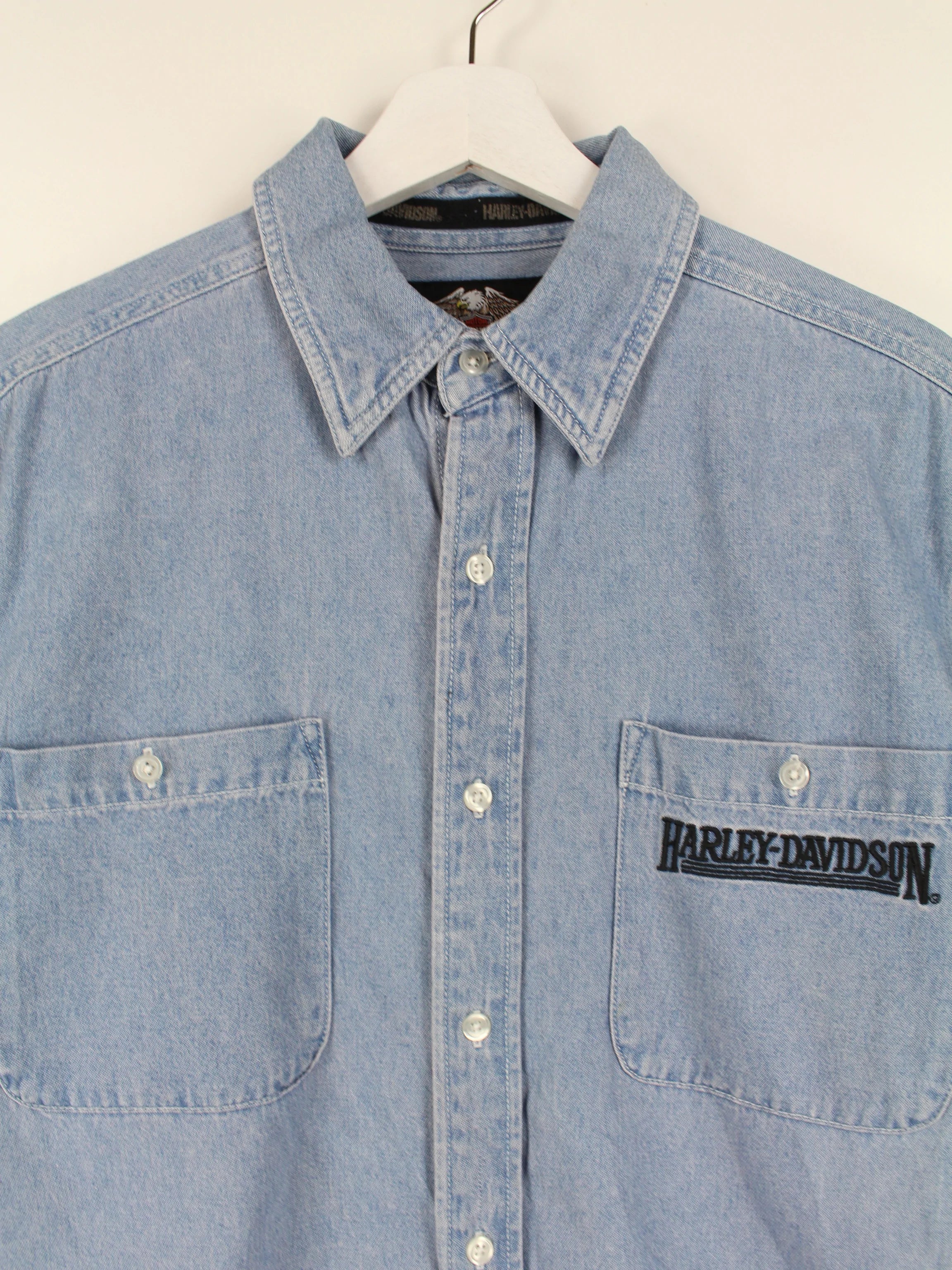 Harley Davidson Kurzarm Jeanshemd Blau S