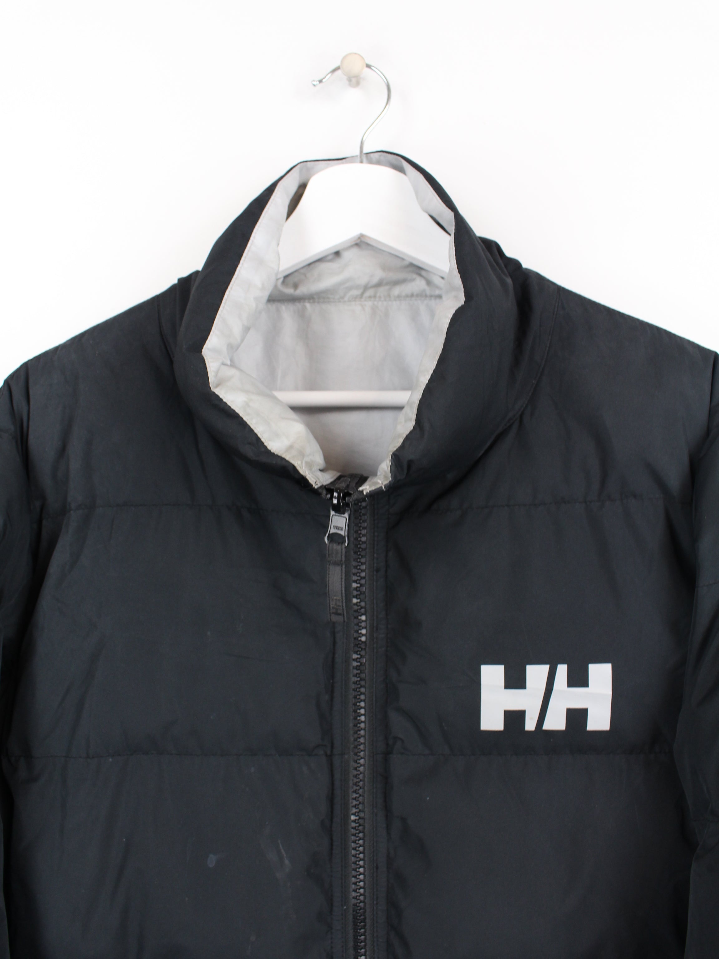 Schwarz graue Helly Hansen Wende-Jacke mit Daunenfüllung.