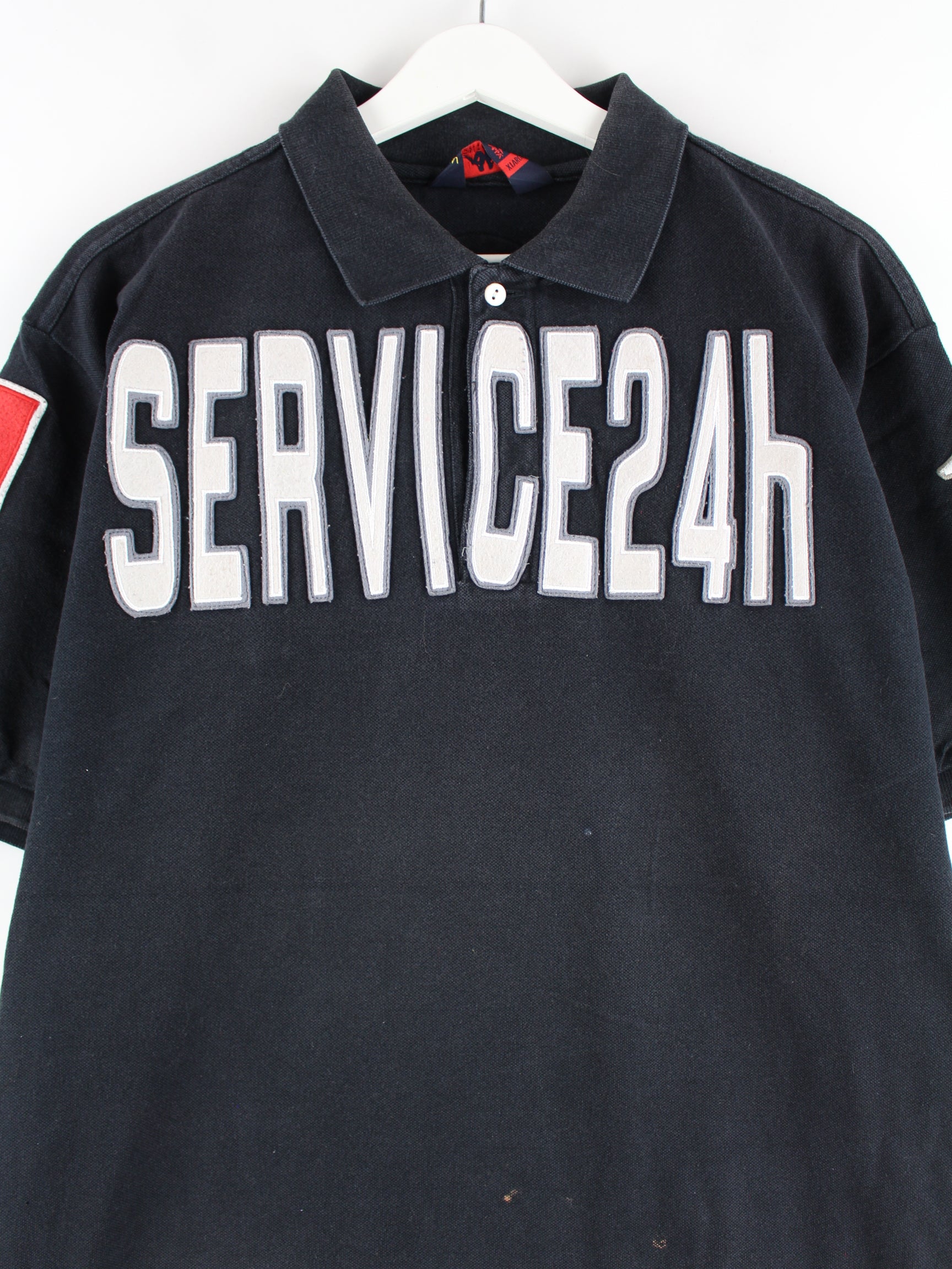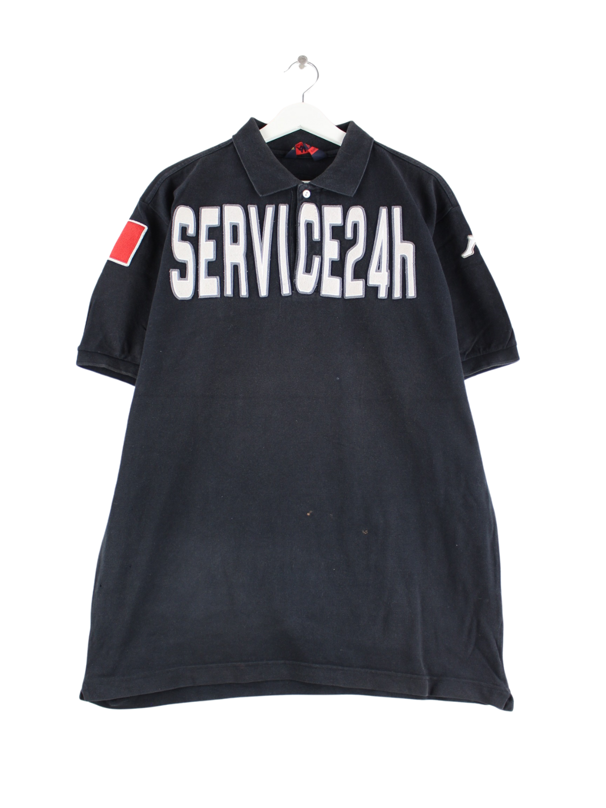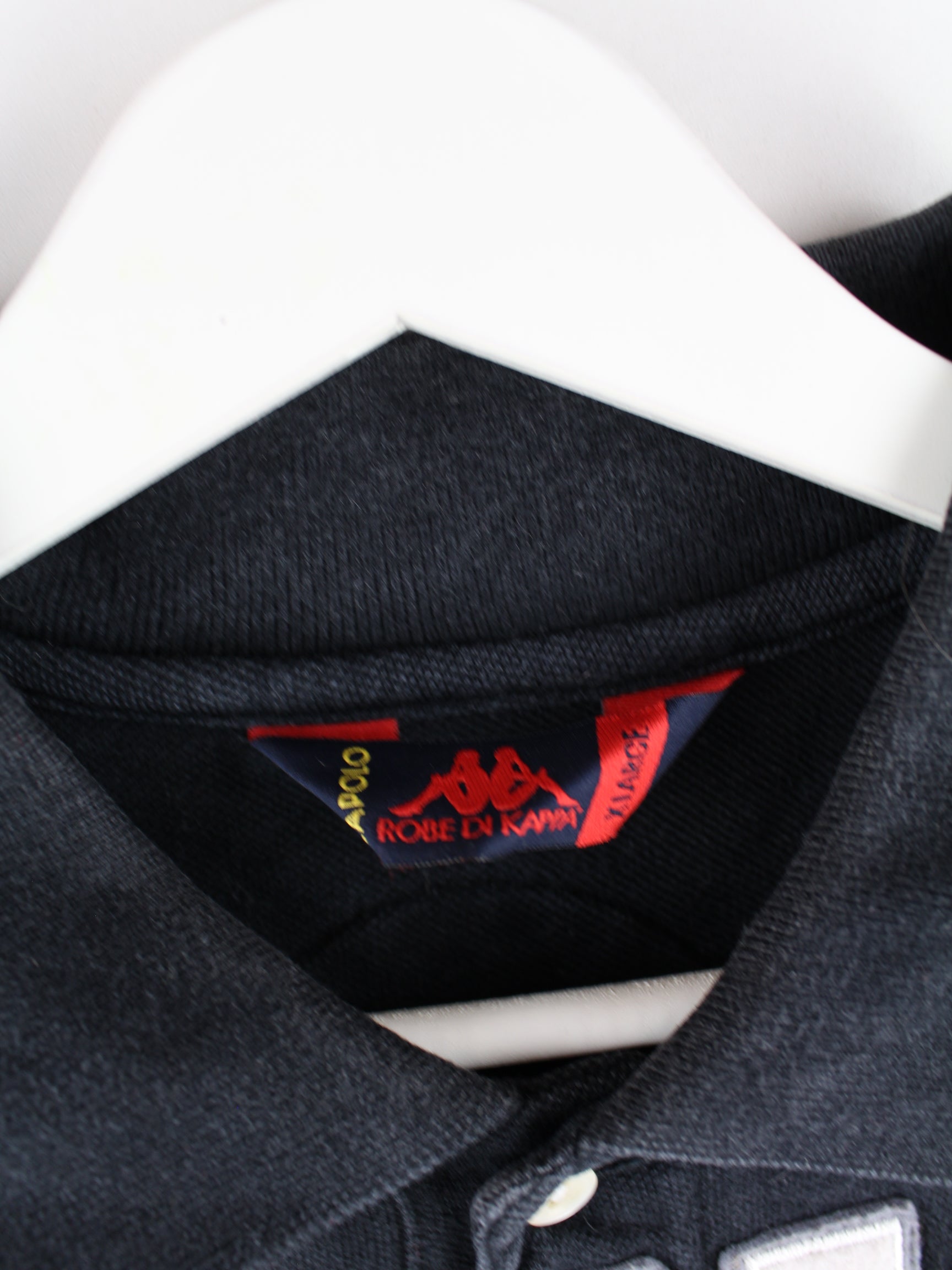 Poloshirt aus dem Hause Kappa mit Stickereien in Größe XL aus den 90'ern. Es ist aus Baumwolle und in Schwarz im Bestand.