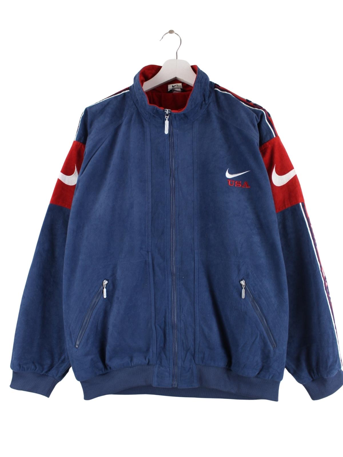Trainingsjacke von Nike in Größe M aus den 90'ern. Sie ist aus Synthetik gefertigt und in Blau auf Lager.