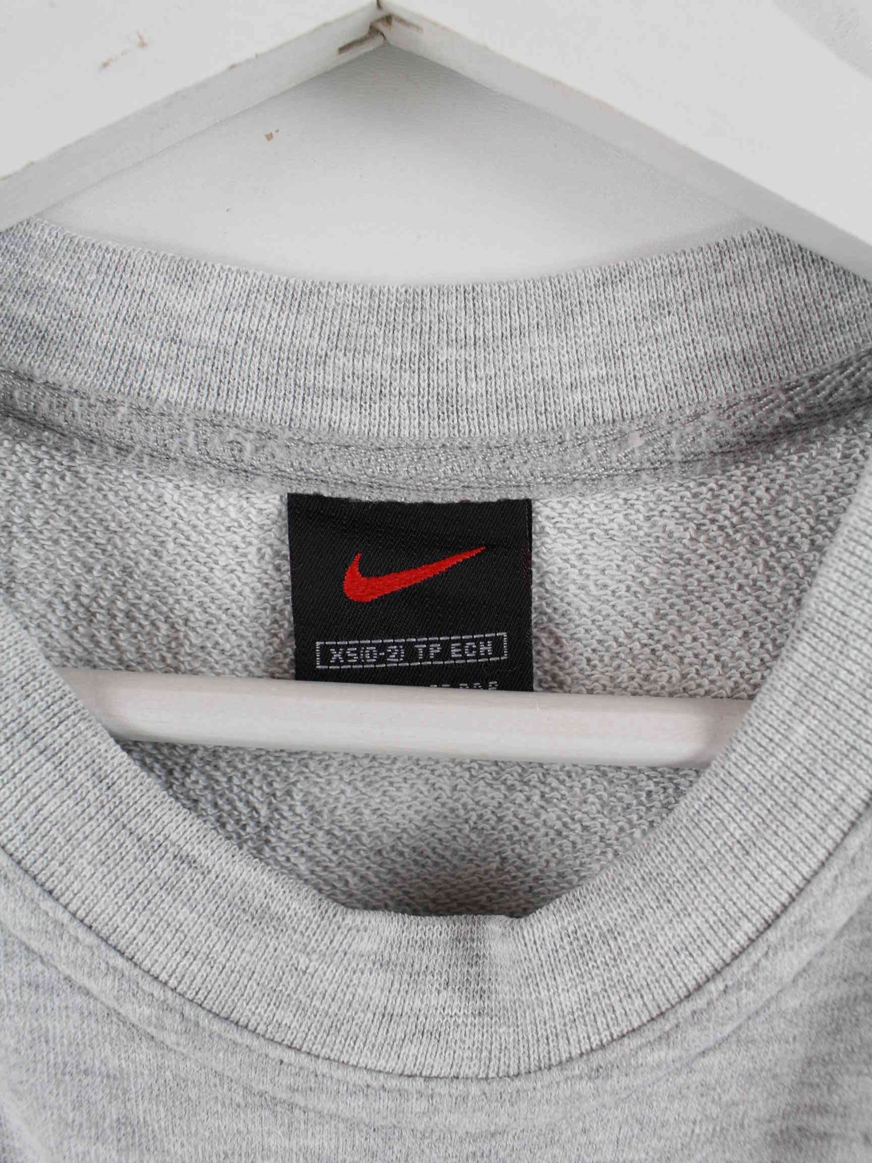 Grauer Sweater vom Label Nike aus den 90'ern in Größe XS. Er ist aus einer Baumwollmischung angefertigt und in sehr gutem Zustand bei uns vorrätig.
