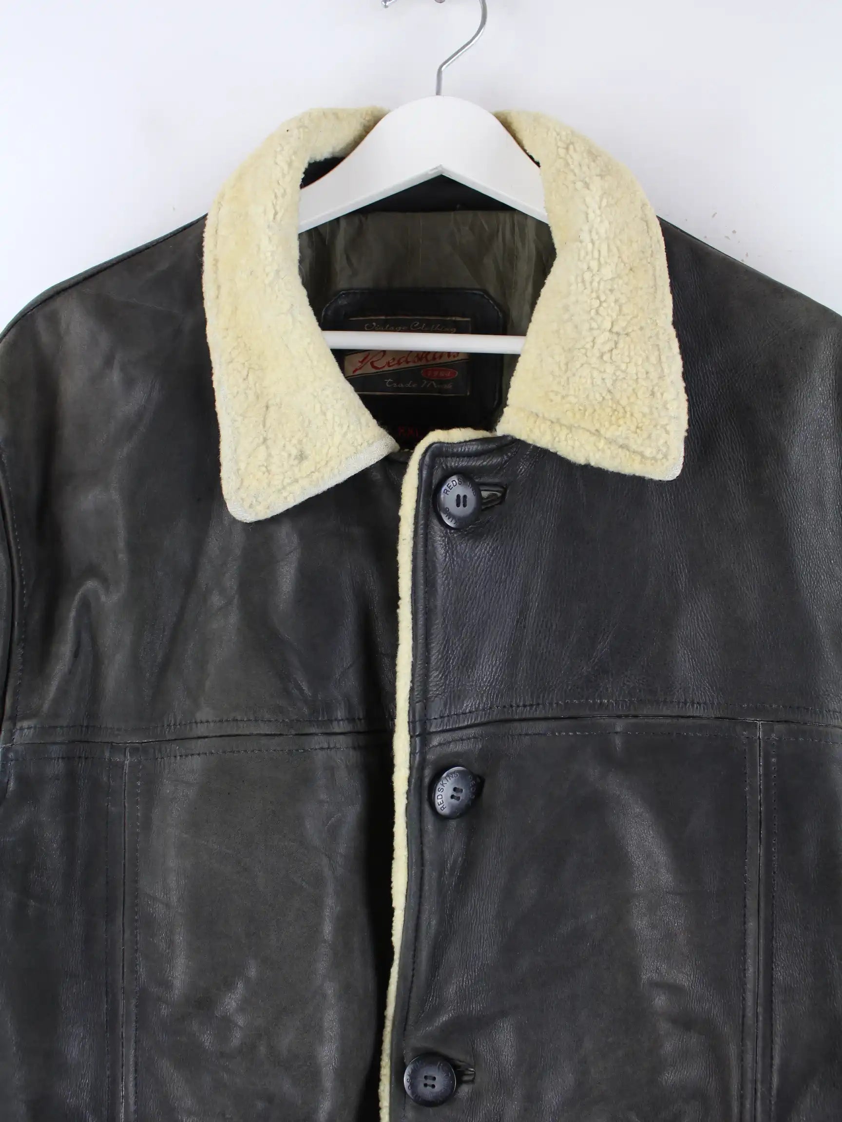 Braune Jacke vom Brand Redskins aus den 90'ern in Größe XXL. Sie ist aus Leder gefertigt. Den Zustand würden wir als 'In Ordnung' bezeichnen (vergl. Bilder).