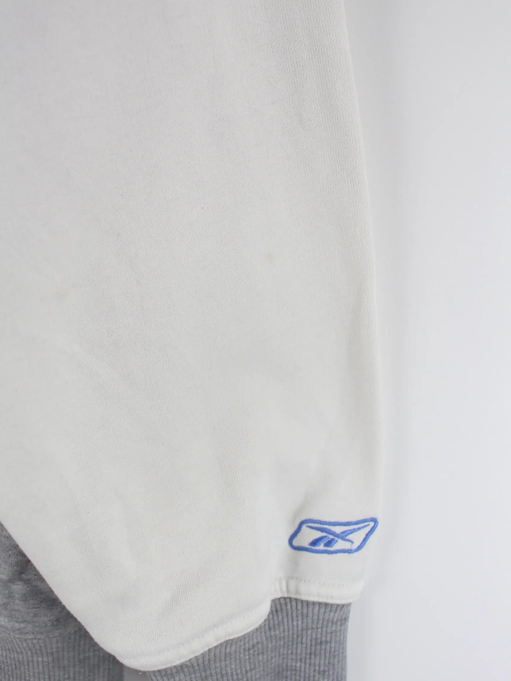 Grauer Hoodie mit durchgehendem Reißverschluß vom Label Reebok in Größe M. Er ist aus einer Baumwollmischung gemacht. Den Zustand würden wir als 'In Ordnung' bezeichnen (vergl. Bilder).